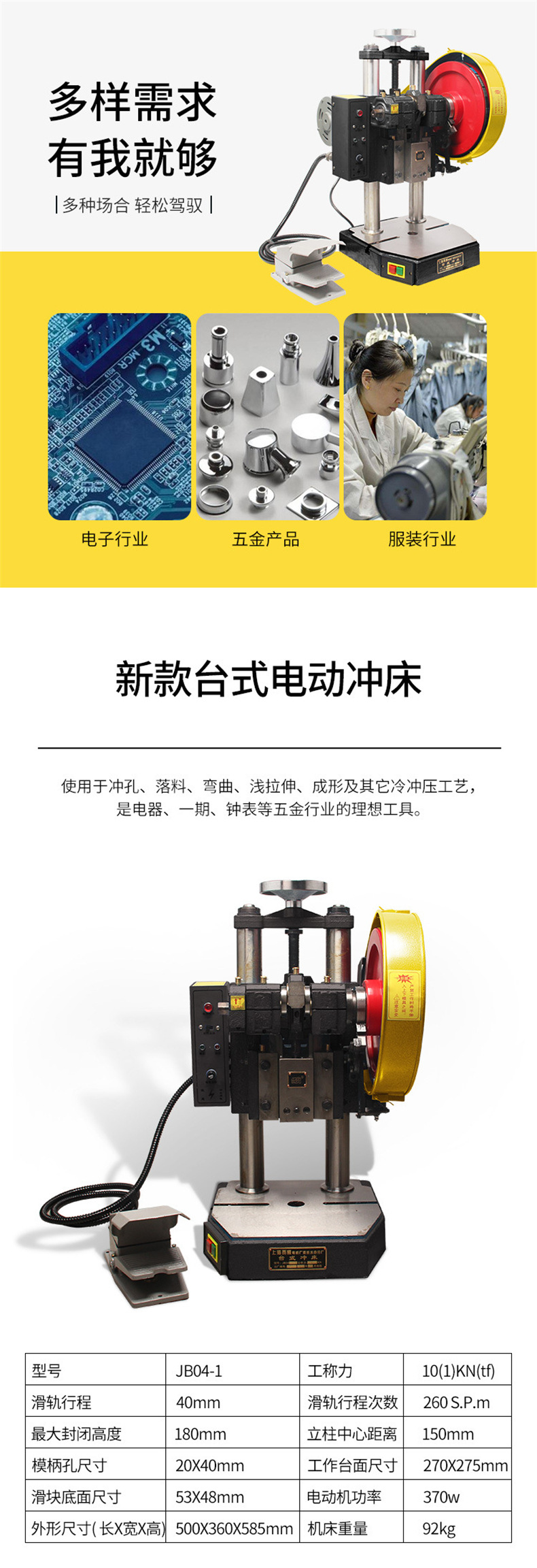 Prensa pequeña 0,5/1/2/3 T punzón doble columna Punzón eléctrico de escritorio americano-japonés JB04