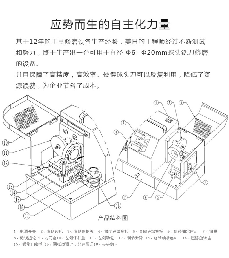 Máquina rectificadora de fresado de extremo de bola estadounidense-japonesa Máquina rectificadora de corte de fresado de tipo R Máquina afiladora de fresado automático