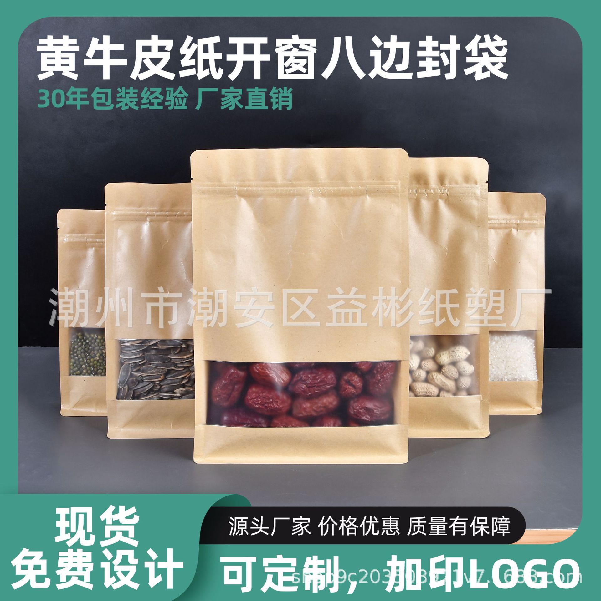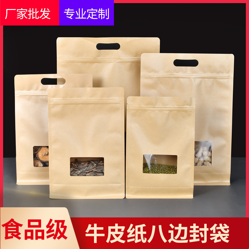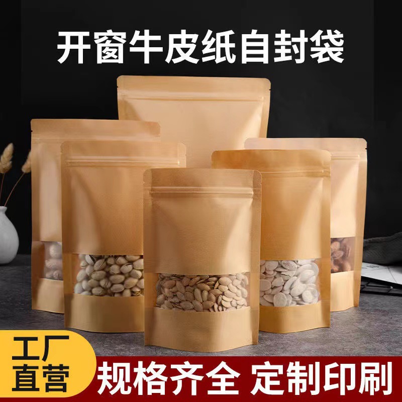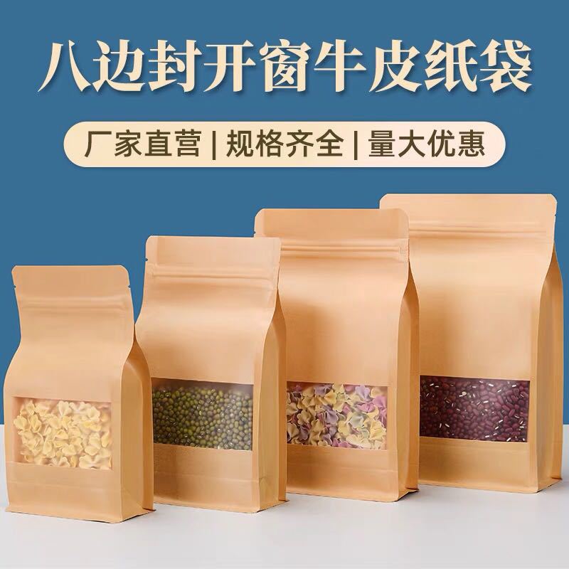 牛皮纸袋自立自封袋开窗加厚磨砂八边封茶叶食品牛皮纸袋子批发¥0.39立即购买