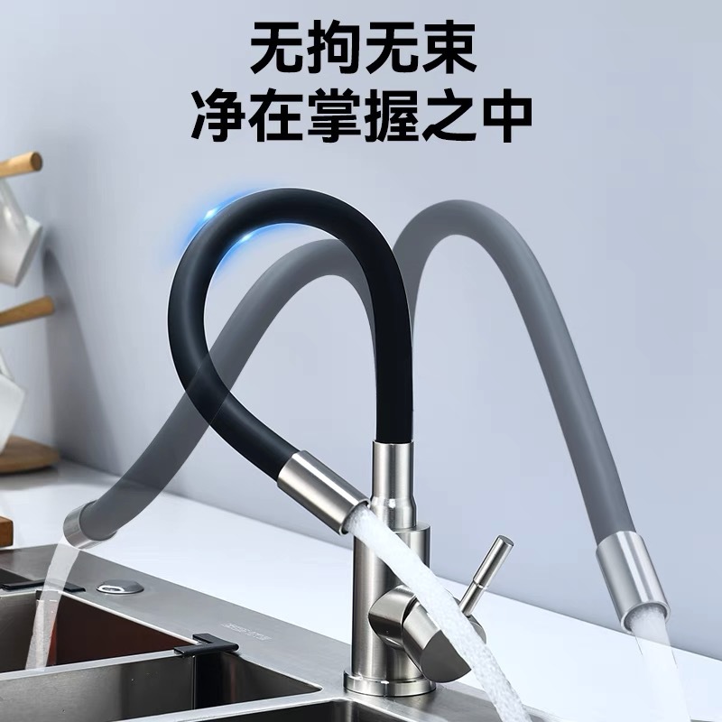 Dibujo de alambre de color universal tubería de hortales fría y caliente grifo de acero inoxidable color universal mezcla de agua de cocina grifo de comercio exterior