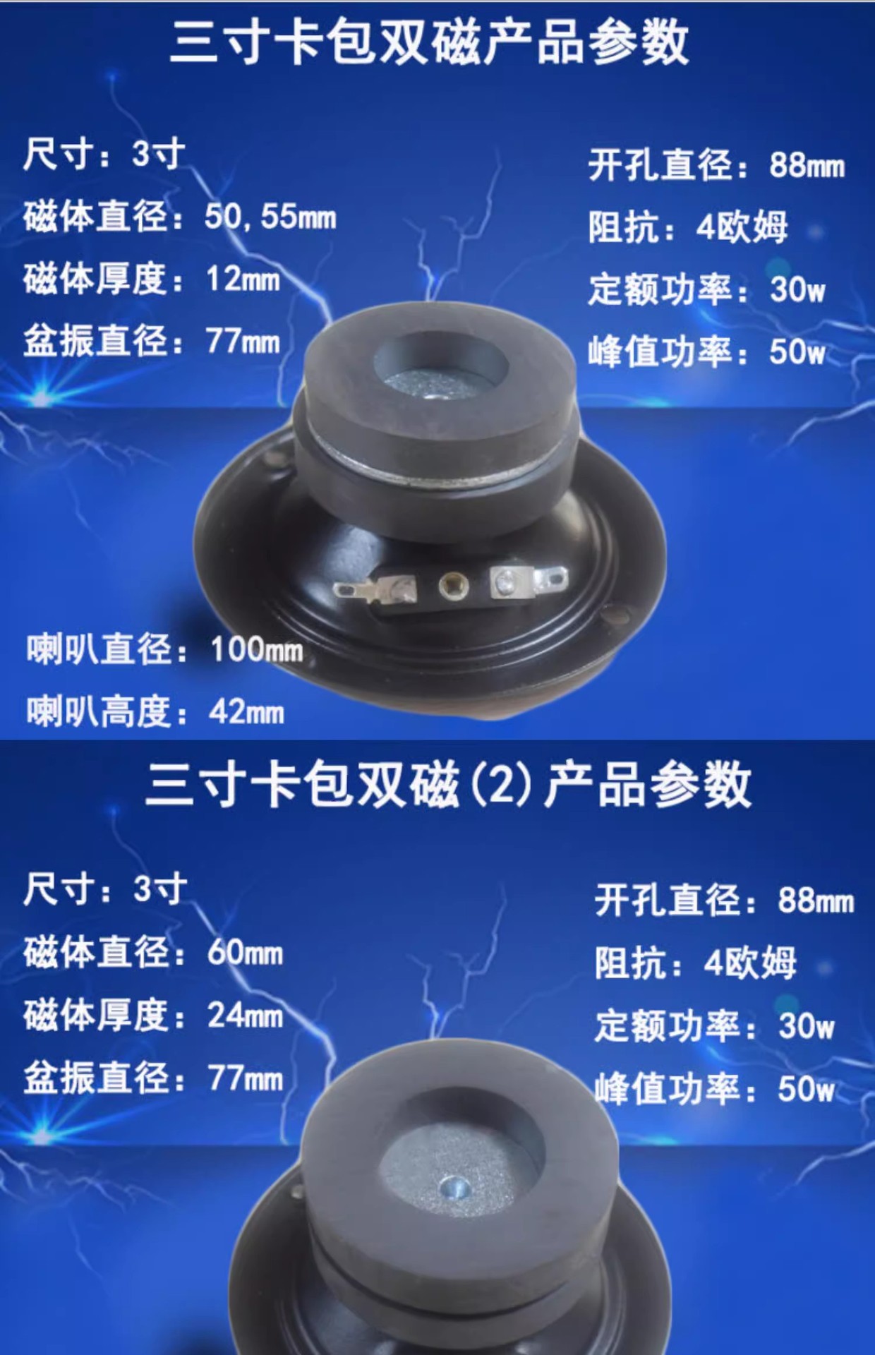 3 pulgadas, 2 pulgadas, 1,5 pulgadas, lavabo de papel magnético simple y doble, unidad de tweeter, 50W, 4 euros, 8 euros, 10 vatios, 5 vatios, unidad de altavoz