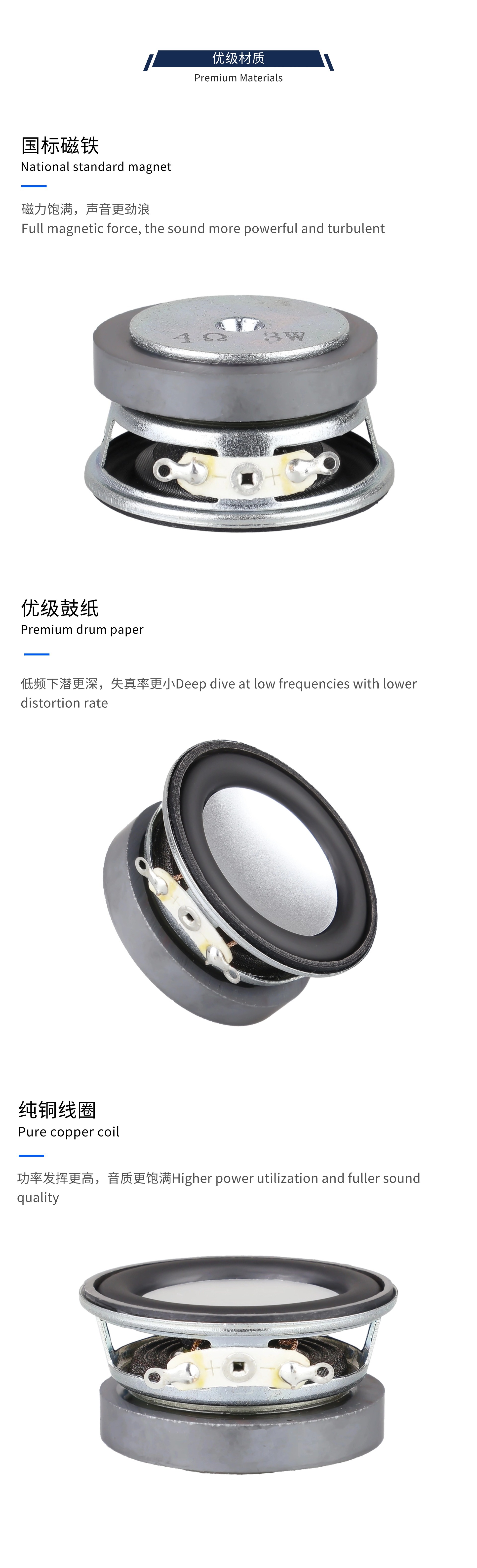 Altavoz de frecuencia completa de 40 mm1.5 pulgadas 4 ohmios 3 vatios lado de PU calidad de sonido multimedia de alta definición altavoz magnético externo