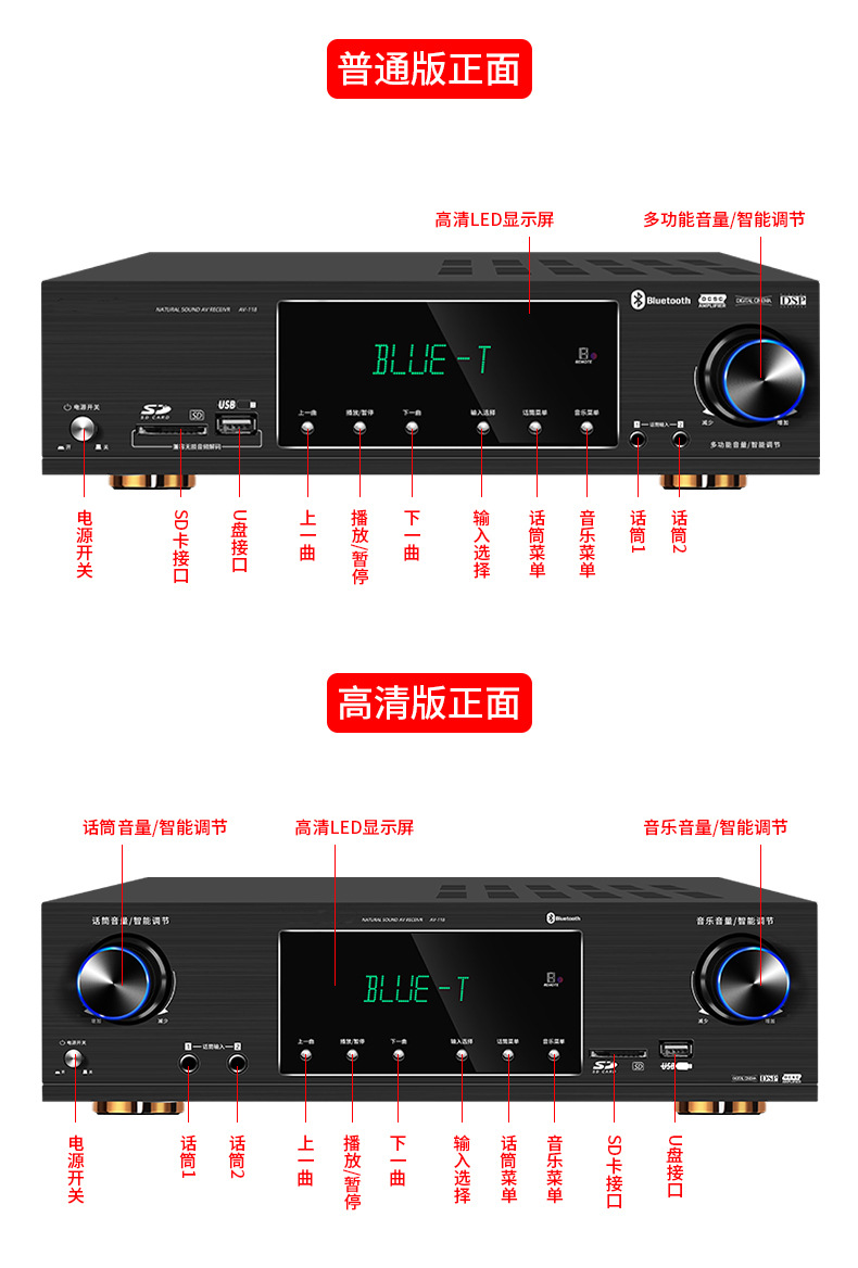 AV118 alta potencia 5,1 amplificador de potencia hogar HD profesional Bluetooth HIFI fiebre de audio de Cine En Casa