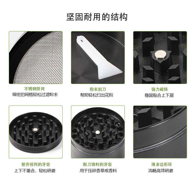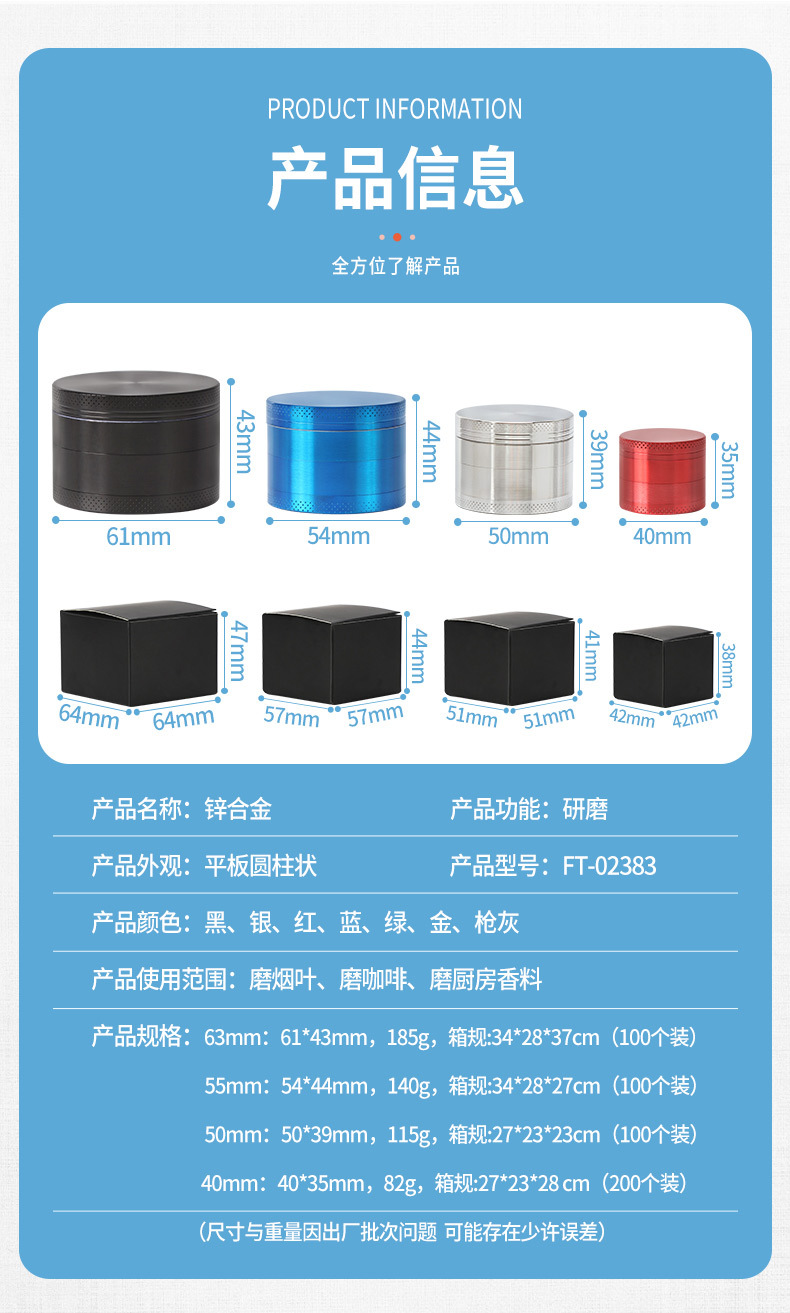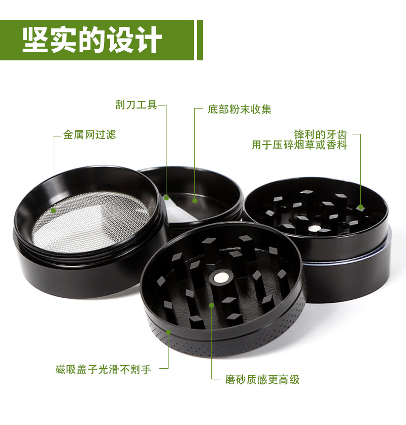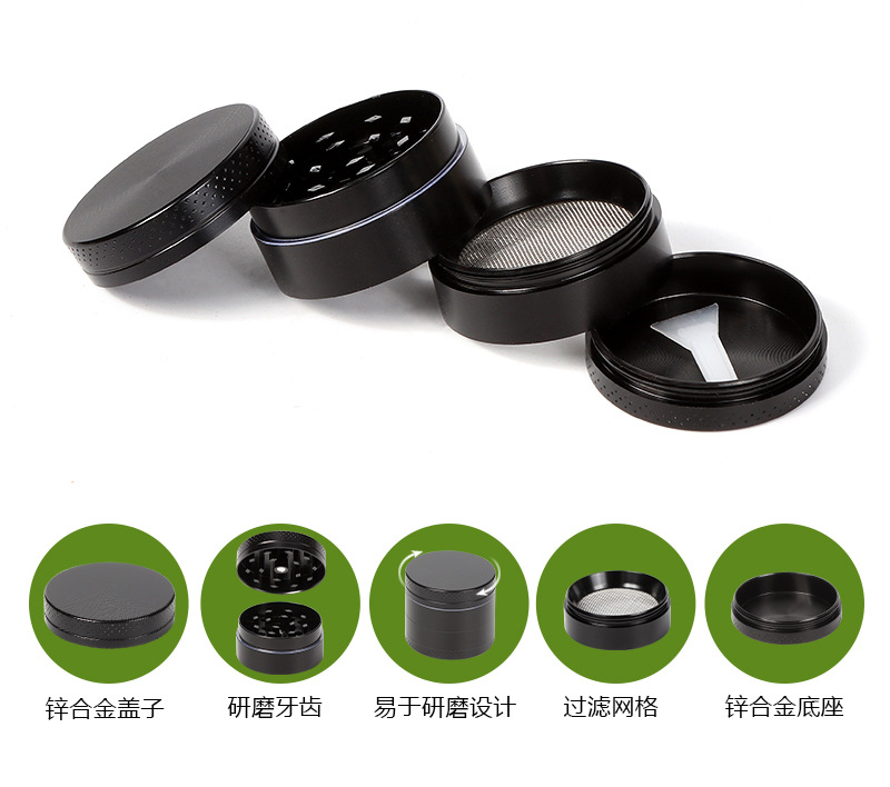 Venta directa de fábrica Molino de tabaco plano de cuatro capas de aleación de zinc transfronterizo Molino de tabaco personalizado