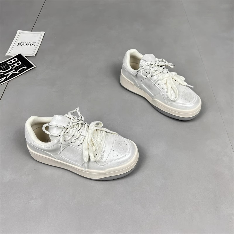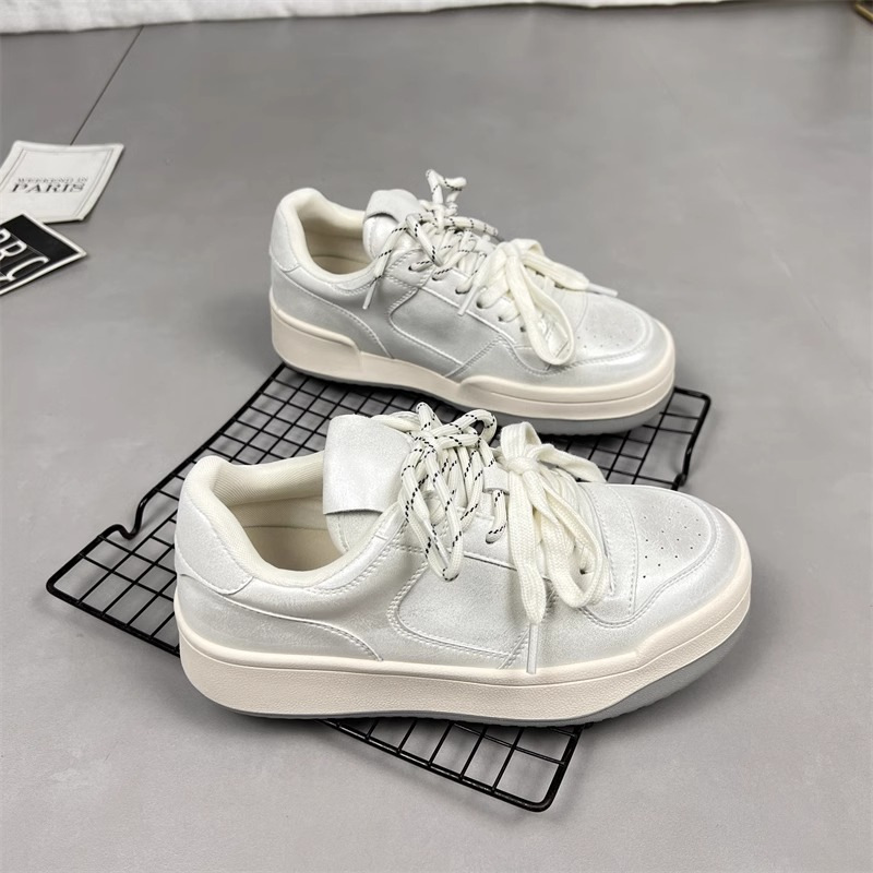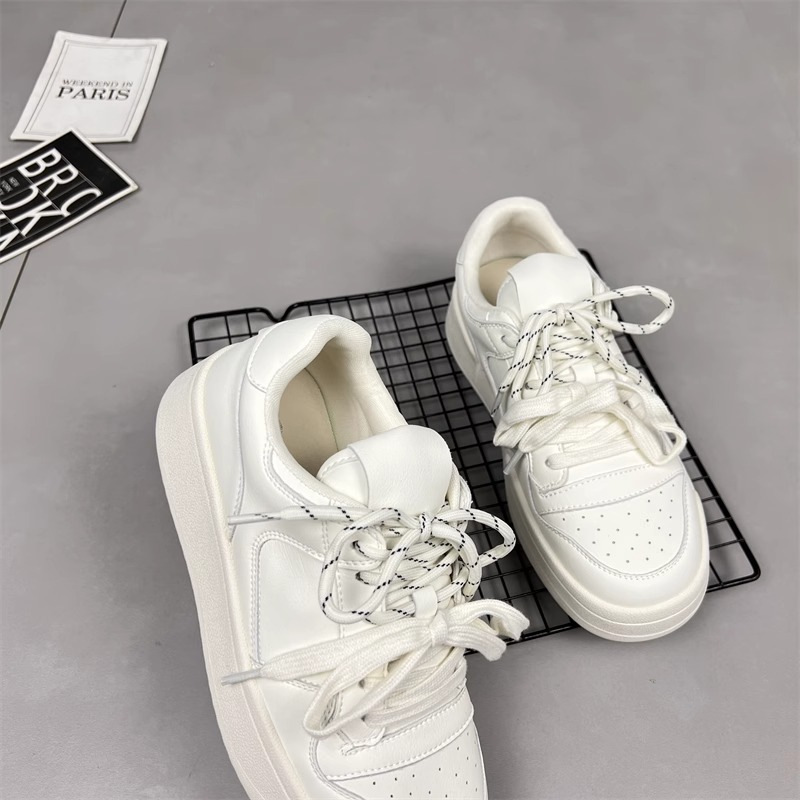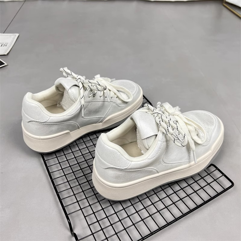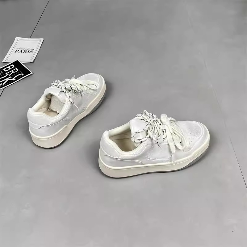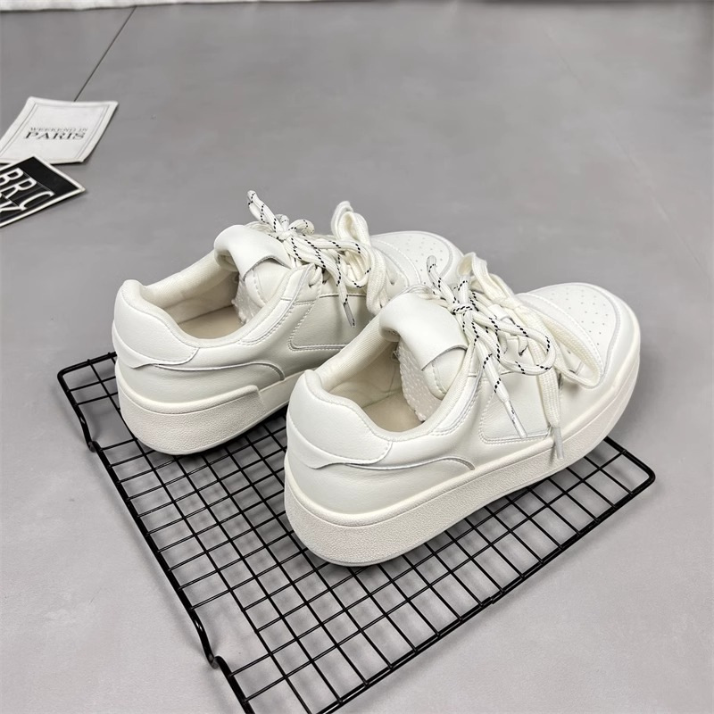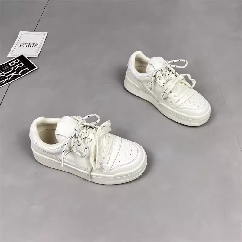 2025 primavera nueva correa de cabeza redonda ins retro suela gruesa zapatos blancos pequeños zapatos deportivos casuales de nicho de mujer