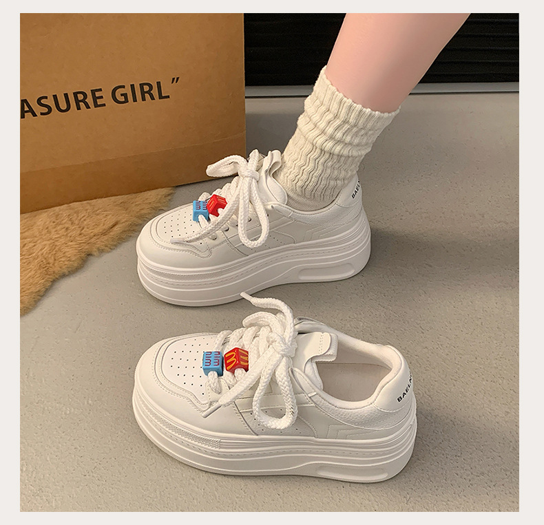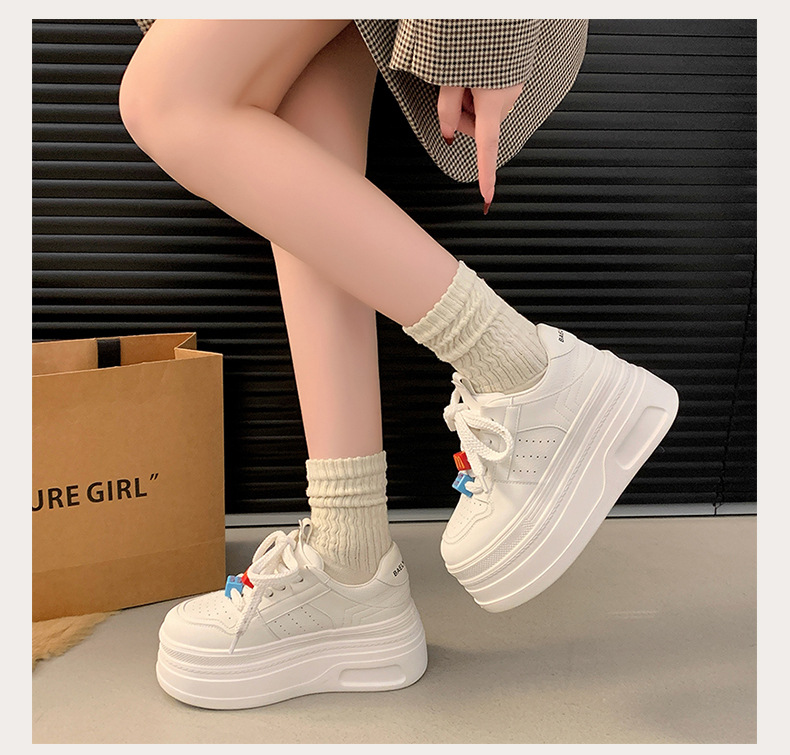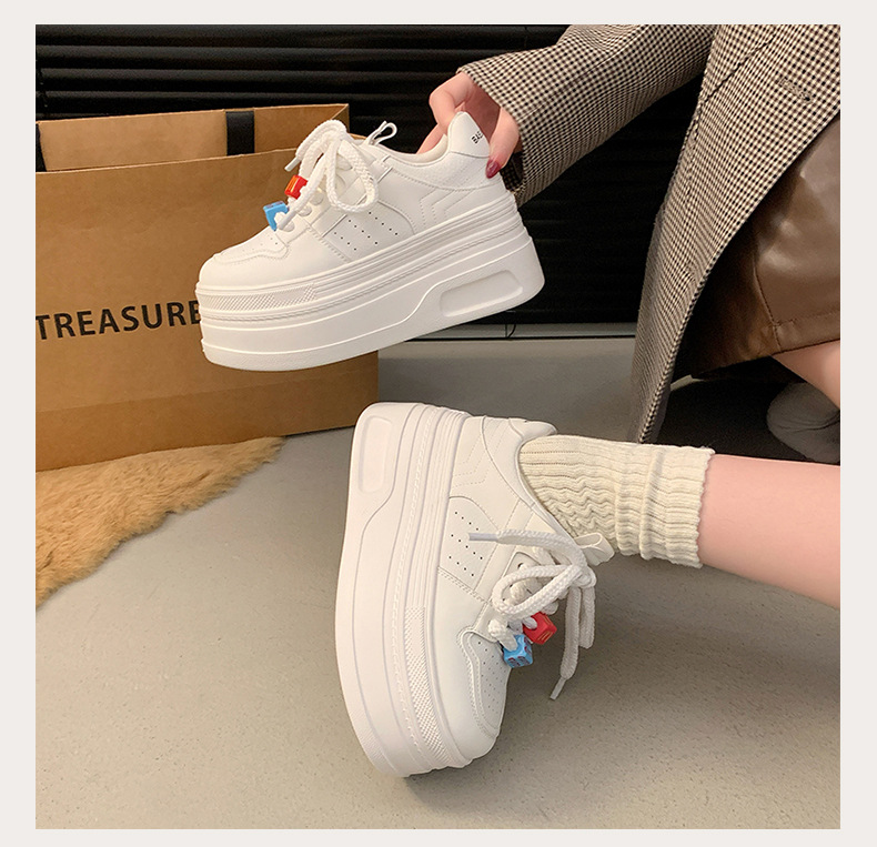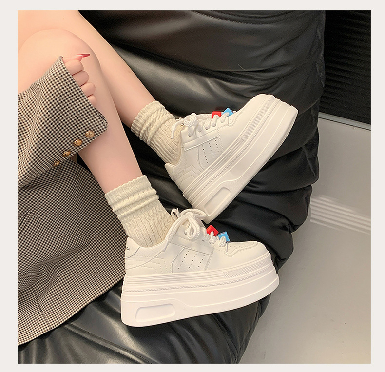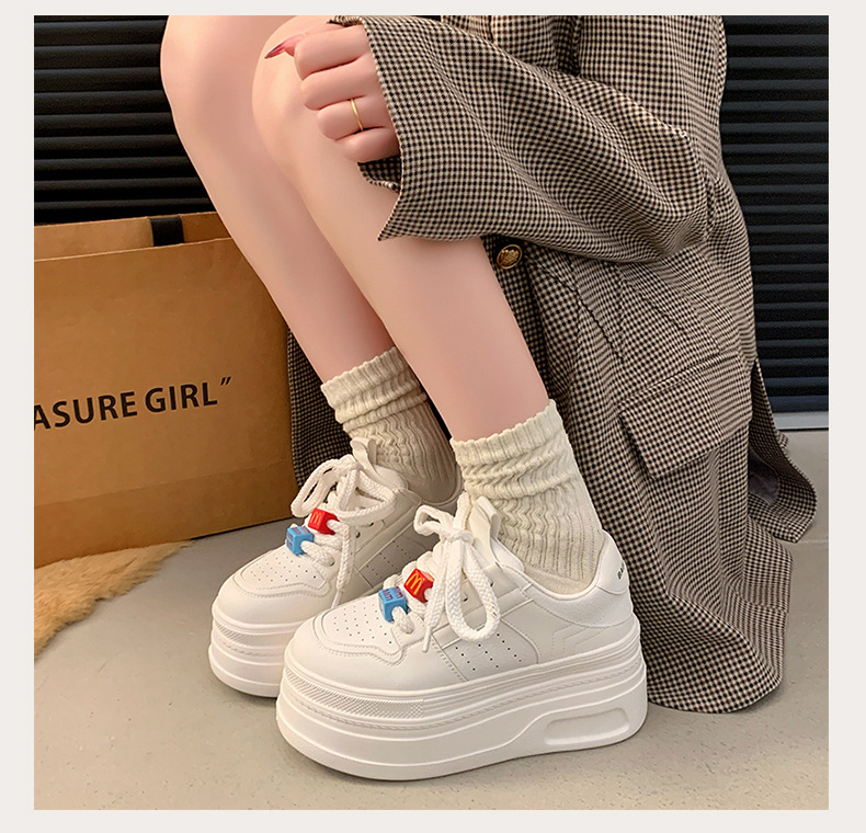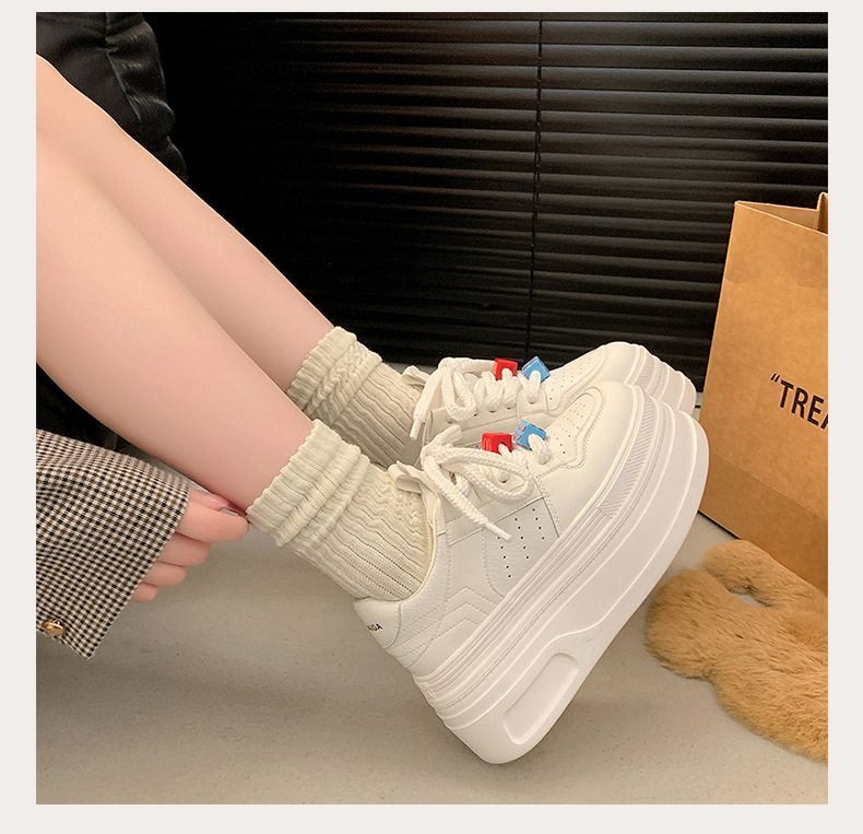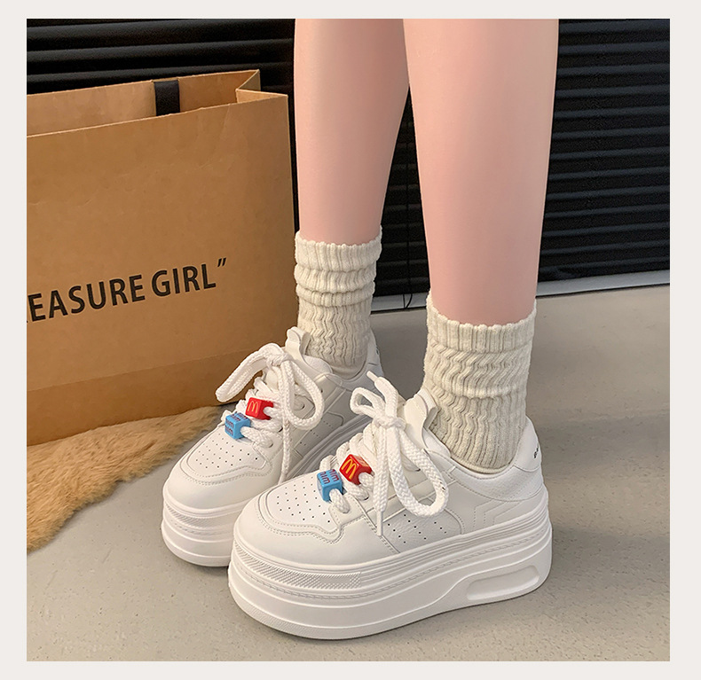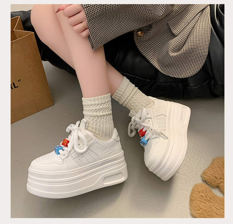 Zapatos de plataforma pequeños, zapatillas de deporte casuales de todo fósforo de nicho para mujer 2025 primavera y otoño nuevo estilo, zapatos blancos de suela gruesa