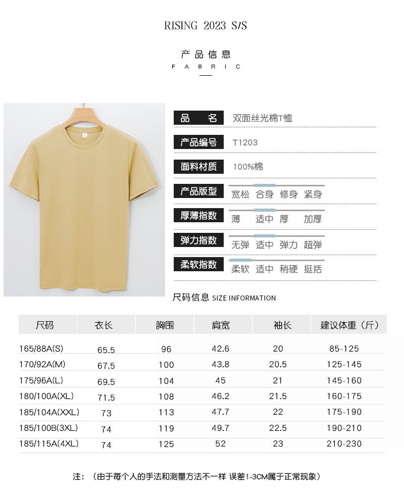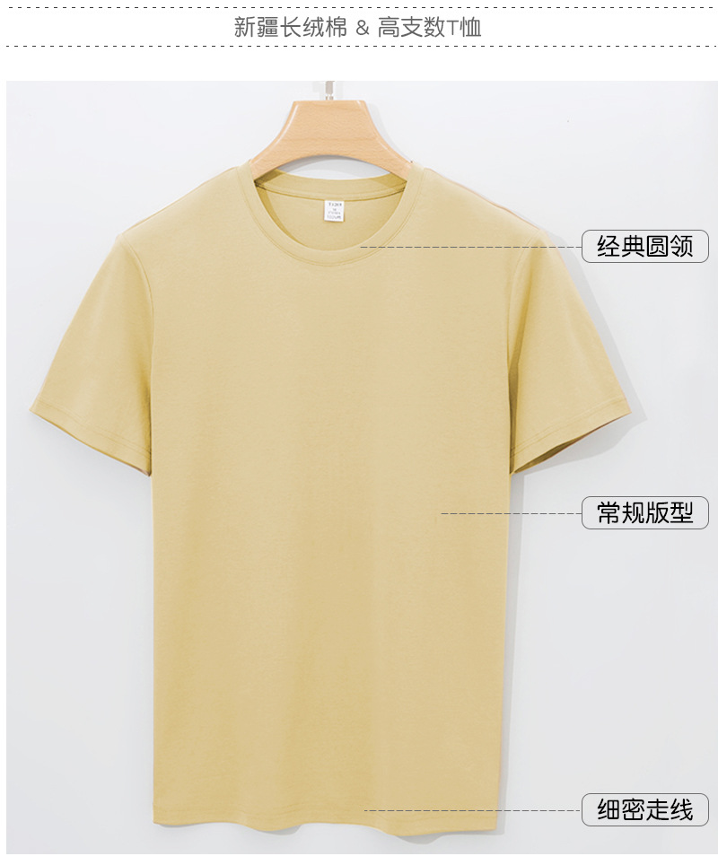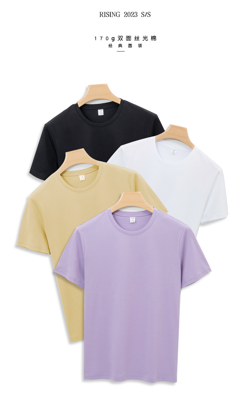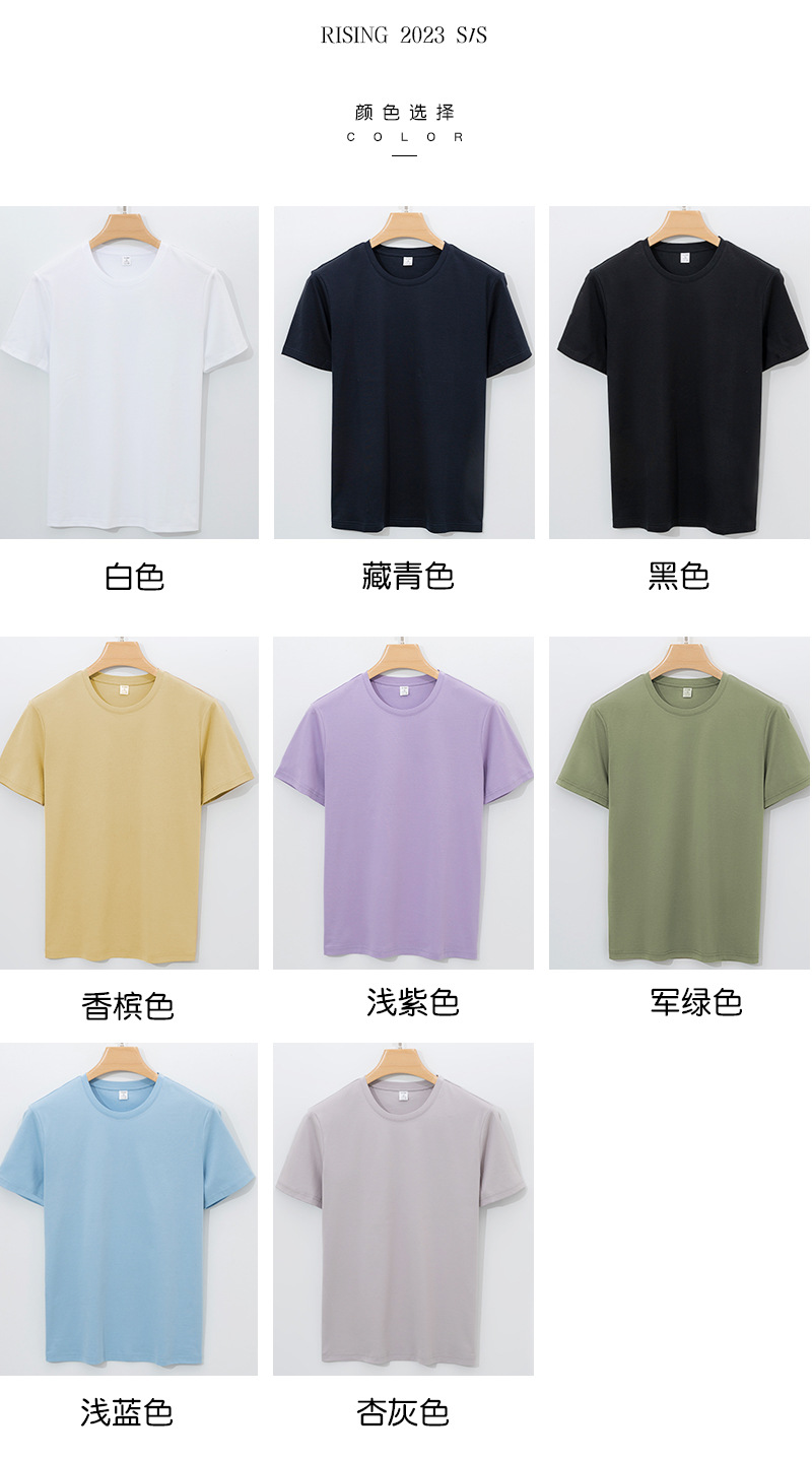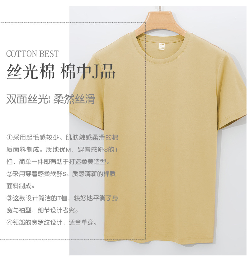 Camiseta de algodón mercerizado con amoníaco líquido de doble cara de 120 unidades de gama alta, camiseta de manga corta con cuello redondo de color puro de algodón de fibra larga para hombre