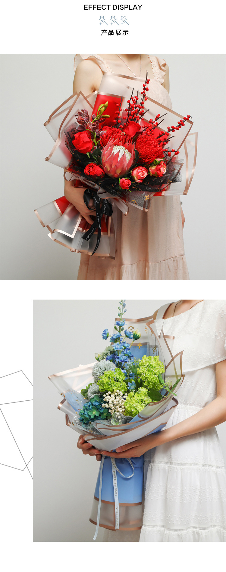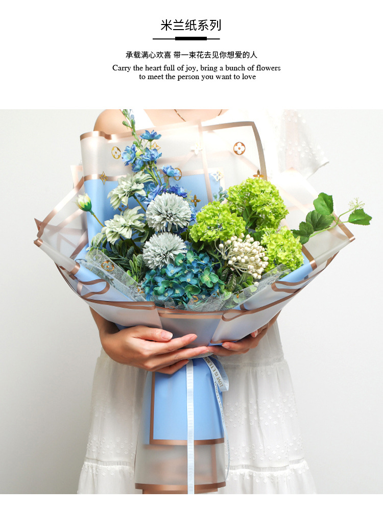 Papel de regalo semitransparente impermeable Tangde, serie Space Milan, con doble borde dorado, material de embalaje tipo película de gelatina.