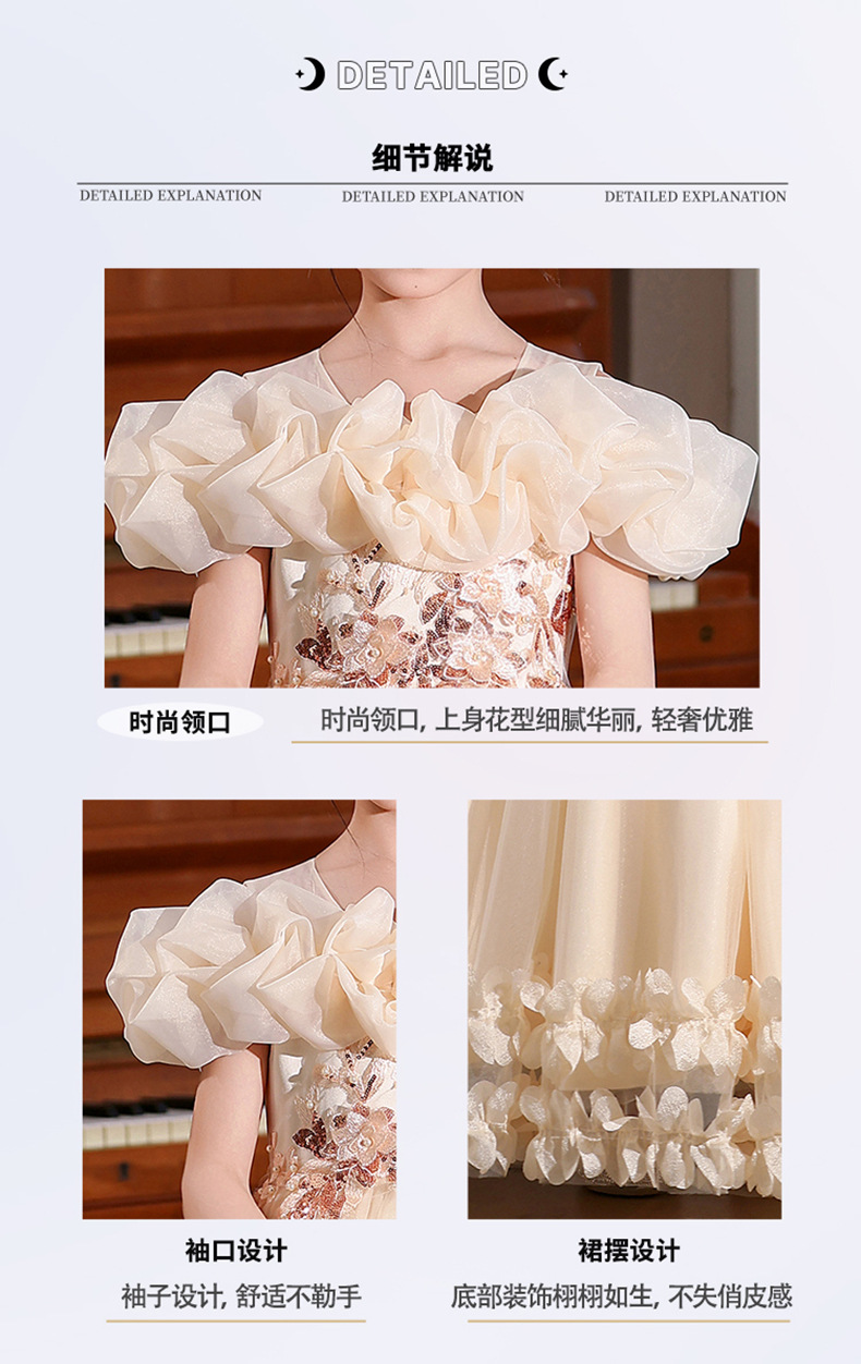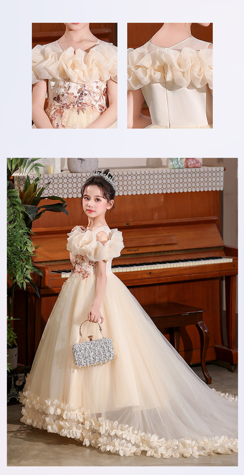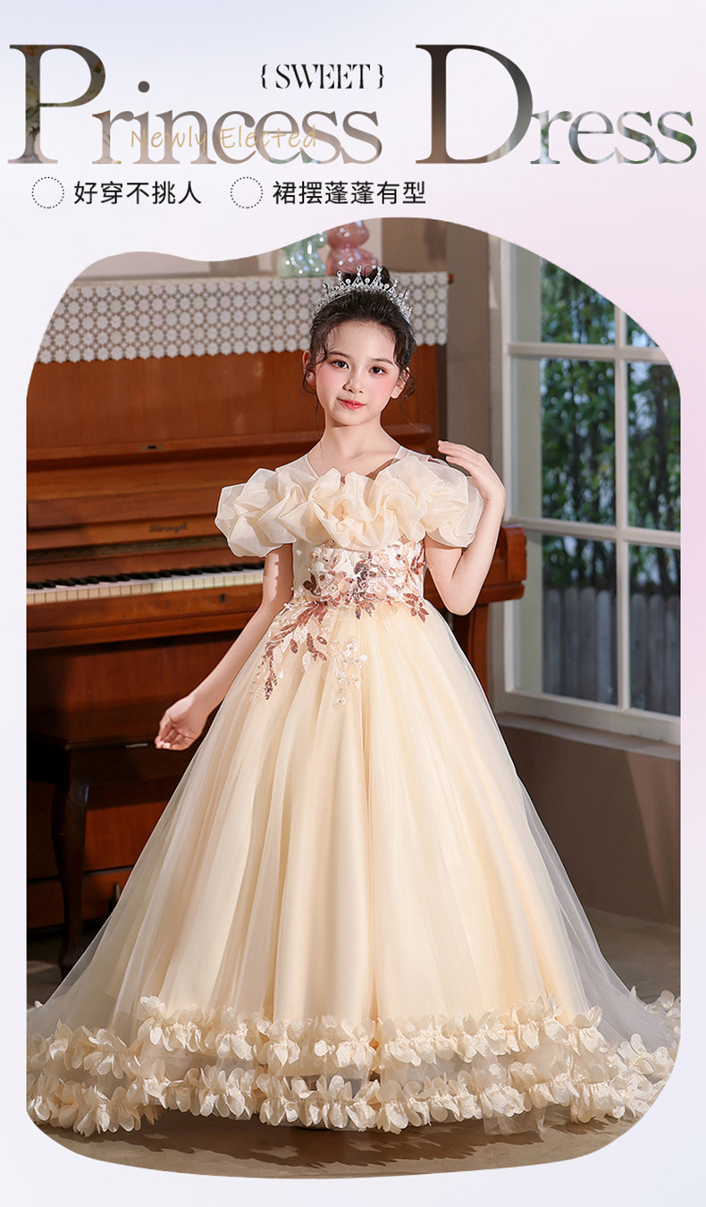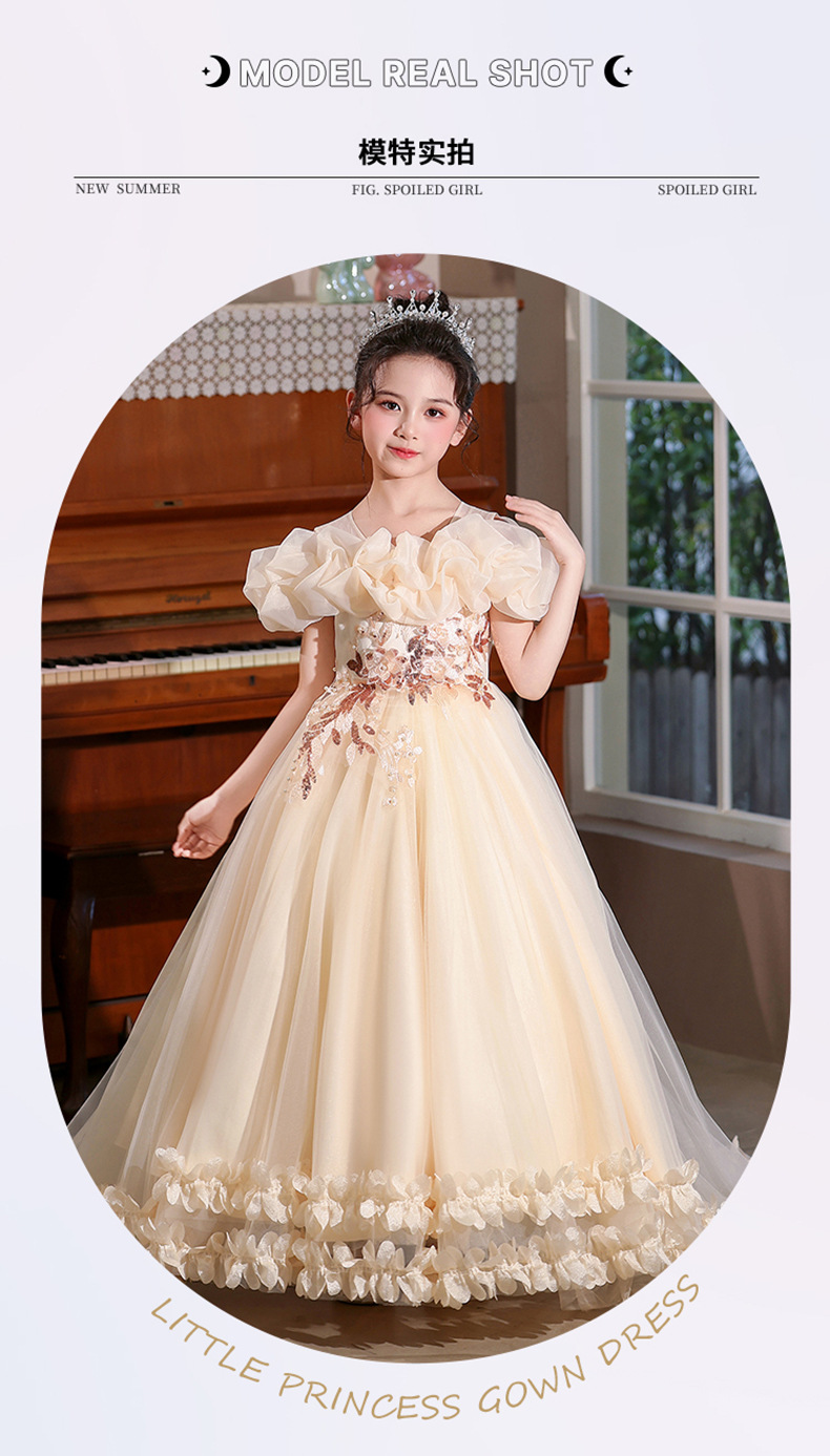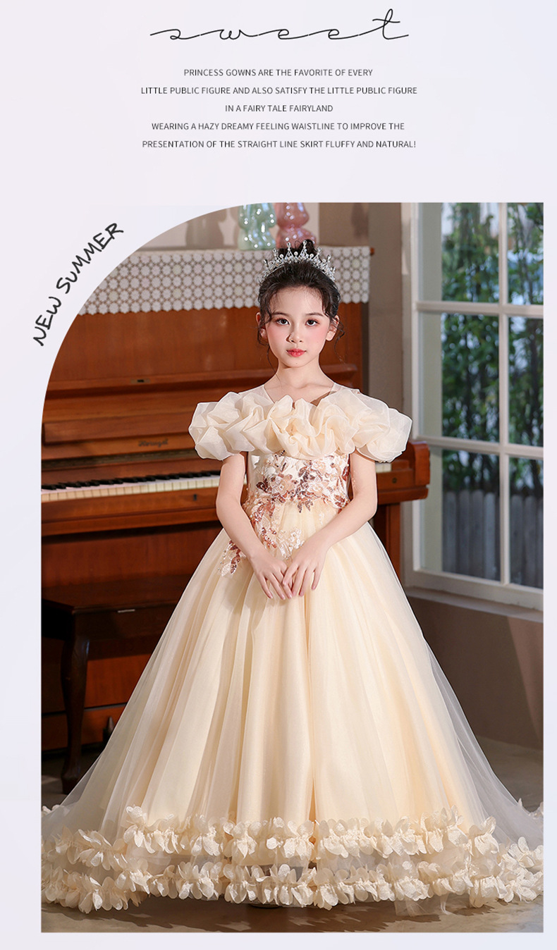 Vestidos para niños 2025 nuevo estilo estilo occidental niña niña hinchada niña piano performance traje niña trapear el piso vestido de princesa