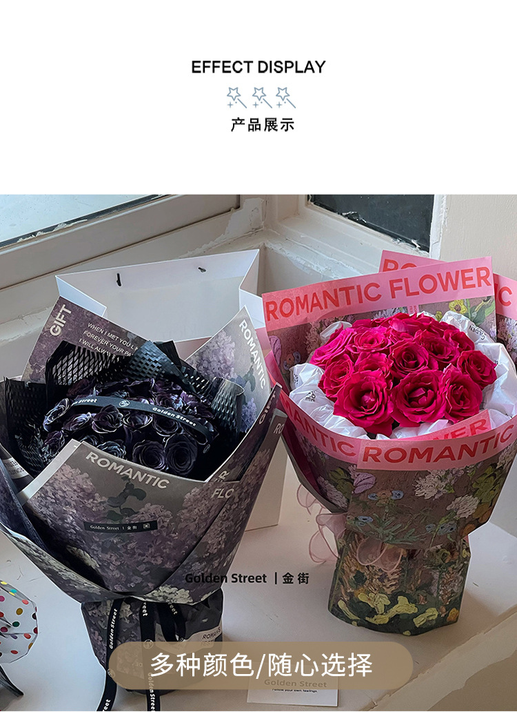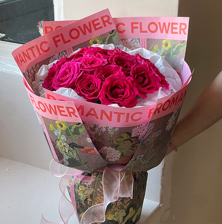 (Gran procesamiento de venta) Papel para envolver flores, pintura al óleo, papel de ambiente, material de embalaje para ramo del Día de San Valentín, papel para envolver flores DIY