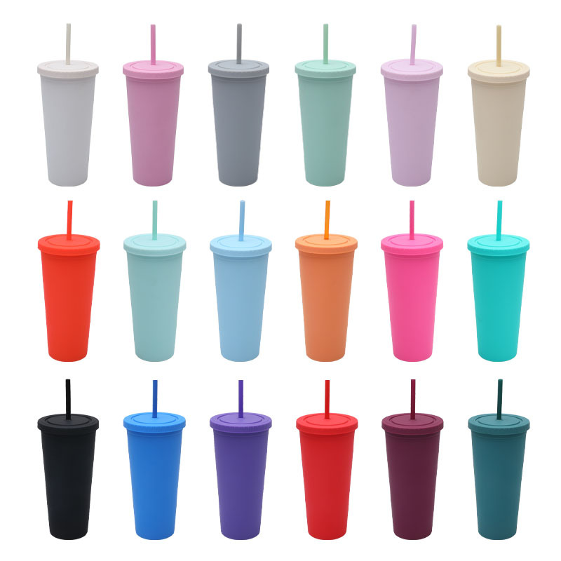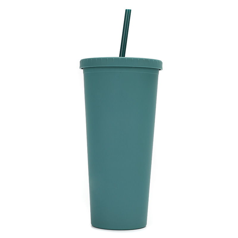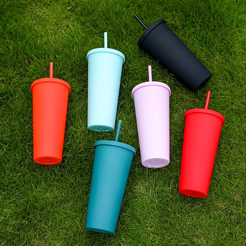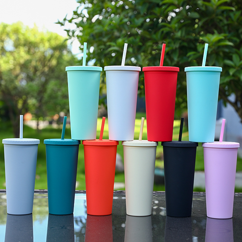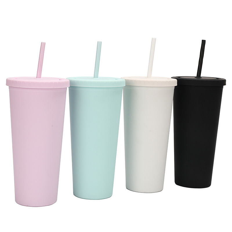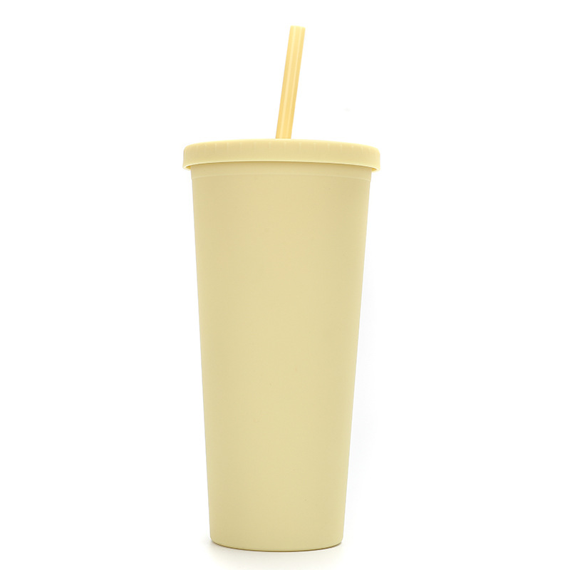 Transfronterizo suministro directo de tazas de paja de plástico de doble capa simple taza de agua de gran capacidad esmaltada de alto valor facial taza de mano lujosa