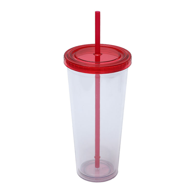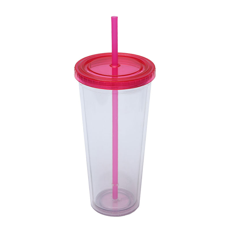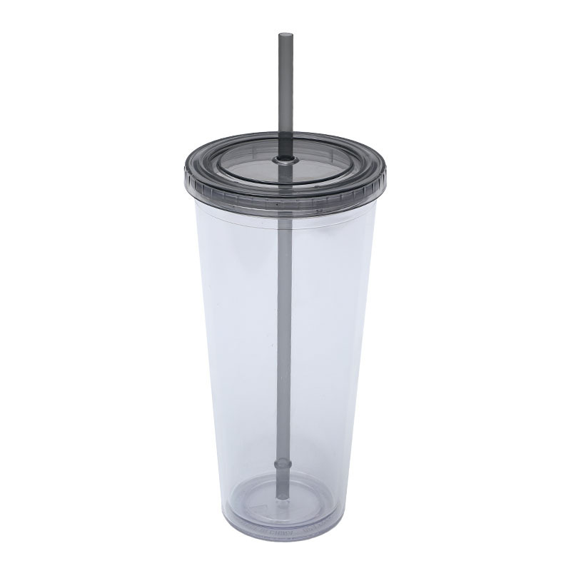 En stock suministro directo transfronterizo 24oz taza de plástico de doble capa de gran capacidad con tapa se puede personalizar LOGO taza portátil COMO taza de paja