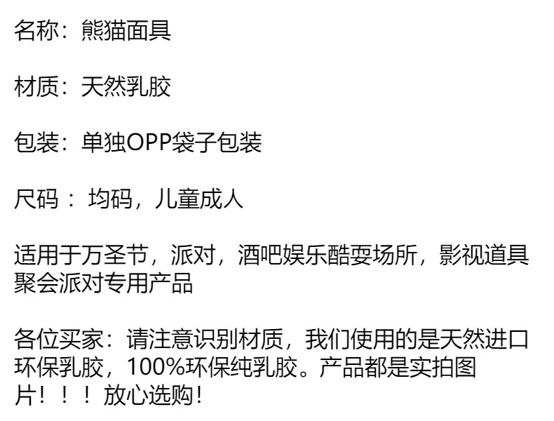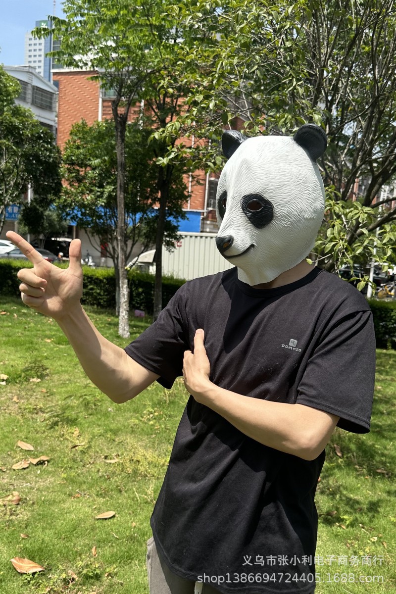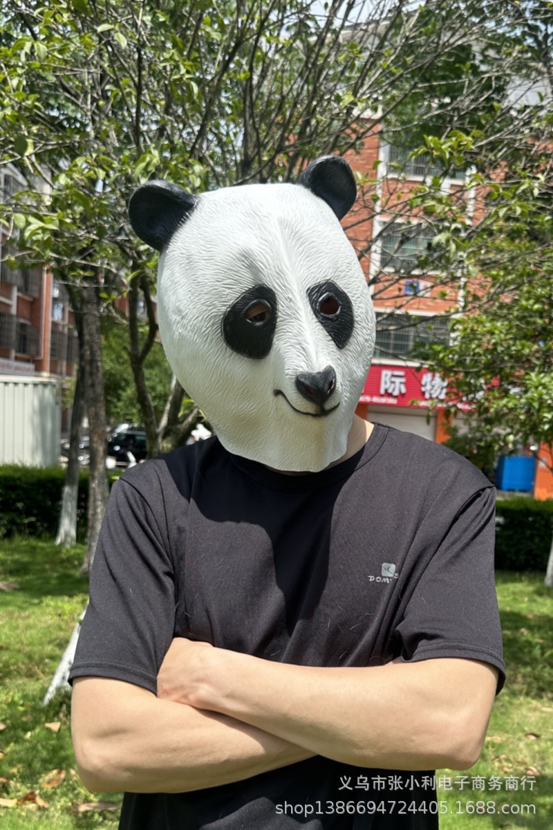 Máscara de panda de látex, disfraz divertido para Halloween, fiestas o actuaciones en directo