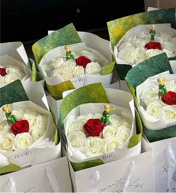 520 Papel de regalo de flores para ramo del Principito, papel hecho a mano con patrón de piedra de tinta, papel amasado a mano, papel de ramo manchado con gradiente