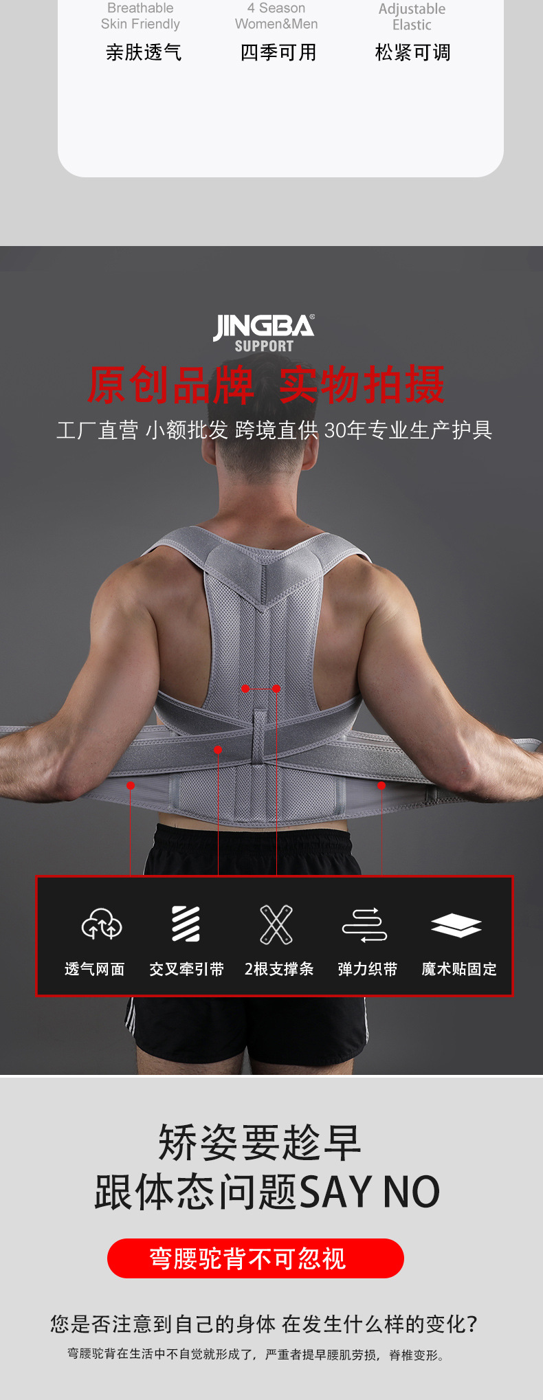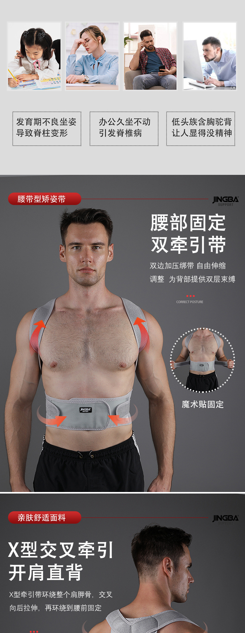Cinturón corrector de postura JINGBA para hombres y mujeres, soporte de espalda, compresión y anti-jorobada