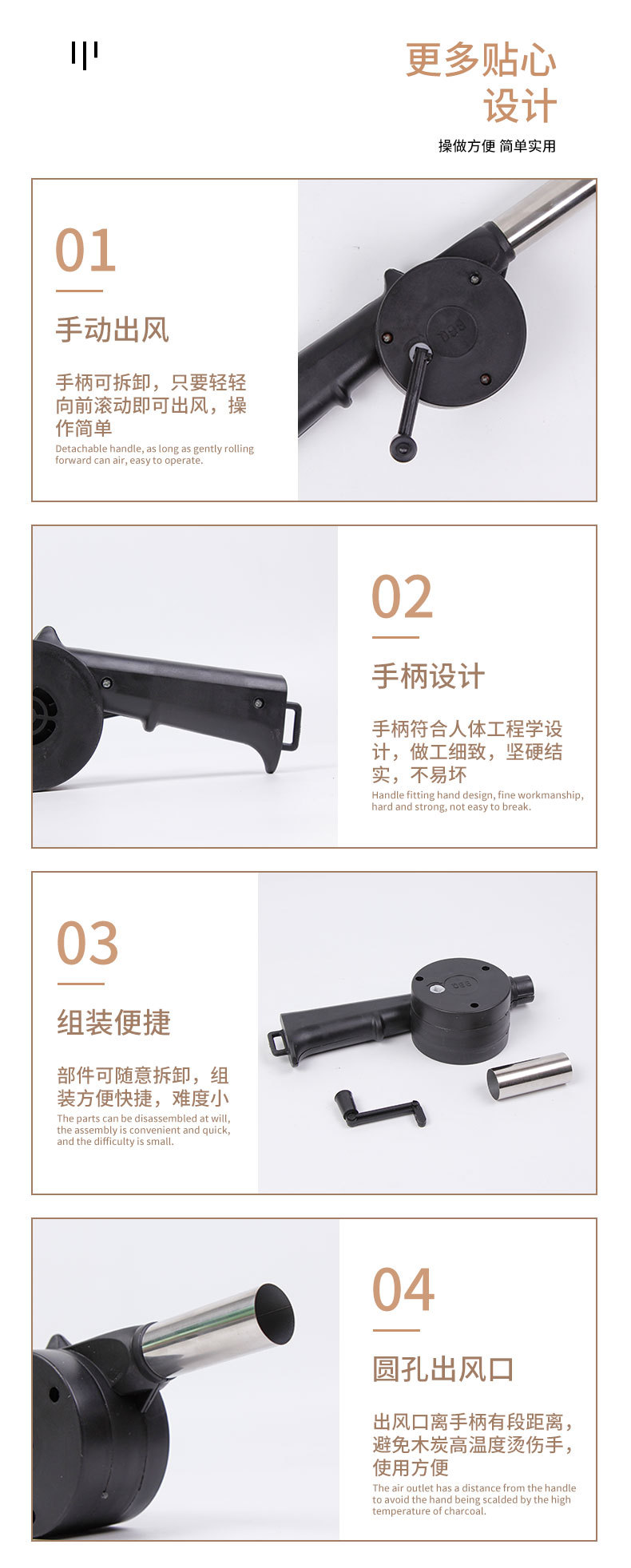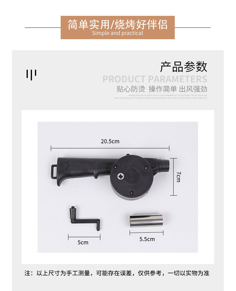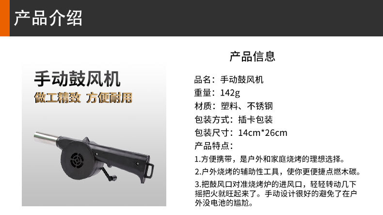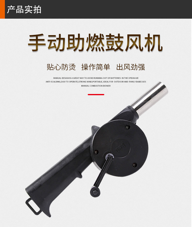 Soplador portátil para barbacoa y camping — activador de combustión manual (manivela), ideal para picnic y uso doméstico; al por mayor