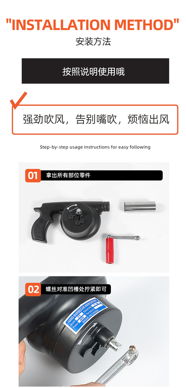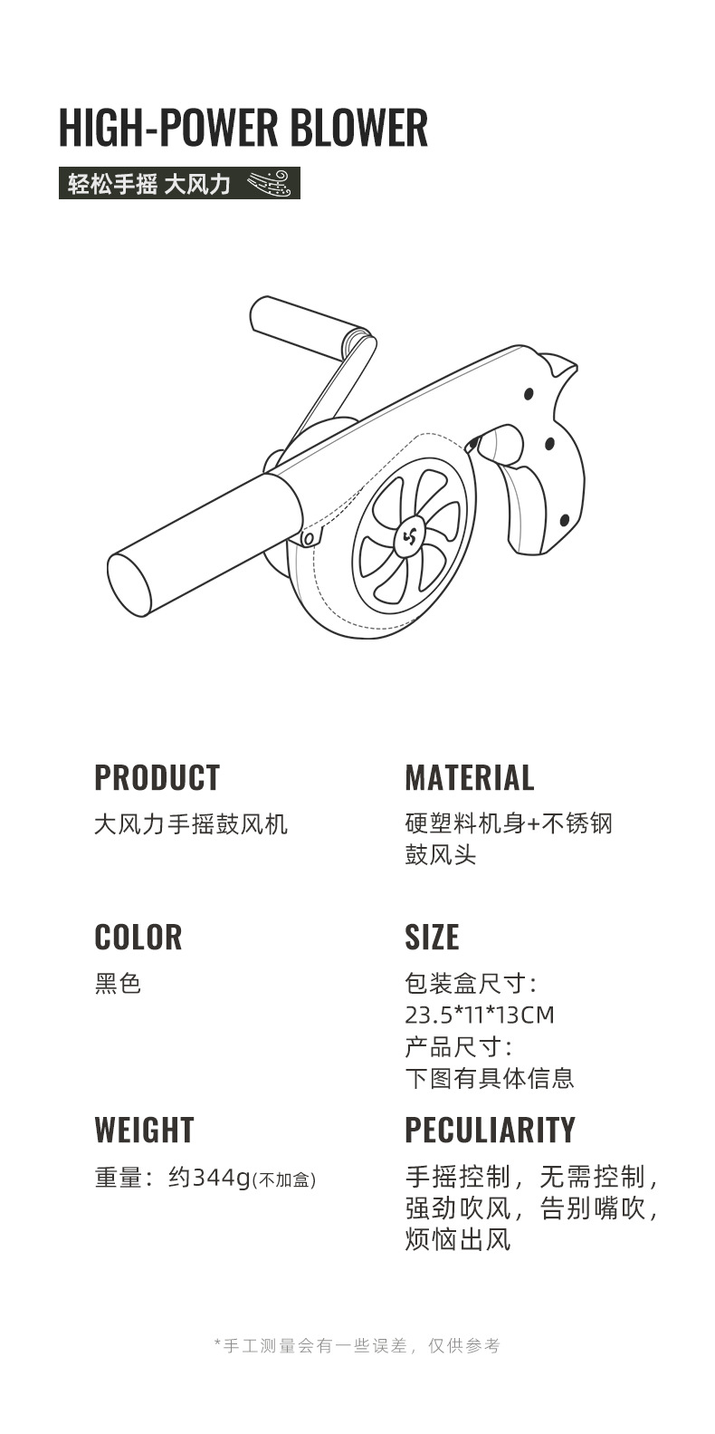 Soplador manual portátil CLS | Herramienta de aire para barbacoa, camping y picnic, potente y fácil de usar