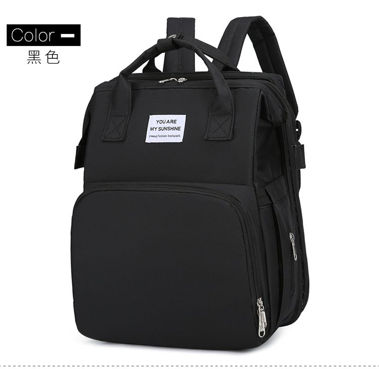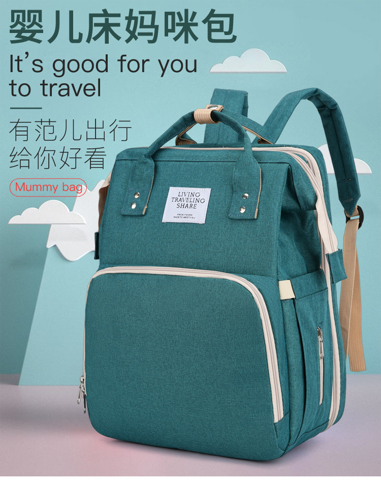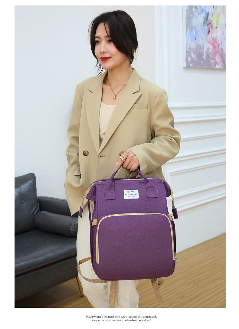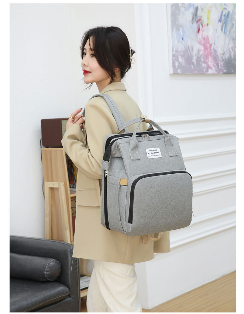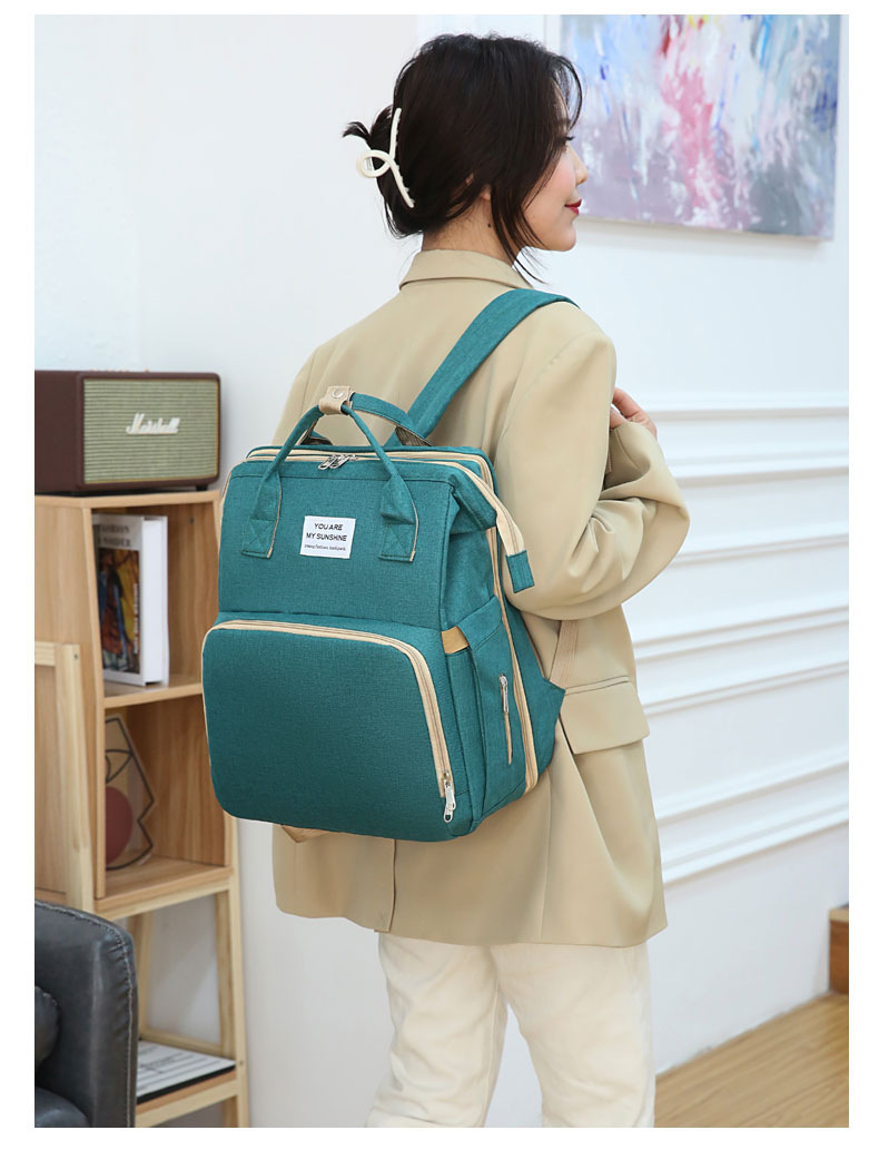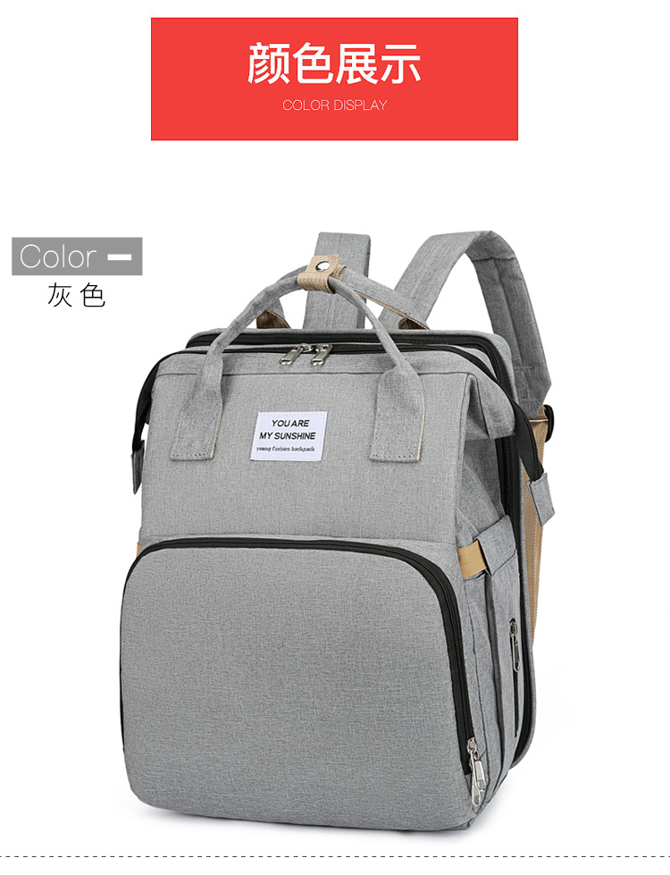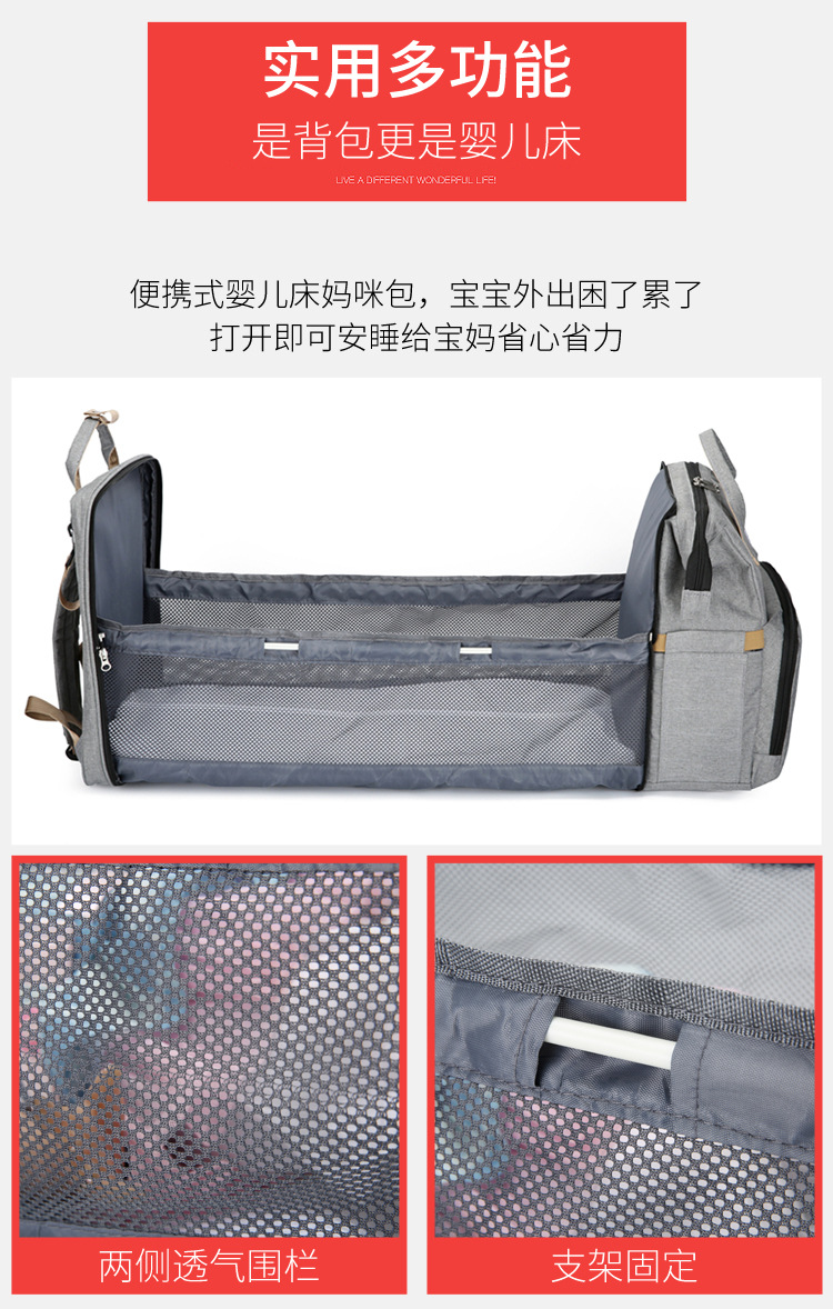 Mochila maternal multifuncional plegable con cuna y puerto USB, bolso de viaje de gran capacidad