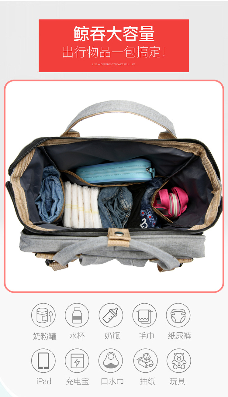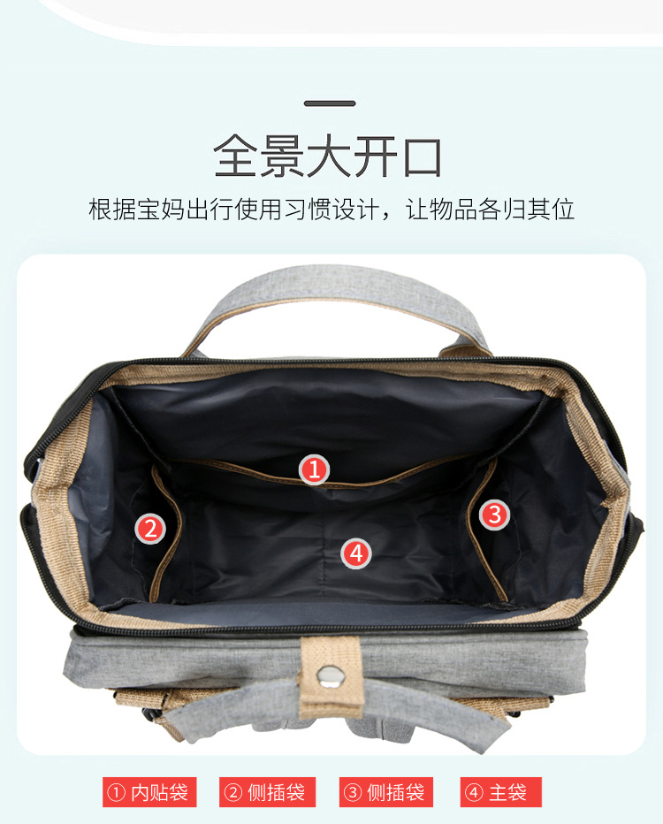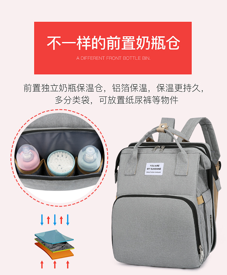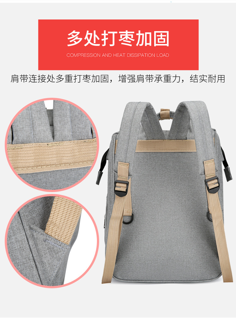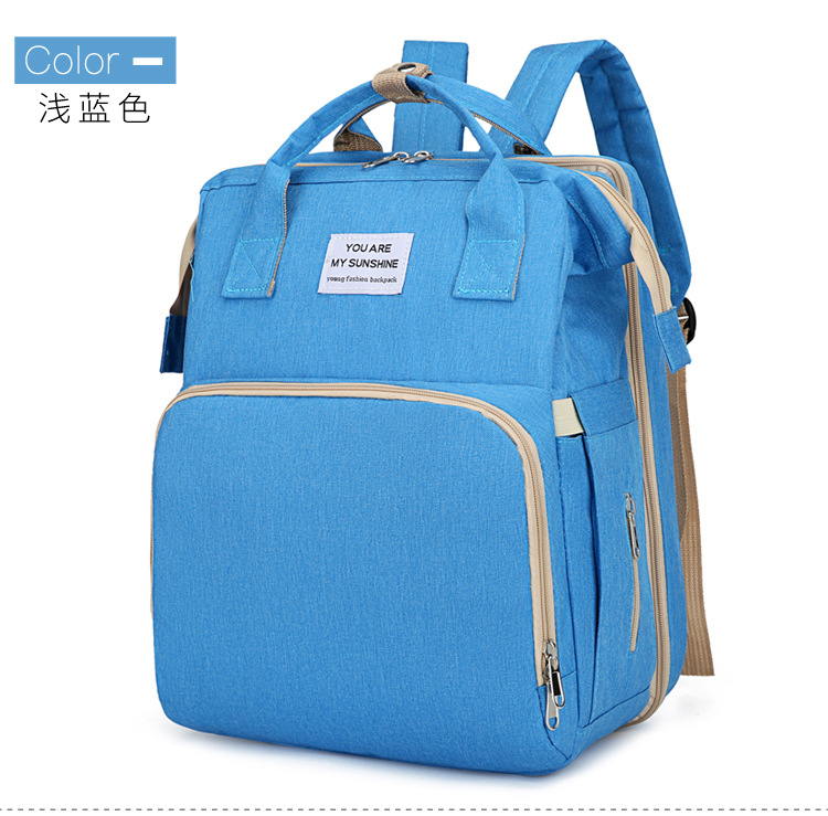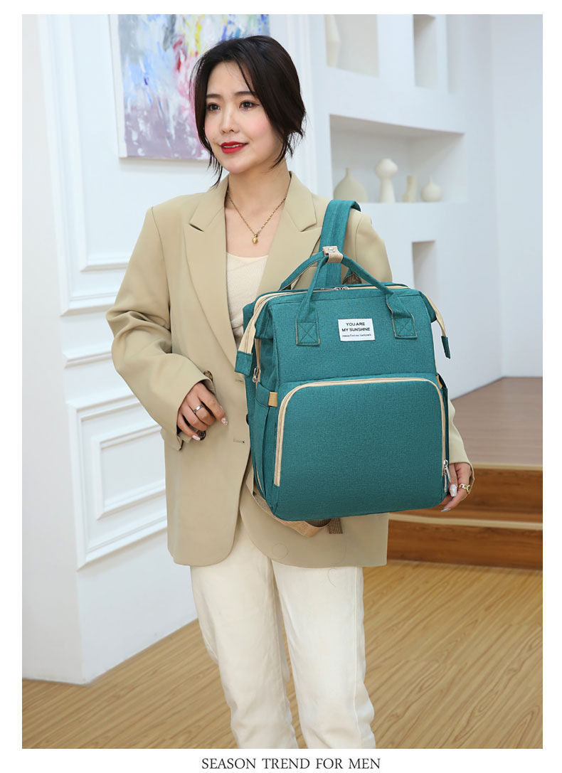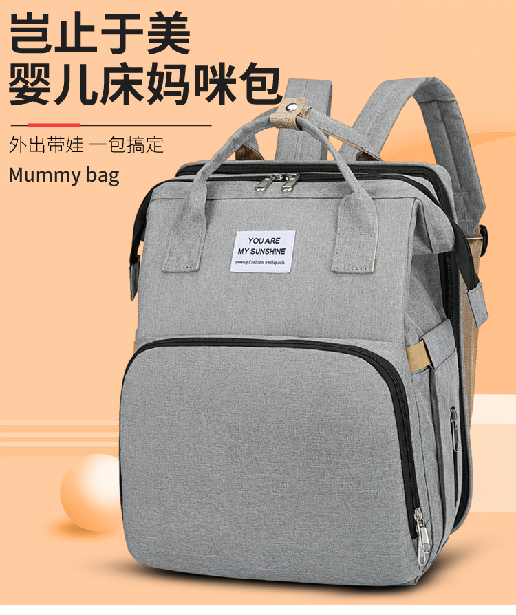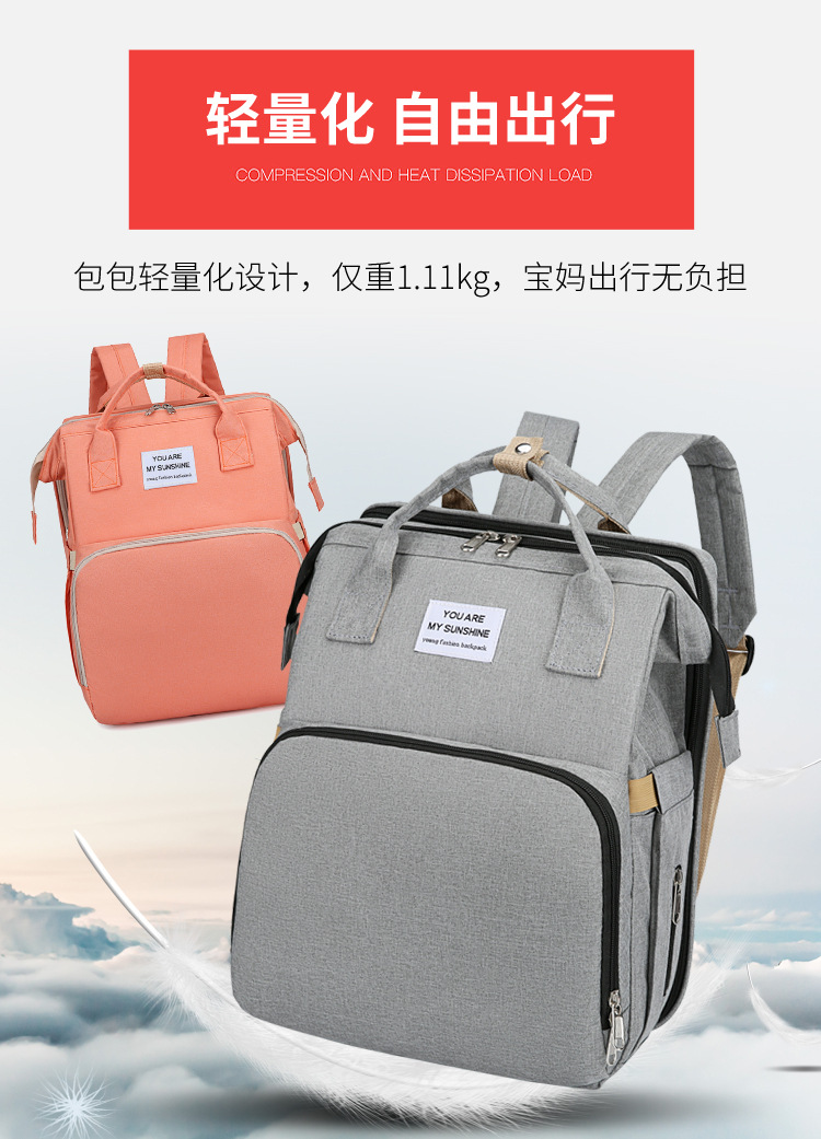 Mochila maternal multifuncional plegable con cuna y puerto USB, bolso de viaje de gran capacidad