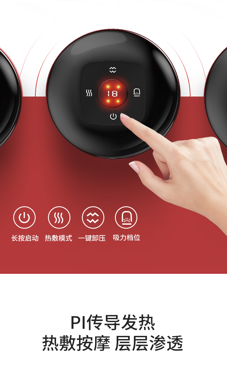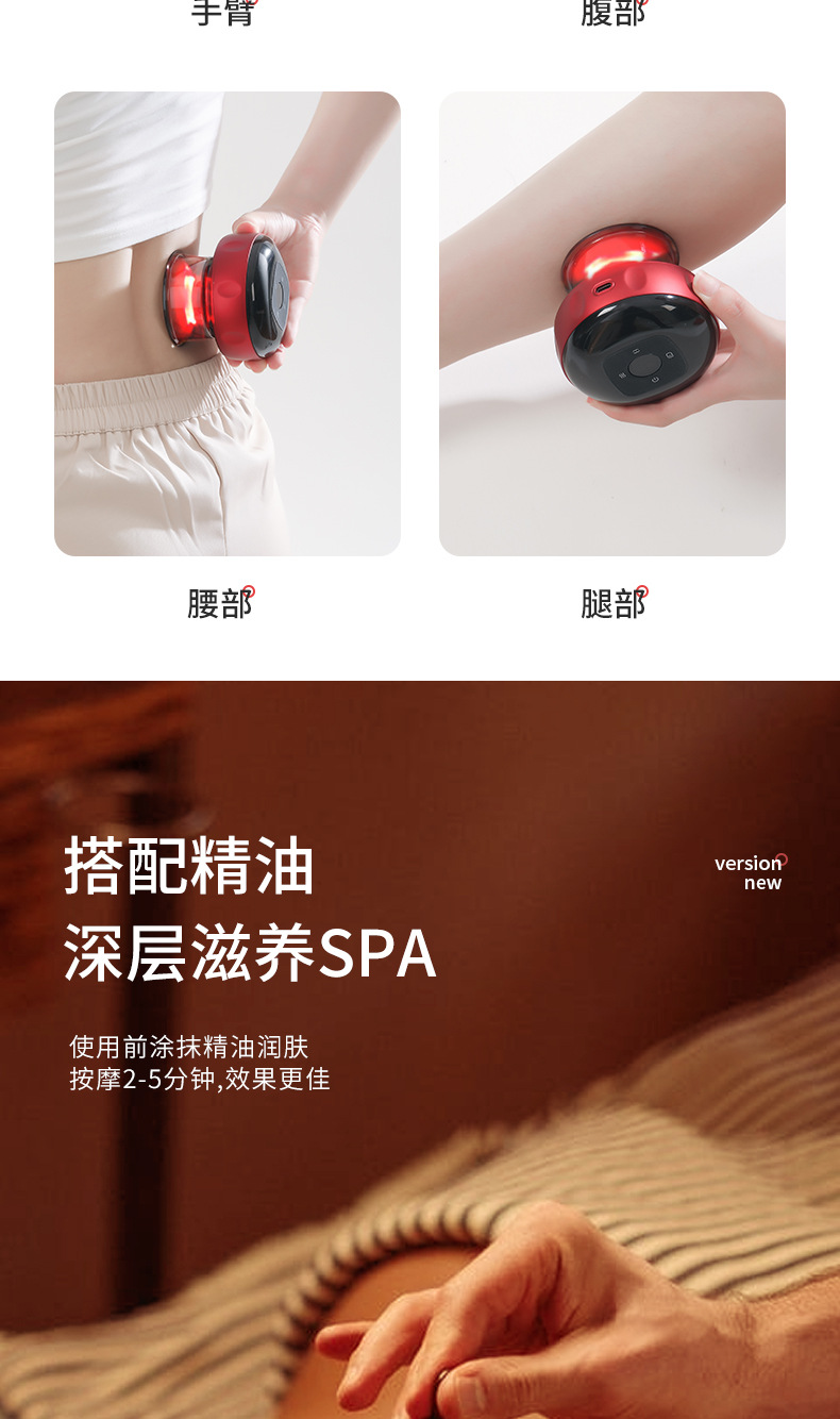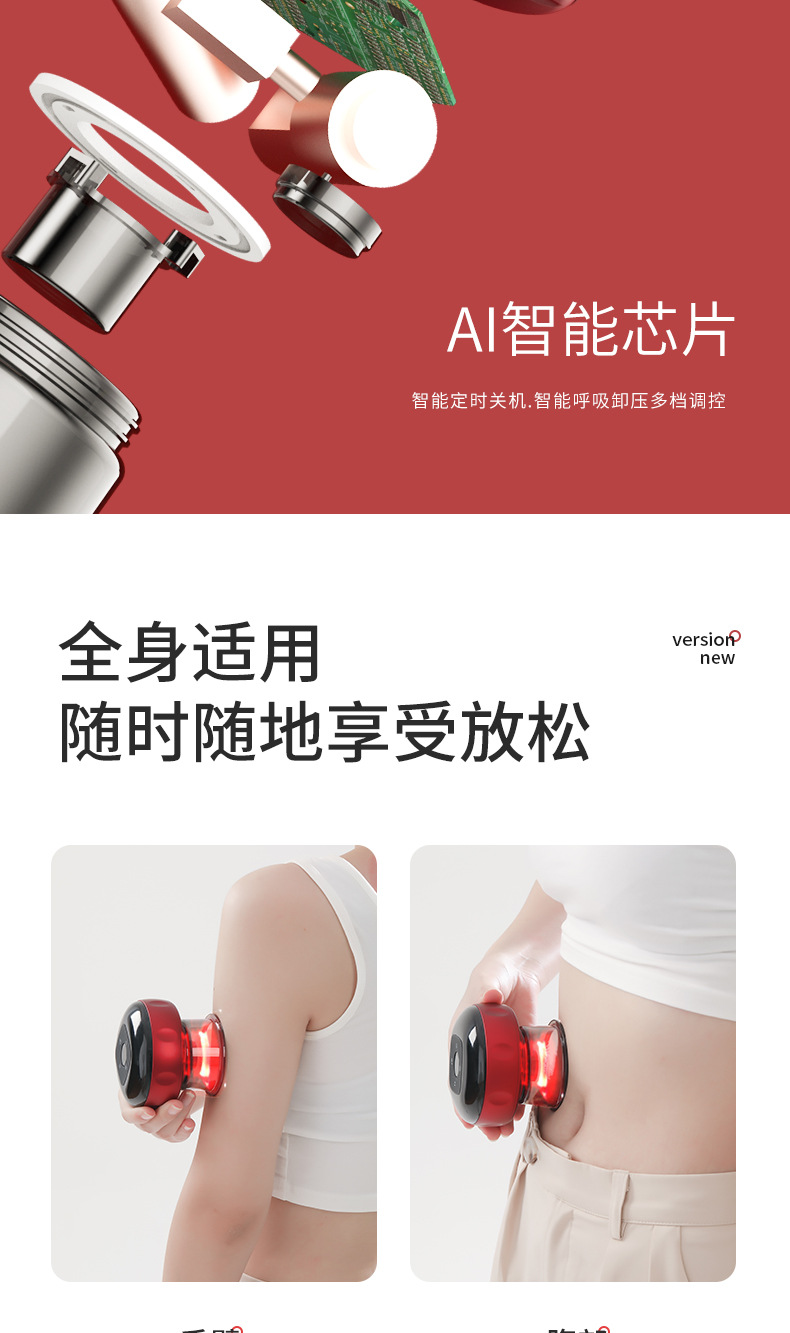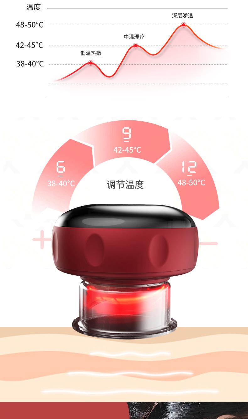 Dispositivo eléctrico de ventosas y raspado — aparato de masaje con succión potente, calor y carga inalámbrica para uso doméstico