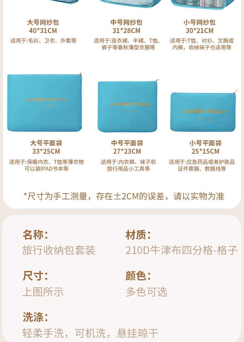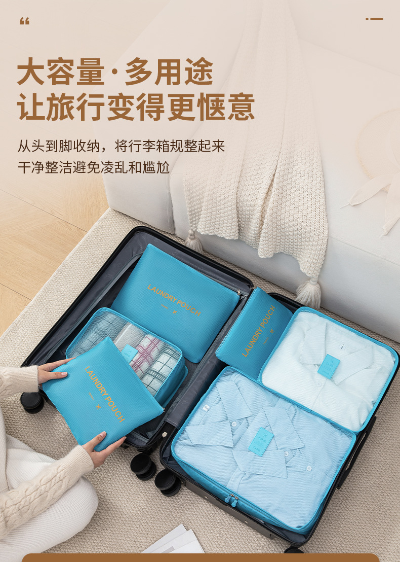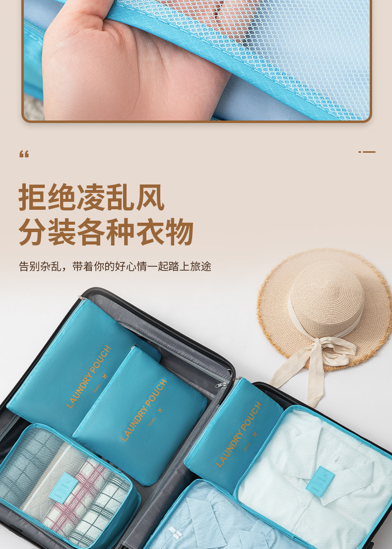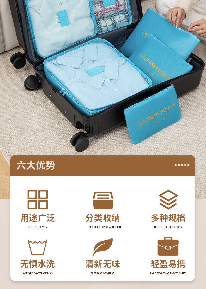 Set de 6 bolsas organizadoras de viaje impermeables, para ropa interior, maleta o accesorios, almacenamiento portátil