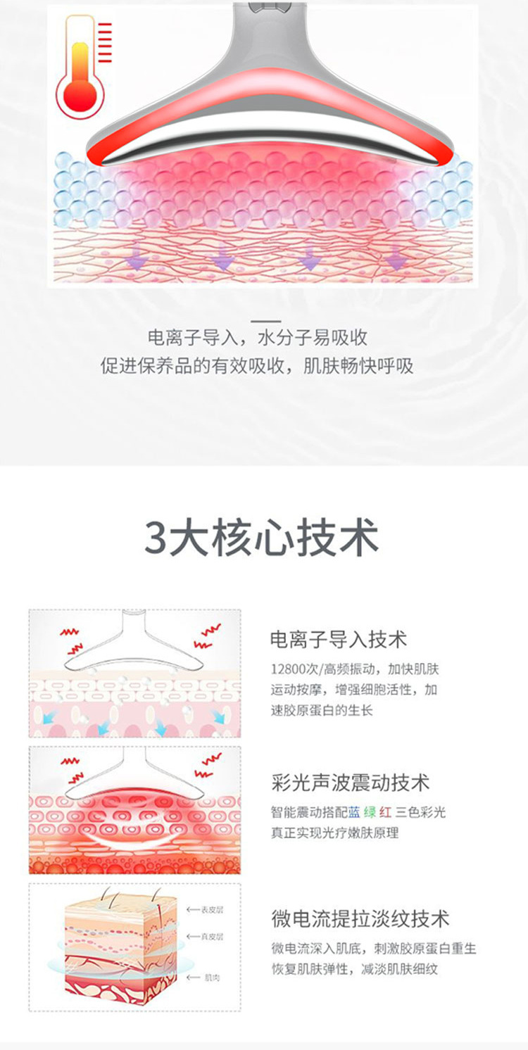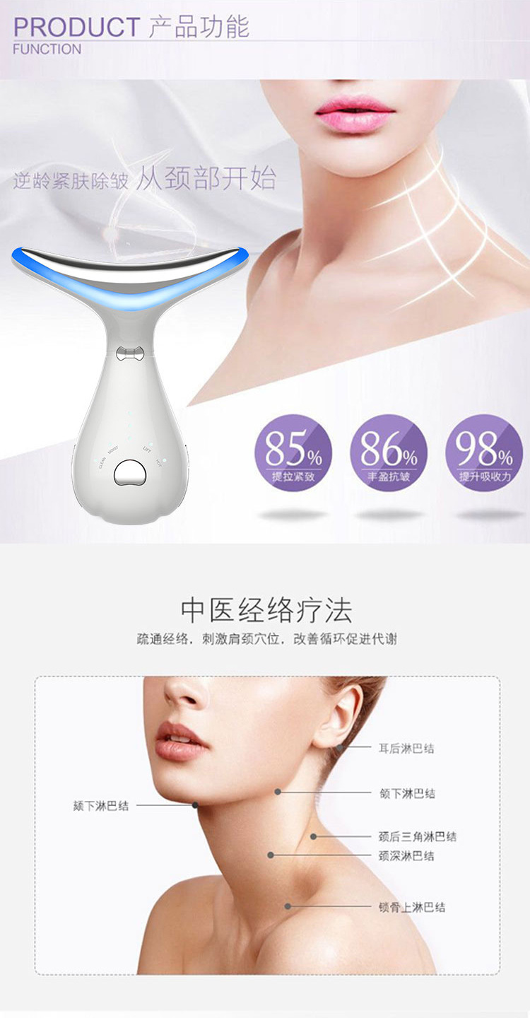 Dispositivo de masaje de cuello con luz roja y azul | Aparato de belleza facial | Masajeador de cuello y esencias