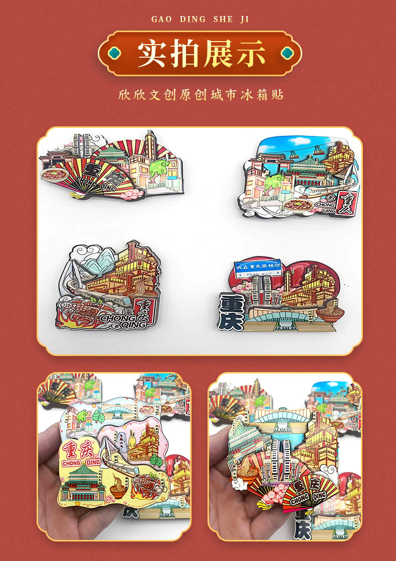 Adhesivo magnético creativo estilo chino | Souvenir Chongqing | Decoración para refrigerador o madera