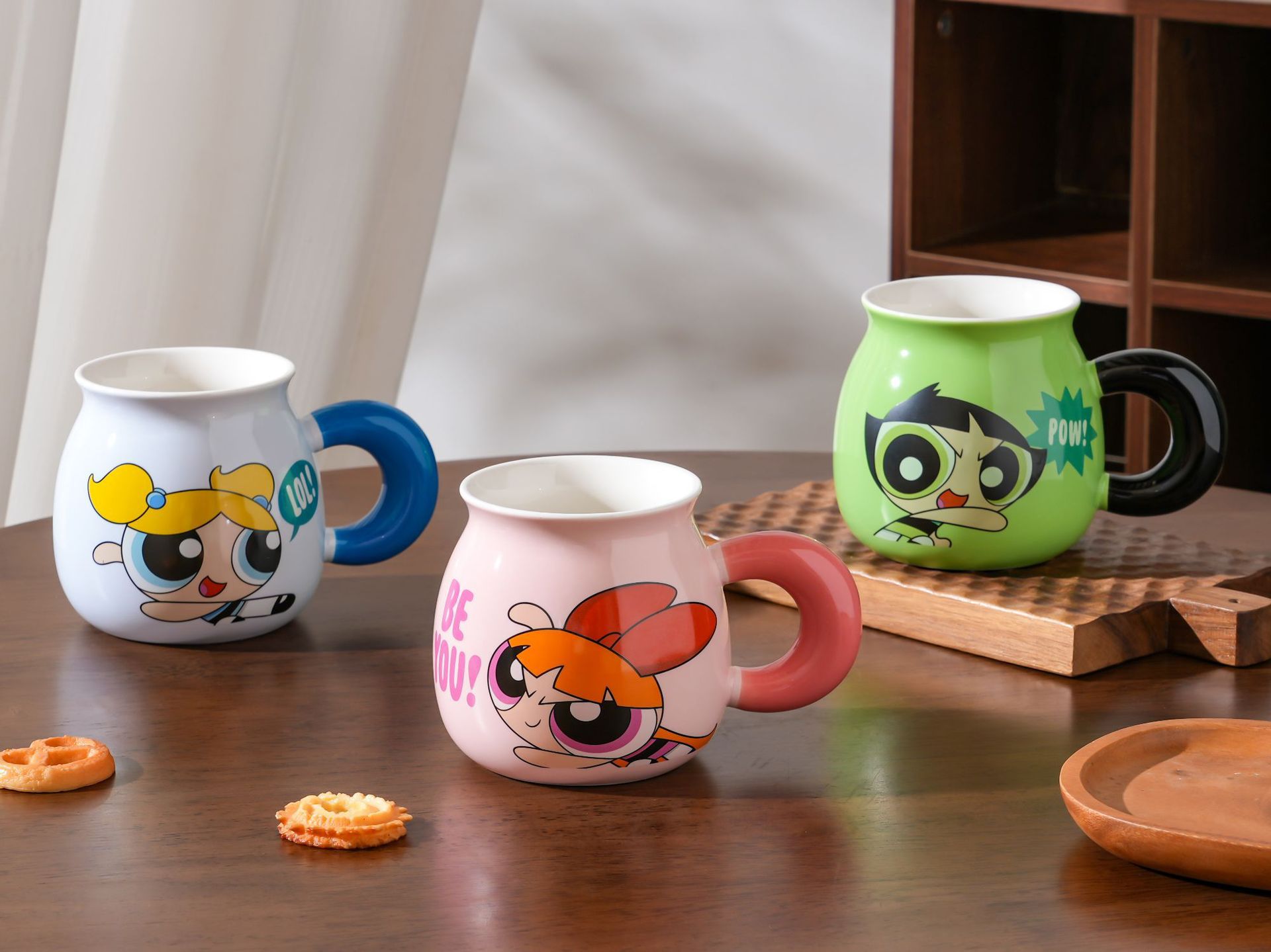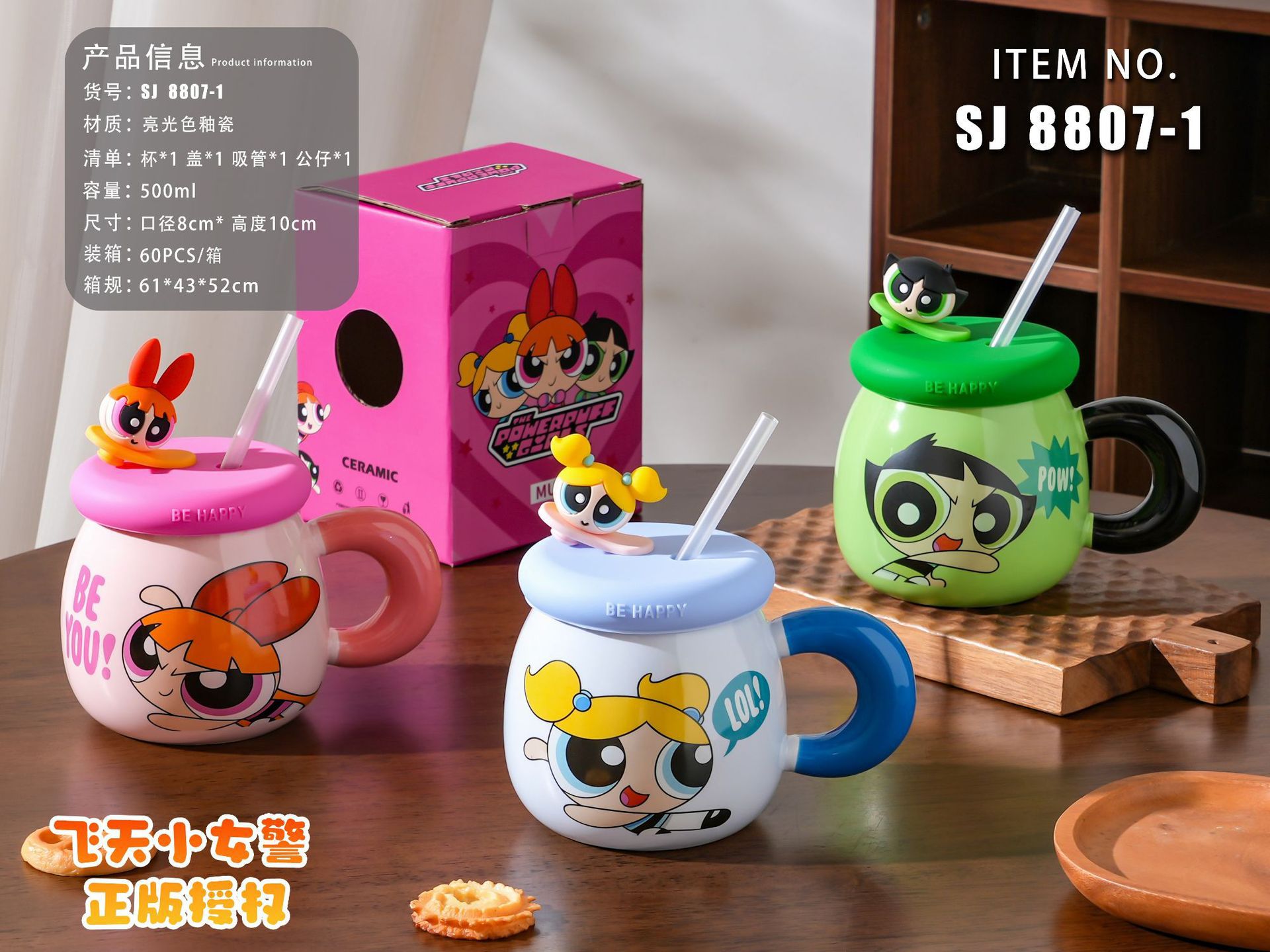 Taza de cerámica Powerpuff Girls con tapa, diseño lindo, ideal para café y regalo de cumpleaños.