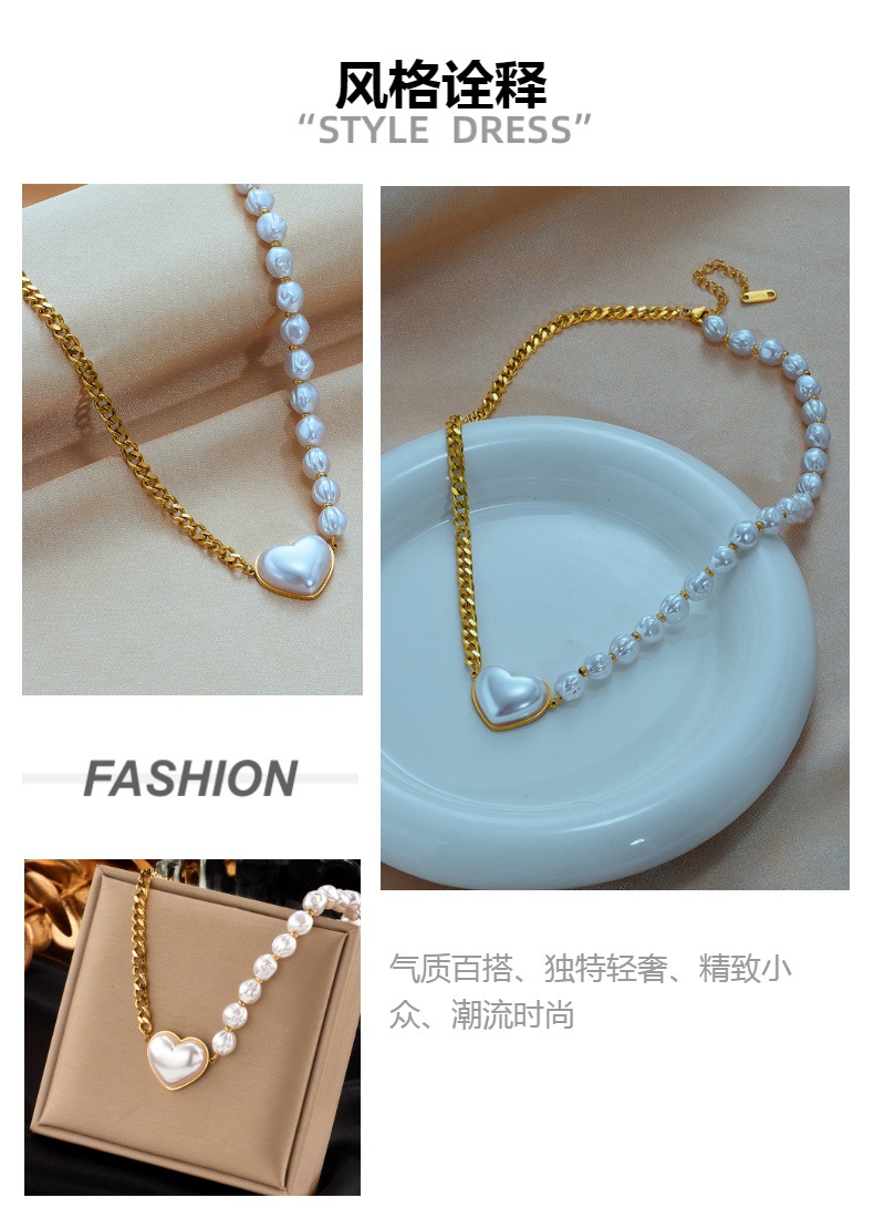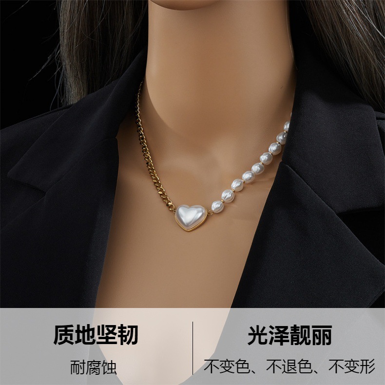 Collar de perlas y corazón en acero titanio