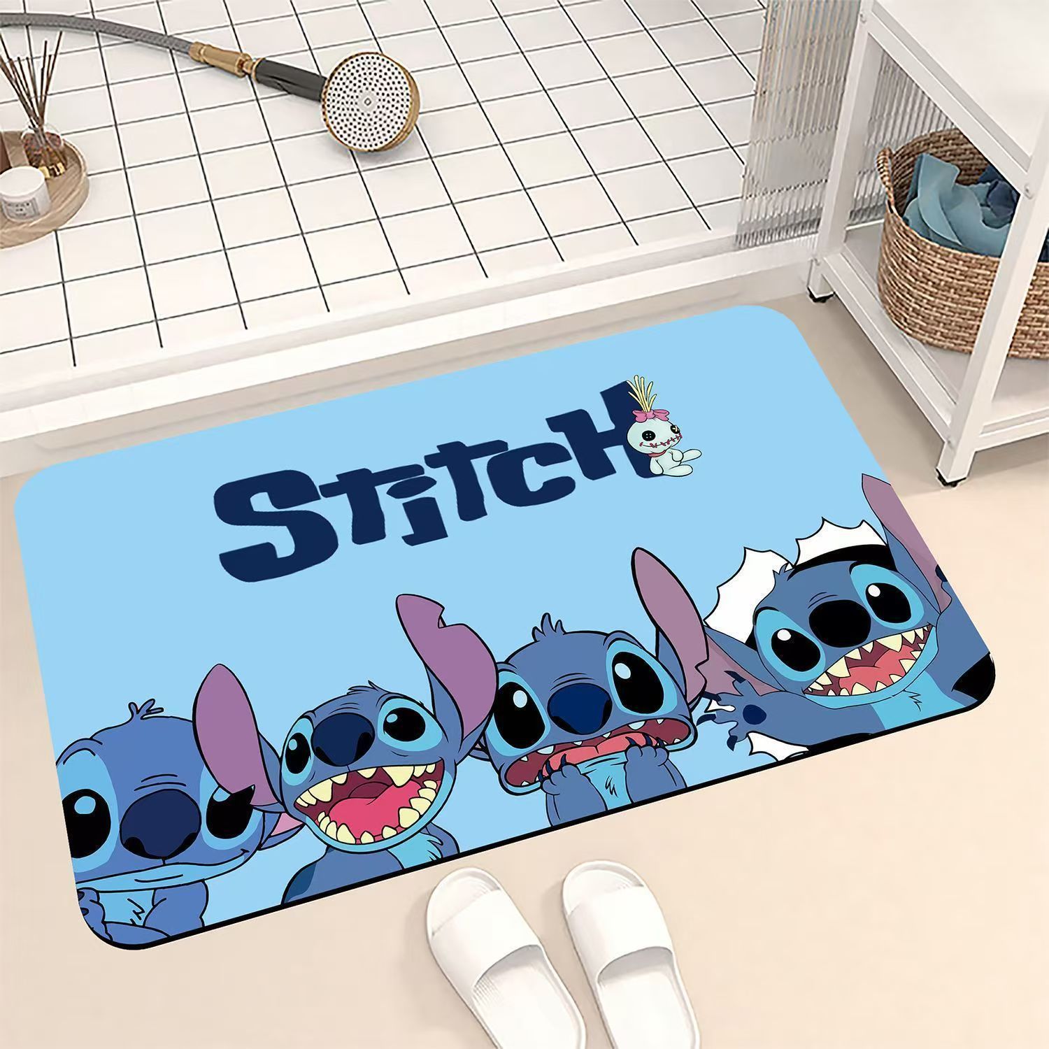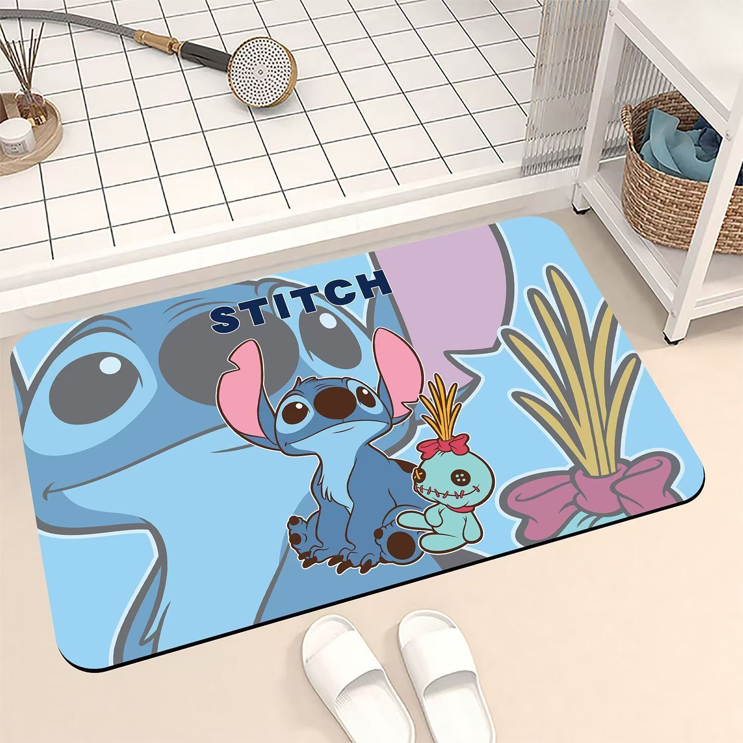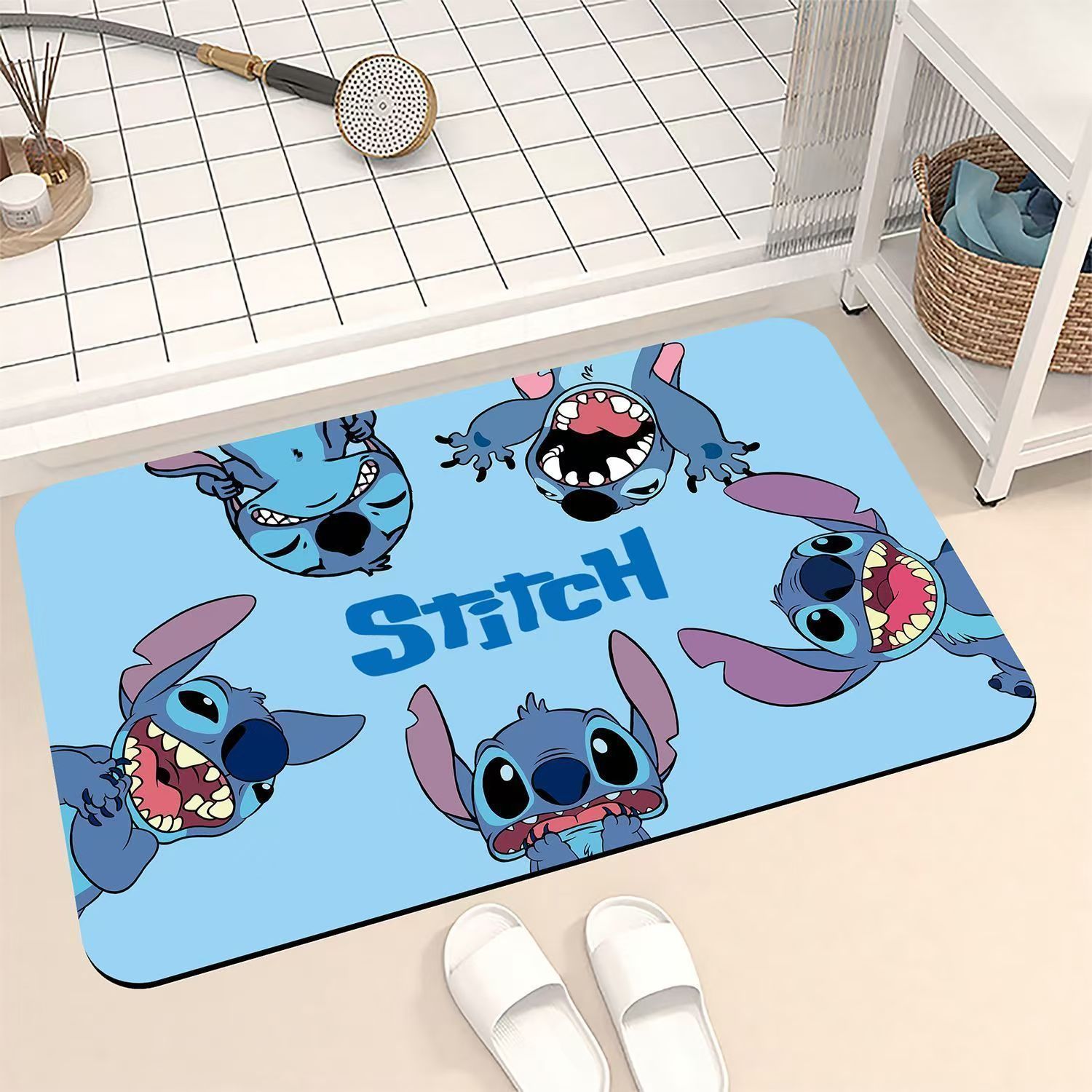 Tapete de baño de diatomeas Stitch, diseño adorable, antideslizante para baño u entrada.