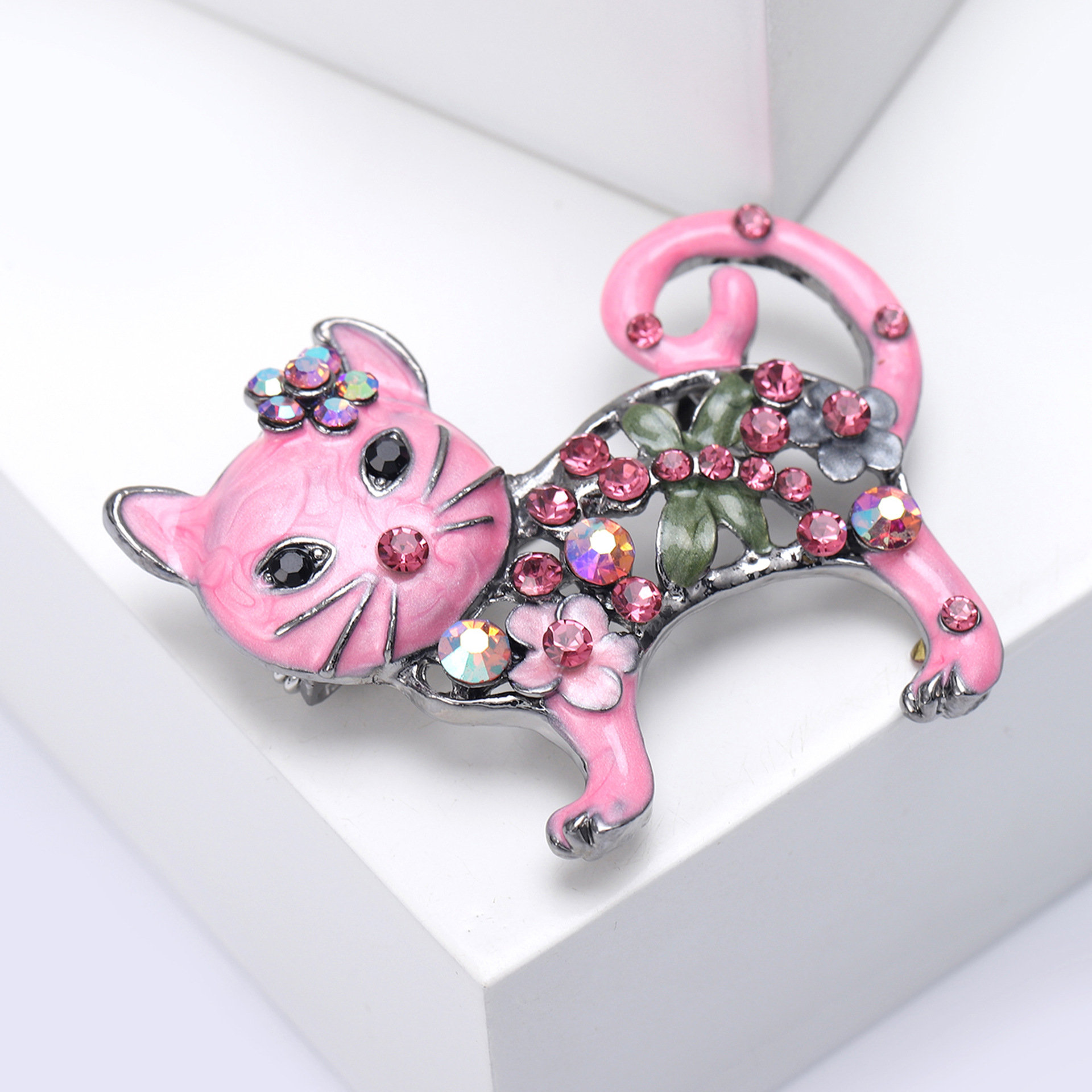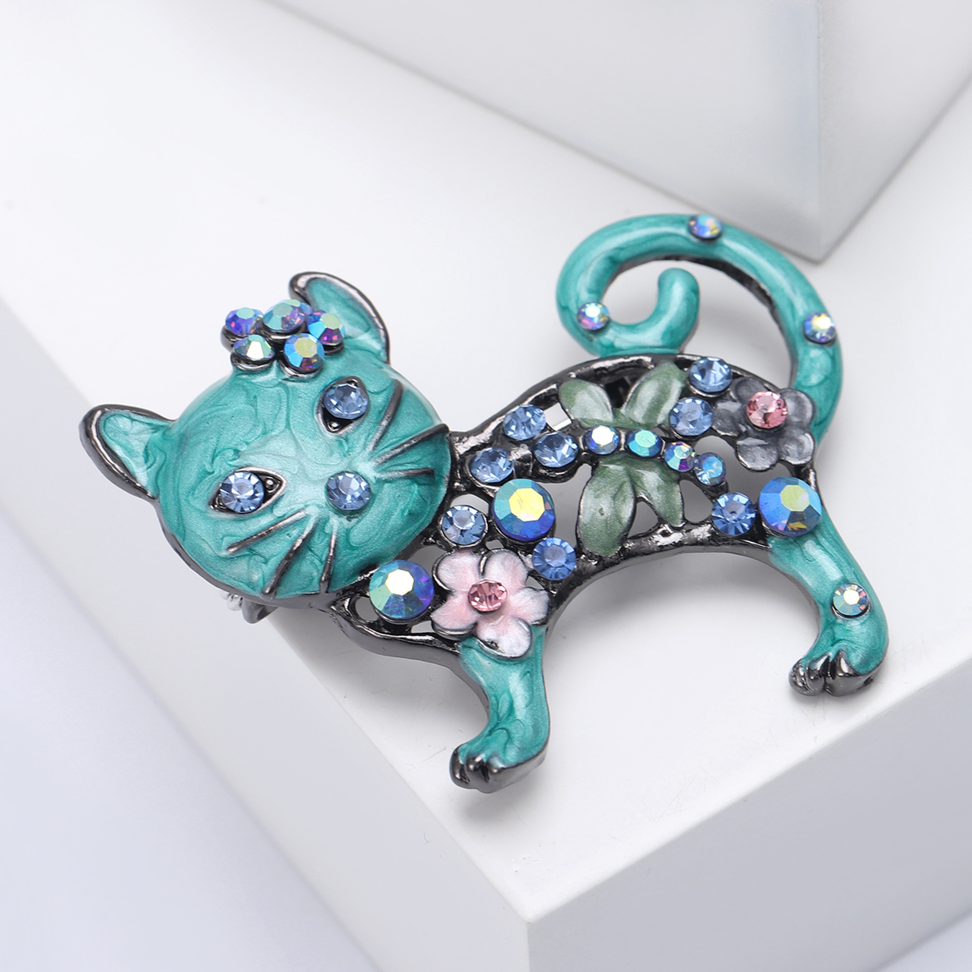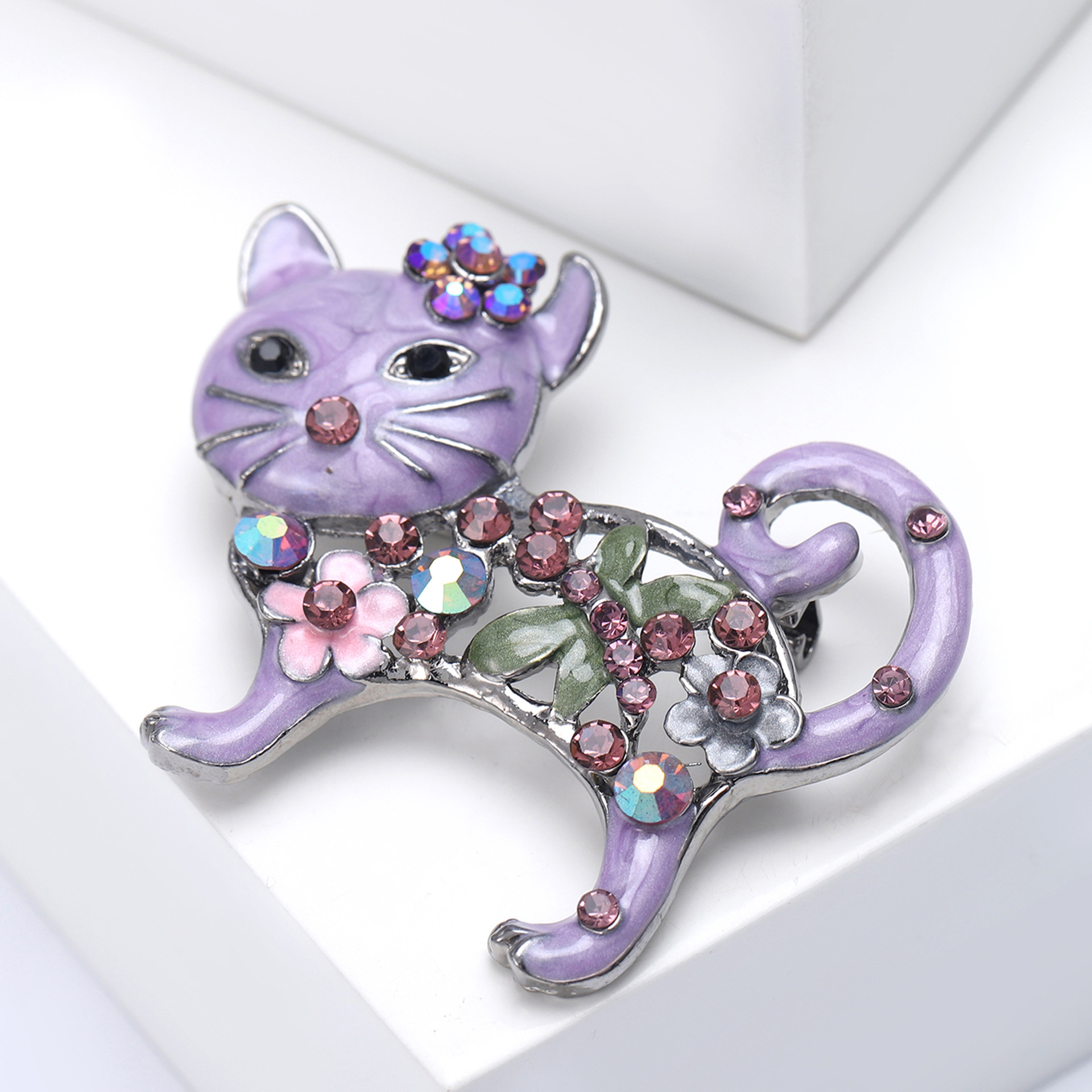 Broche de gatito esmaltado con incrustaciones brillantes