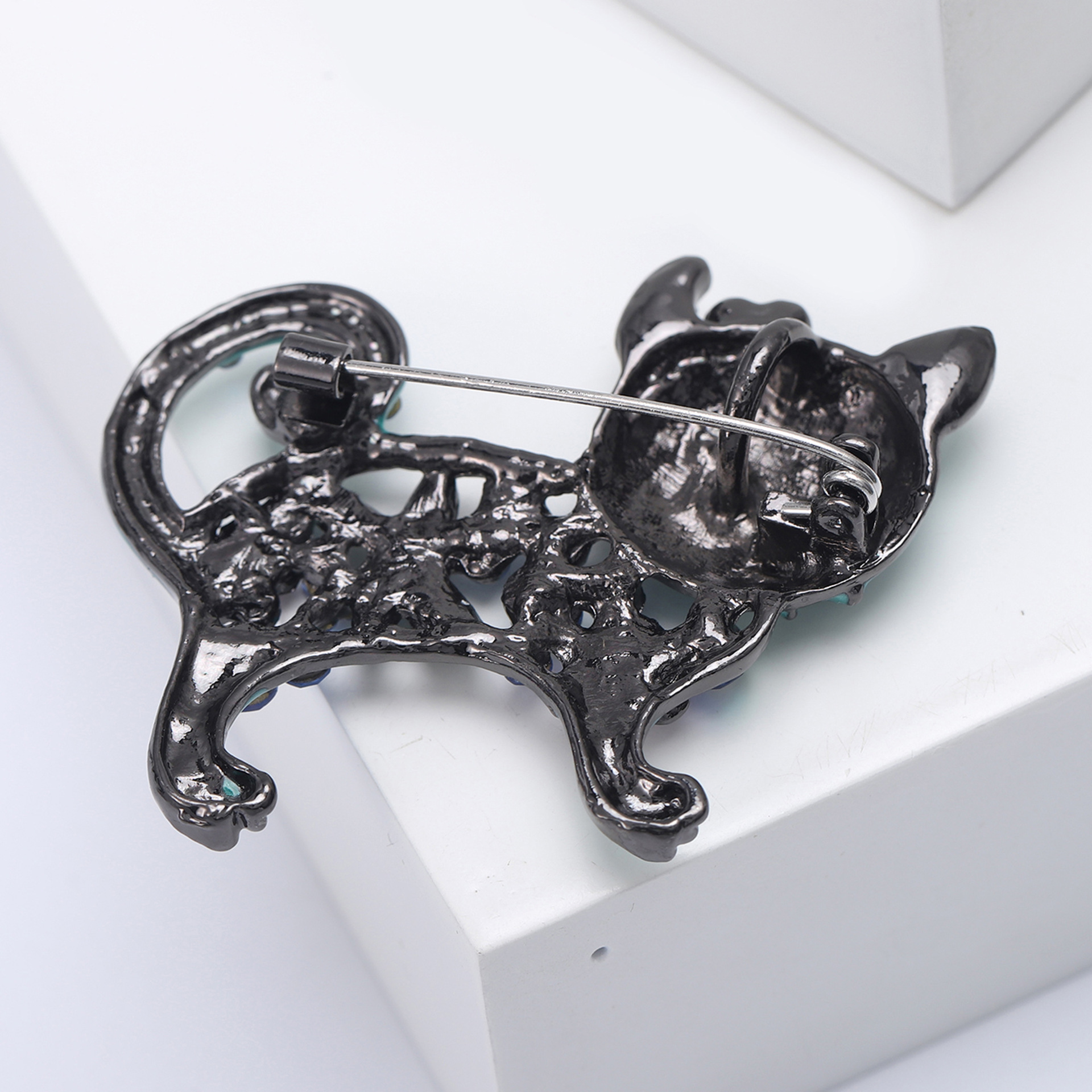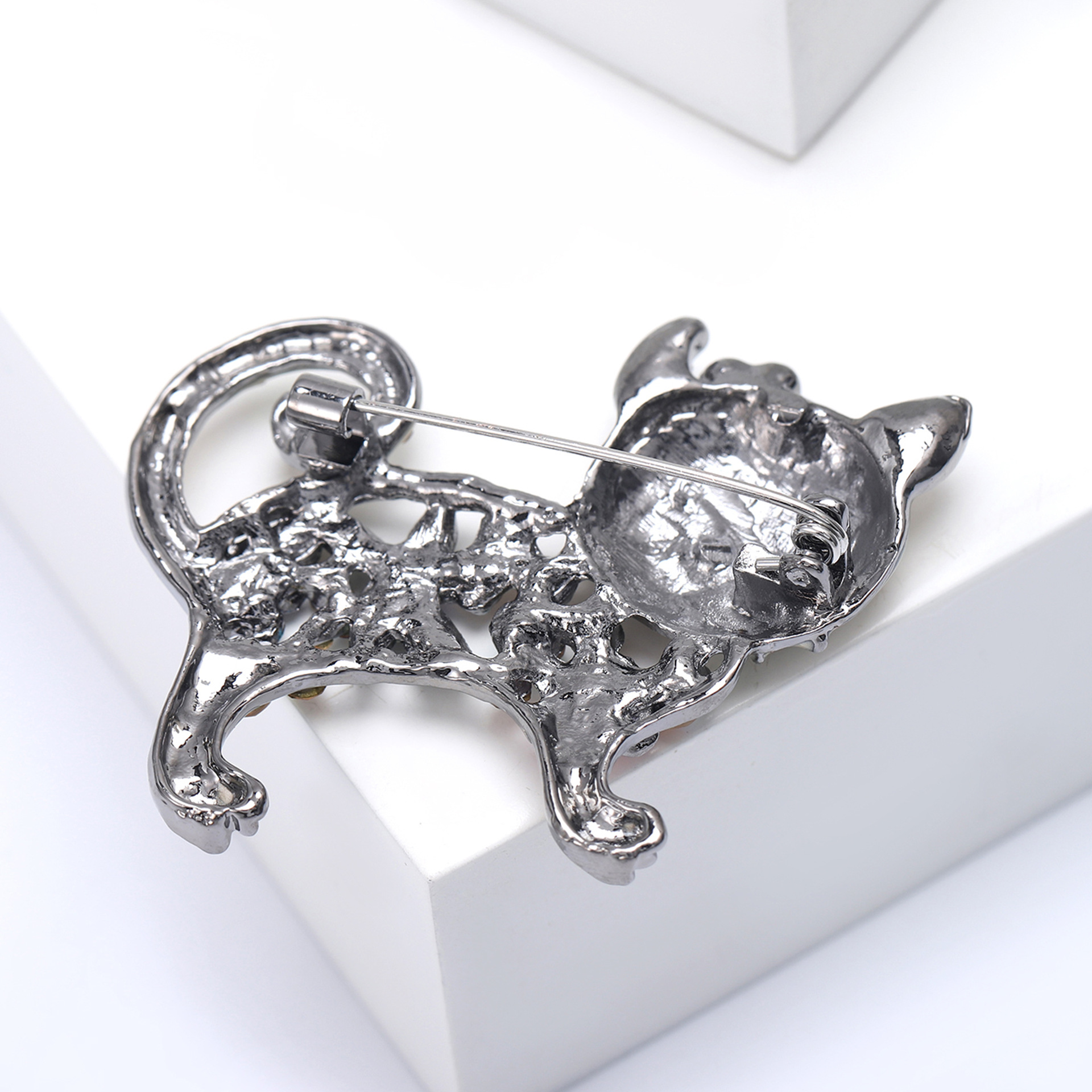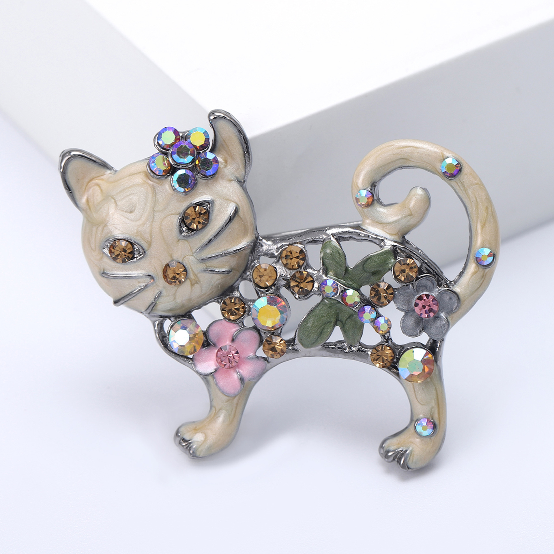 Broche de gatito esmaltado con incrustaciones brillantes