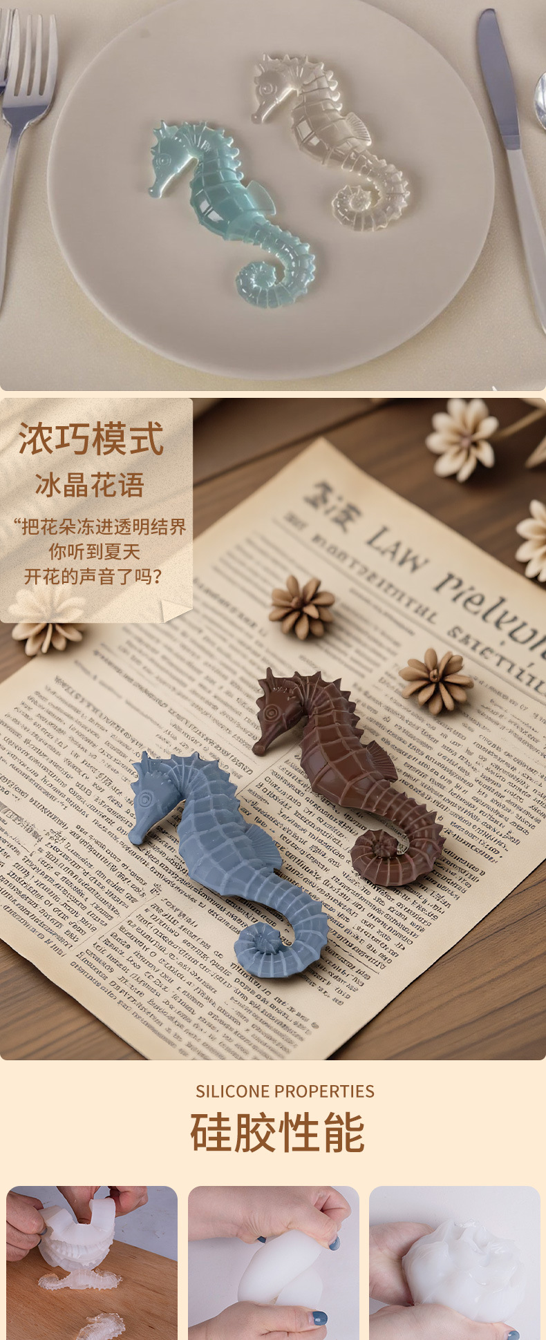 Molde Silicona Medusa/Seahorse — Pudín, Gelatina, Chocolate