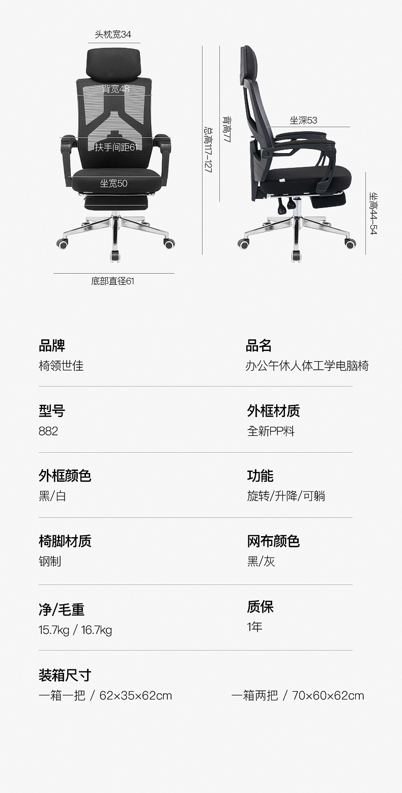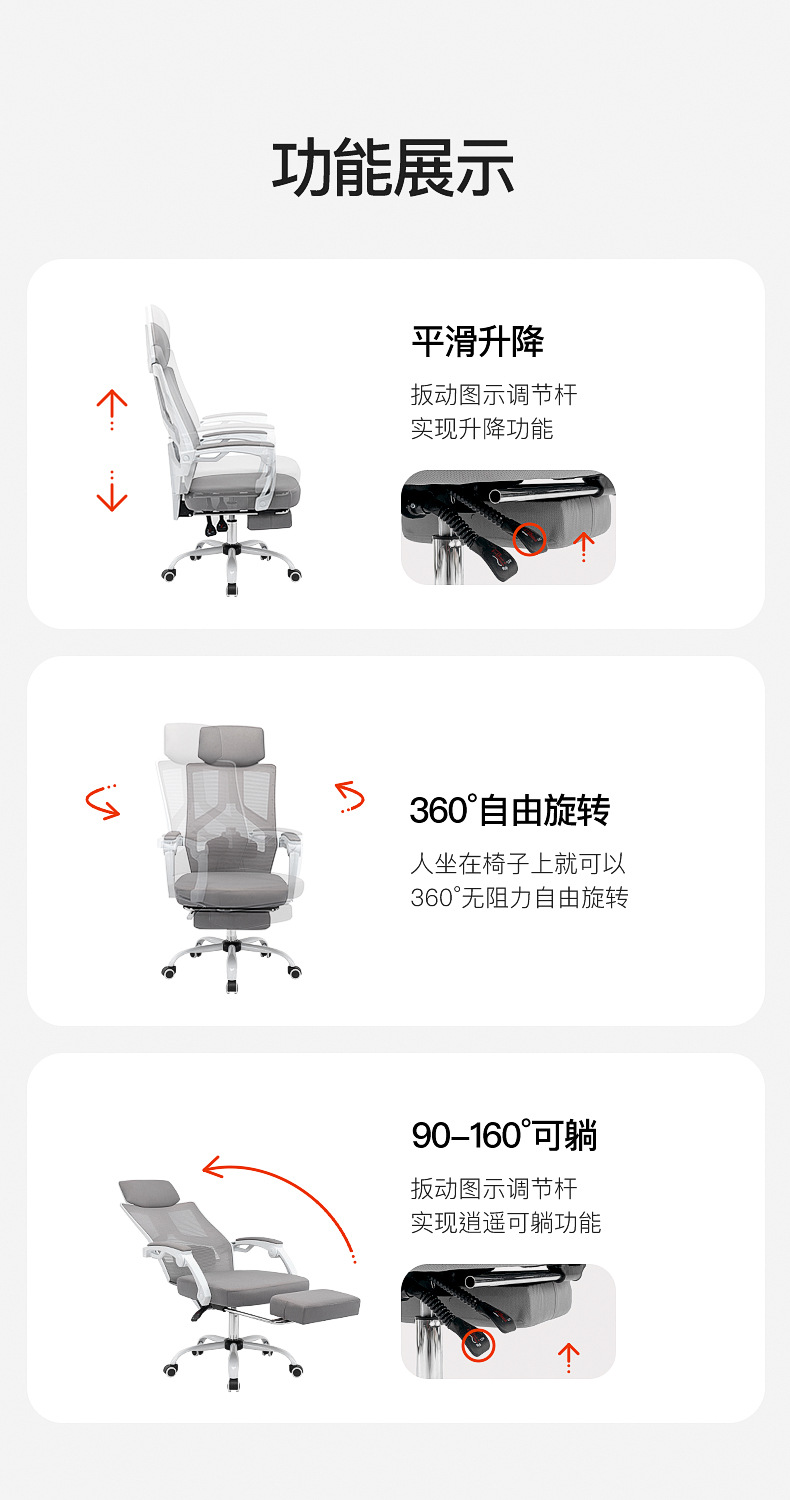 Silla ergonómica de oficina al por mayor reclinable para casa trabajo largo descanso sin cansancio