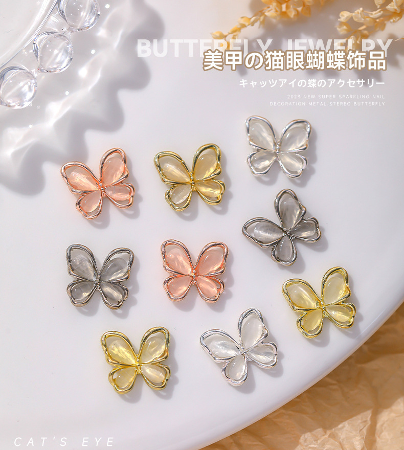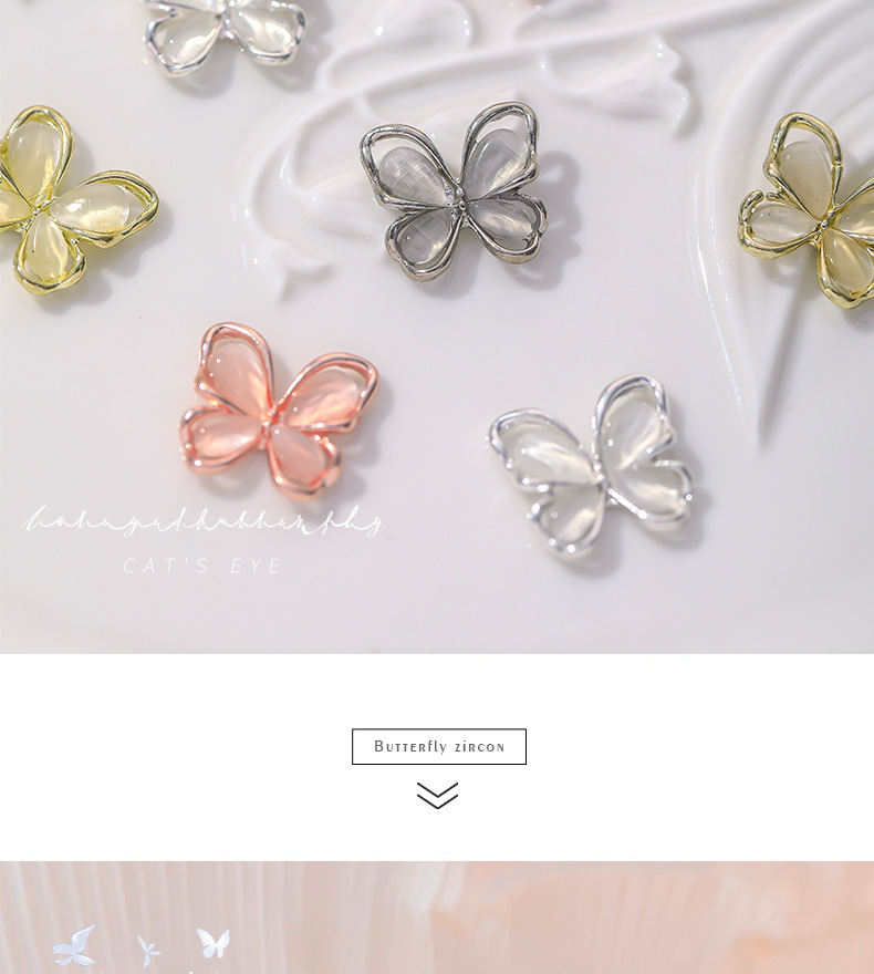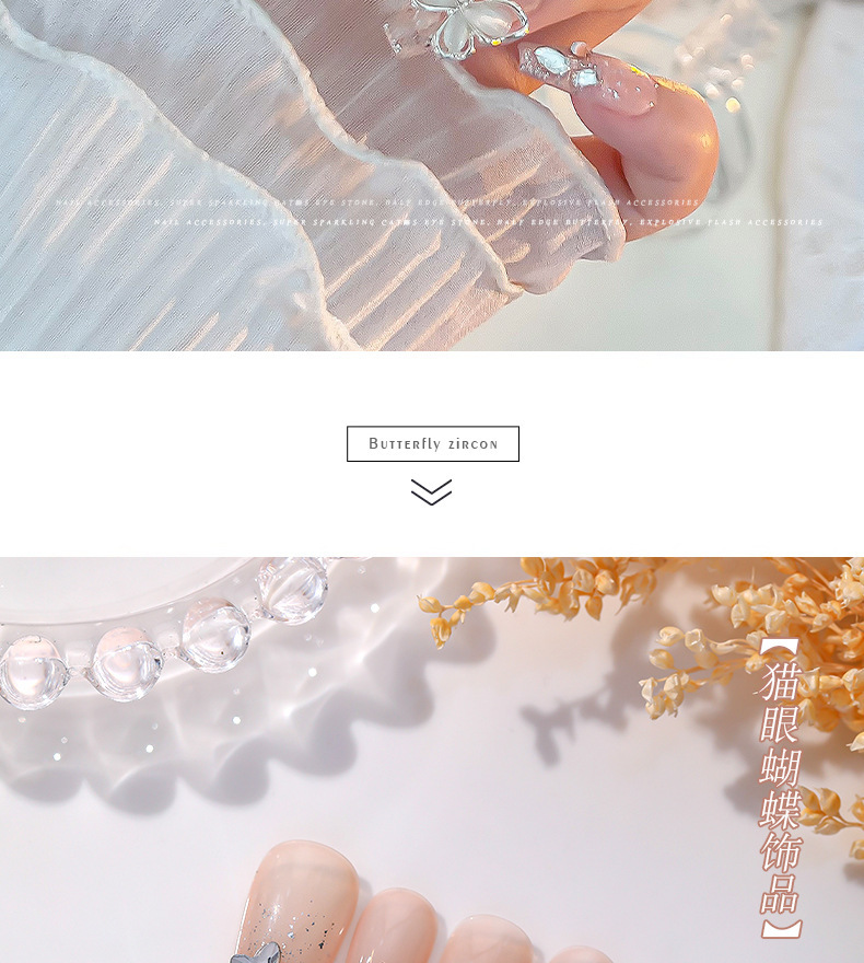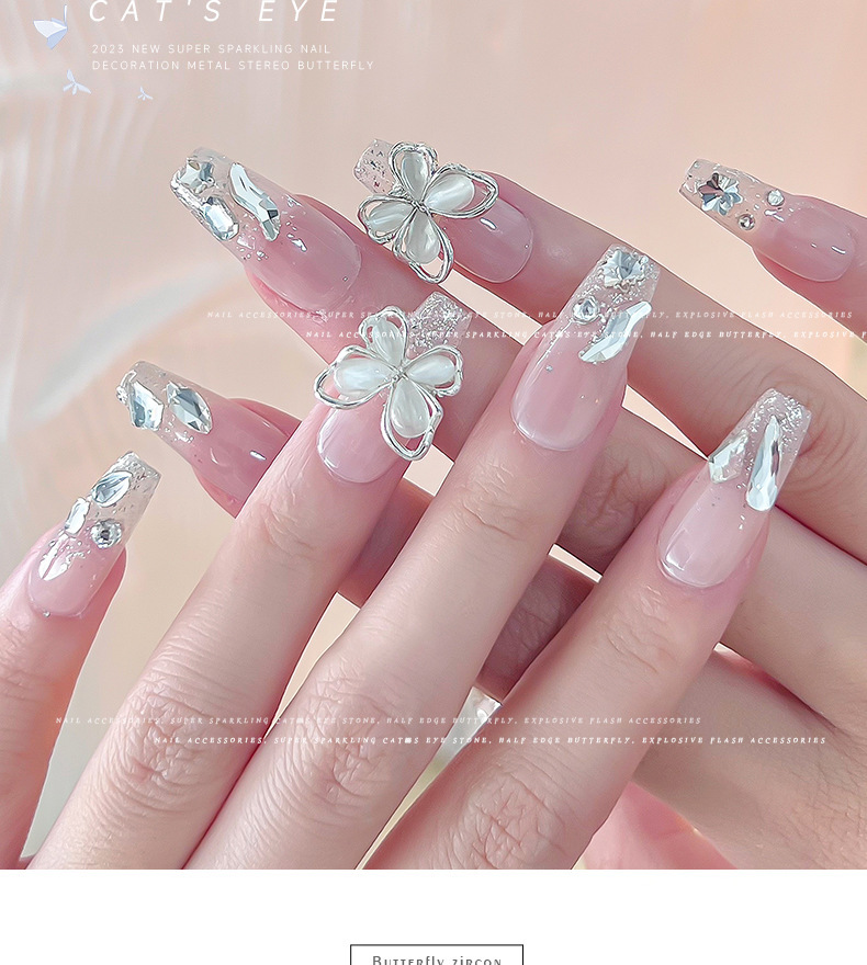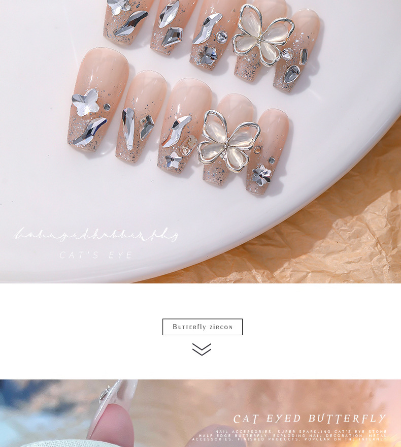 Nueva joyería de diamantes de uñas estilo caliente ojo de gato mariposa tridimensional súper flash ligero lujo hueco rojo de la red portátil armadura accesorios de diamantes grandes