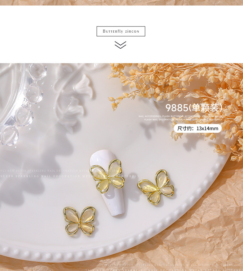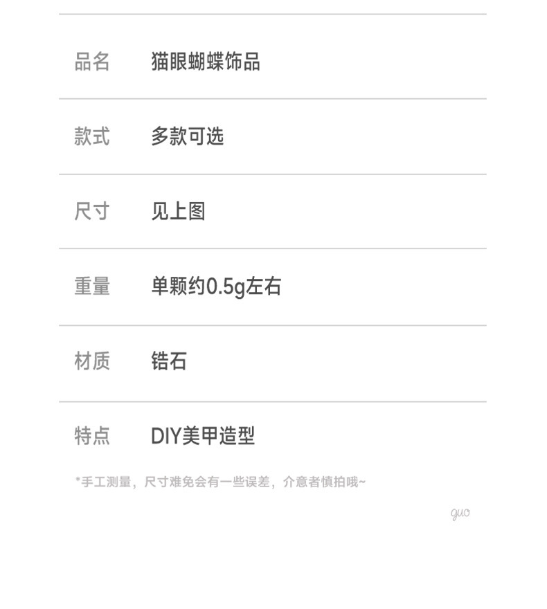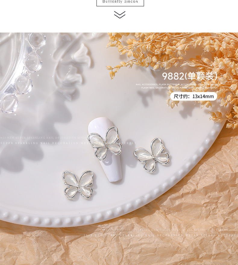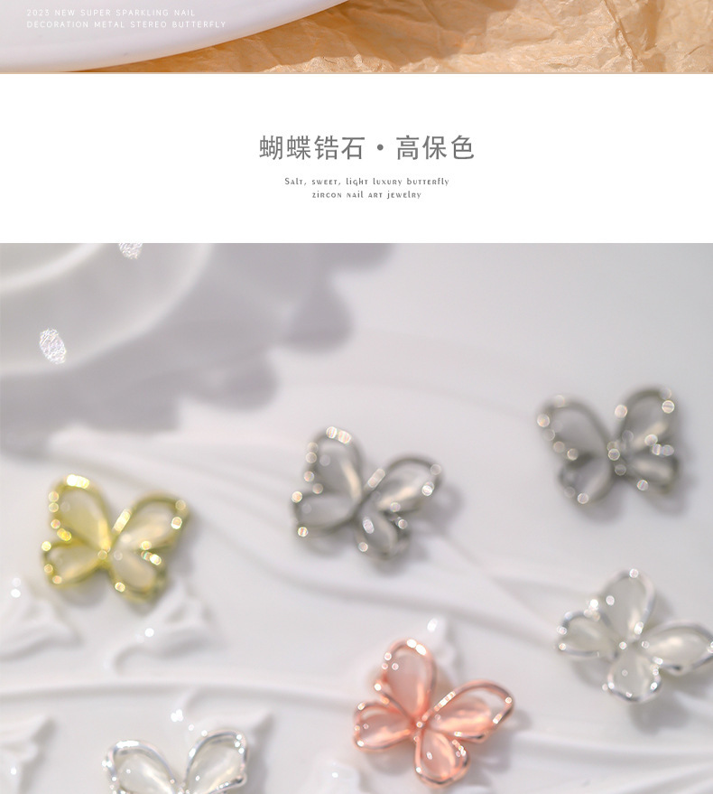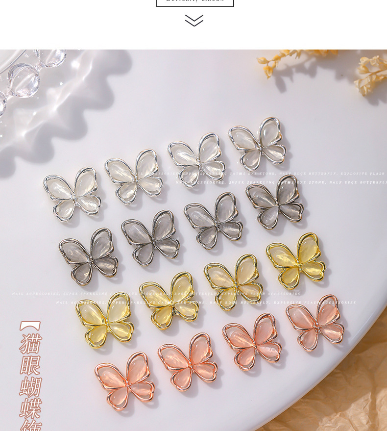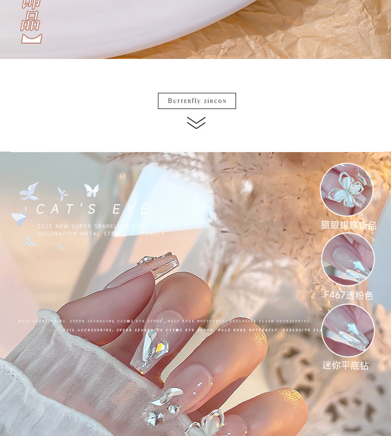 Nueva joyería de diamantes de uñas estilo caliente ojo de gato mariposa tridimensional súper flash ligero lujo hueco rojo de la red portátil armadura accesorios de diamantes grandes