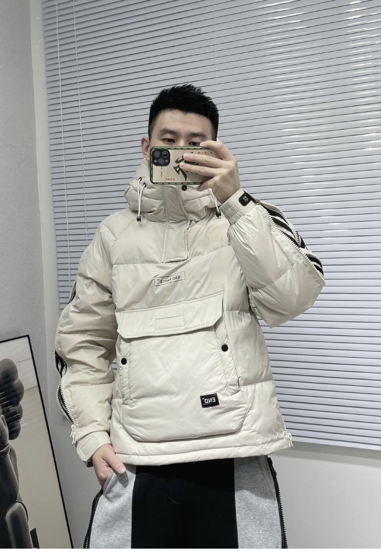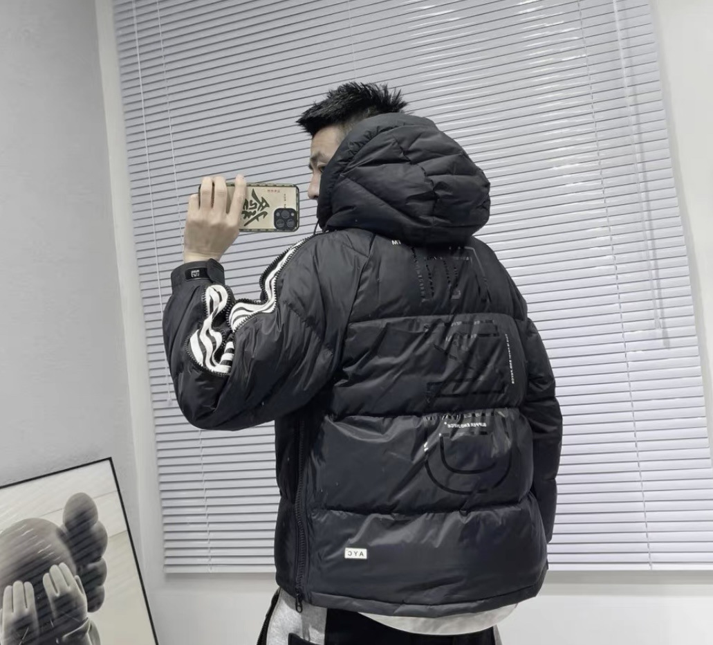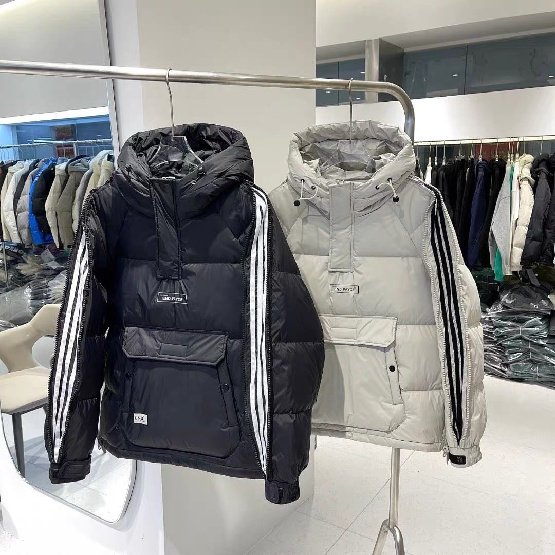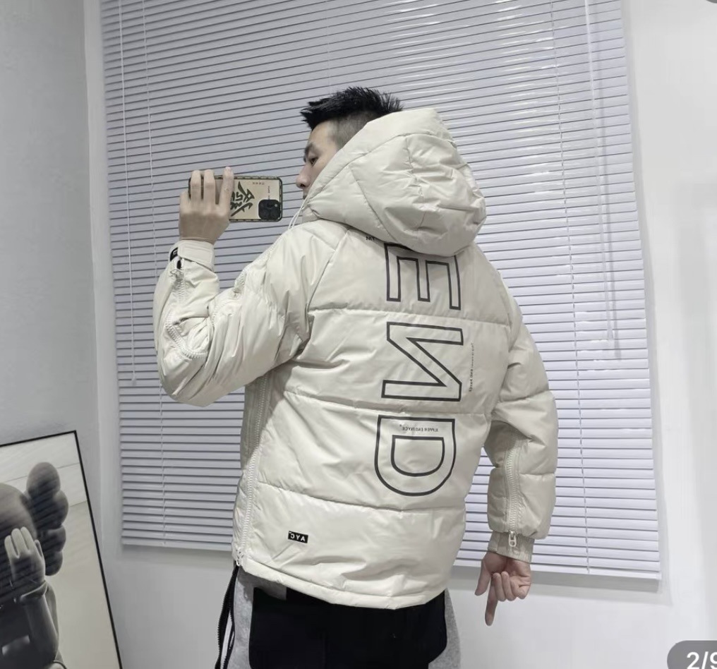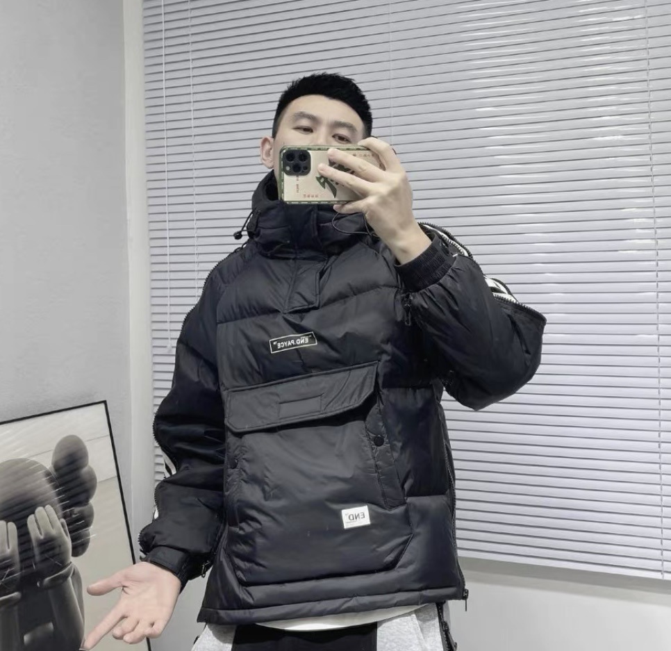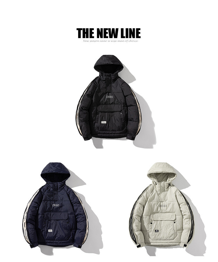 Invierno nuevo estilo cremallera ropa de trabajo abrigo de algodón acolchado de los hombres de moda con capucha abrigo corto de pareja mismo jersey abrigo de algodón acolchado