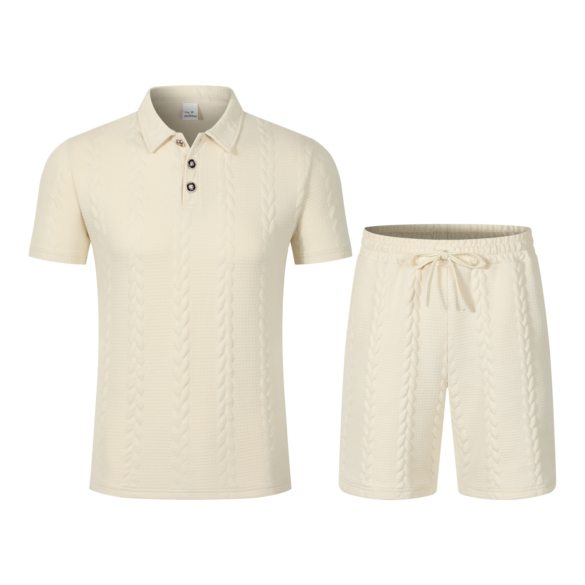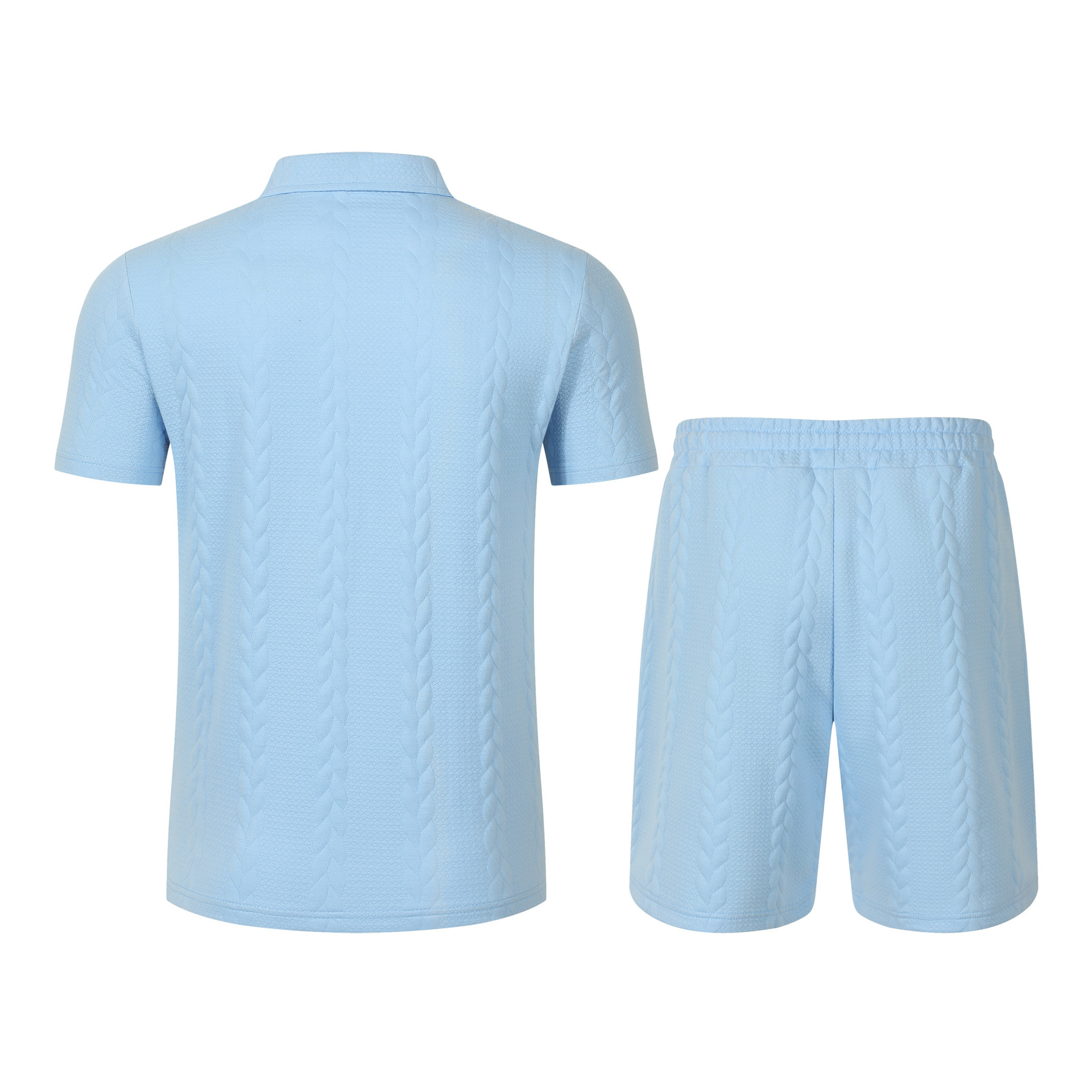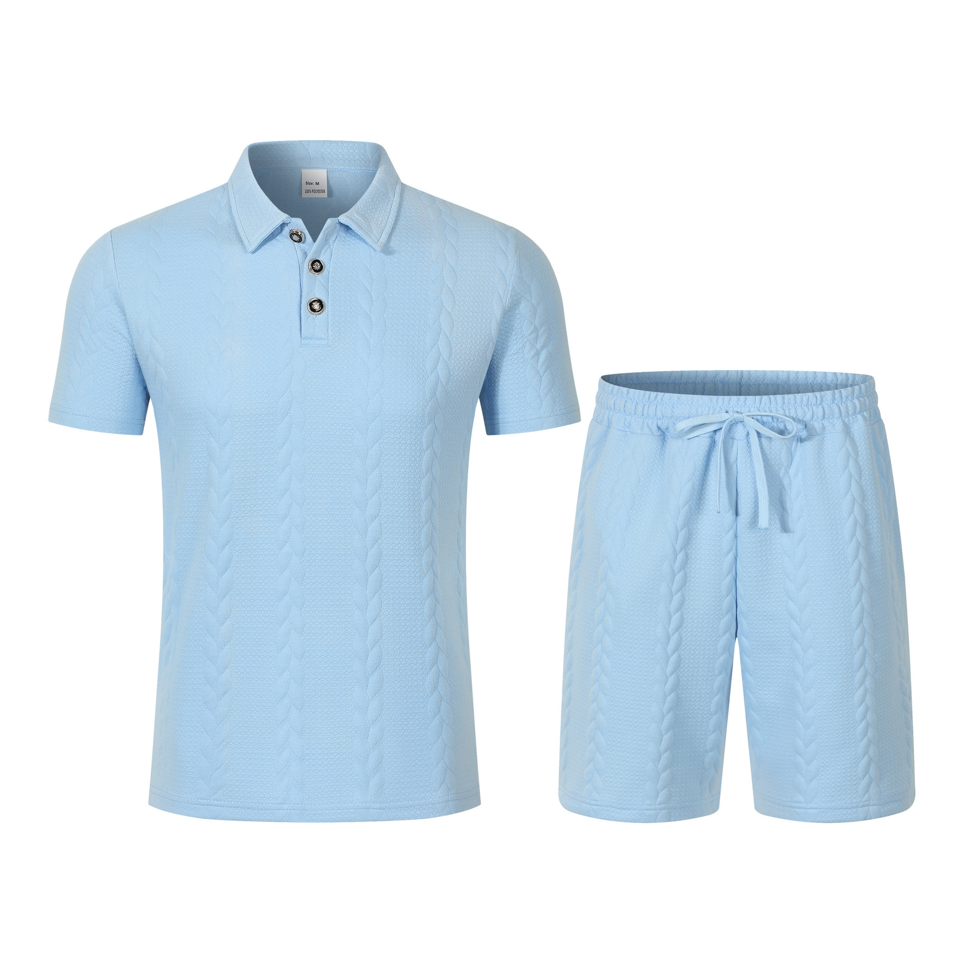 Europa y América Transfronterizo Amazon Color sólido jacquard verano casual solapa botones pantalones cortos de manga corta traje deportivo para hombre