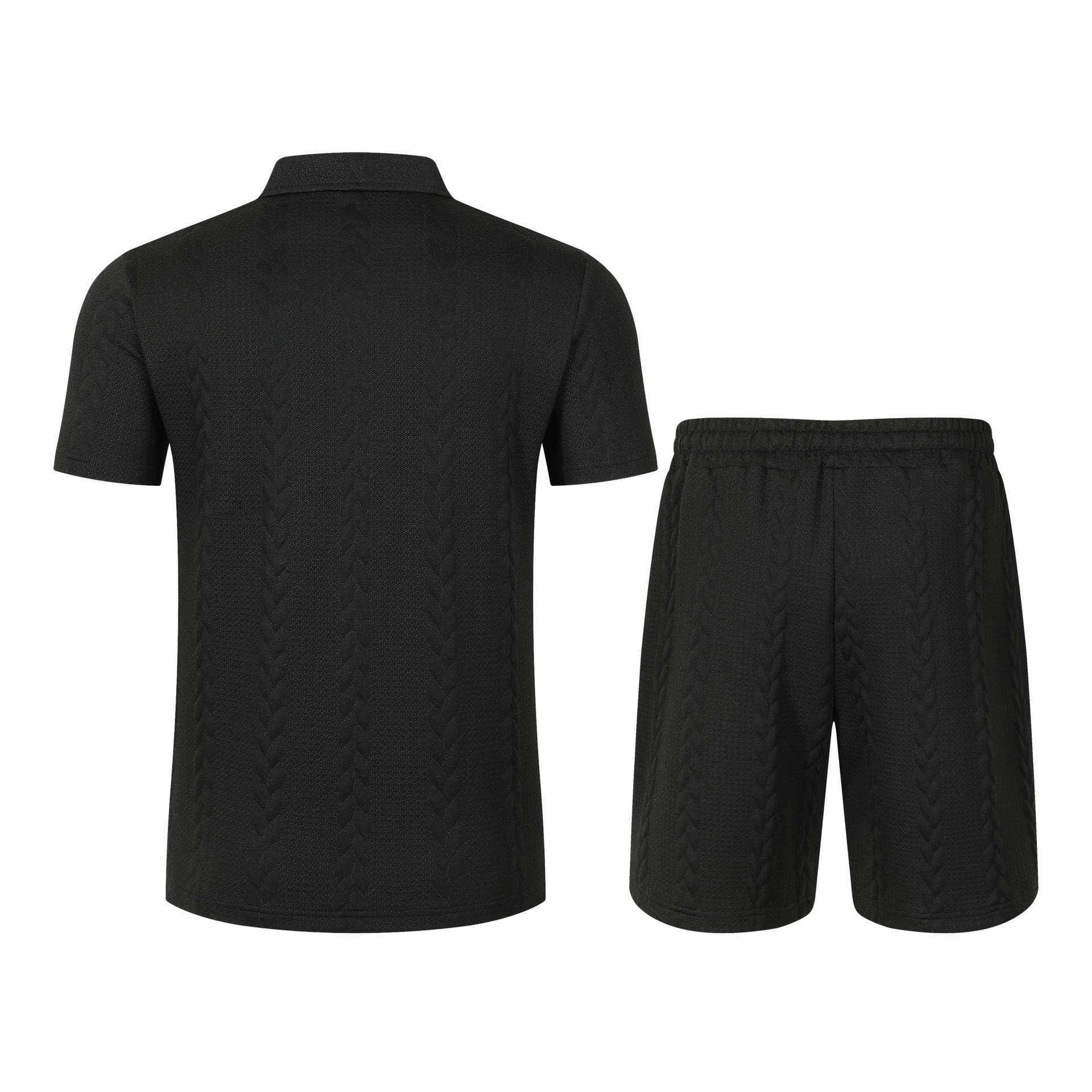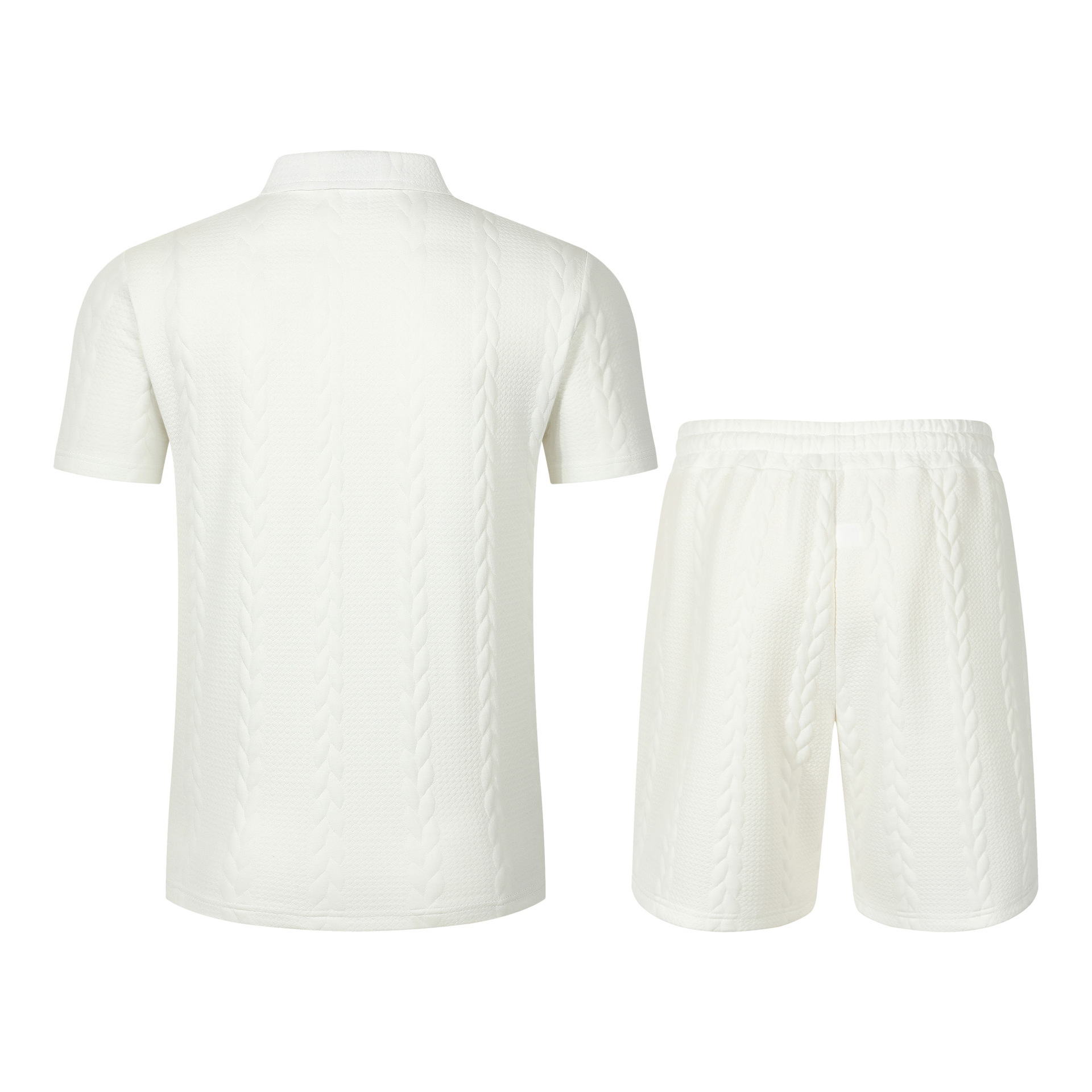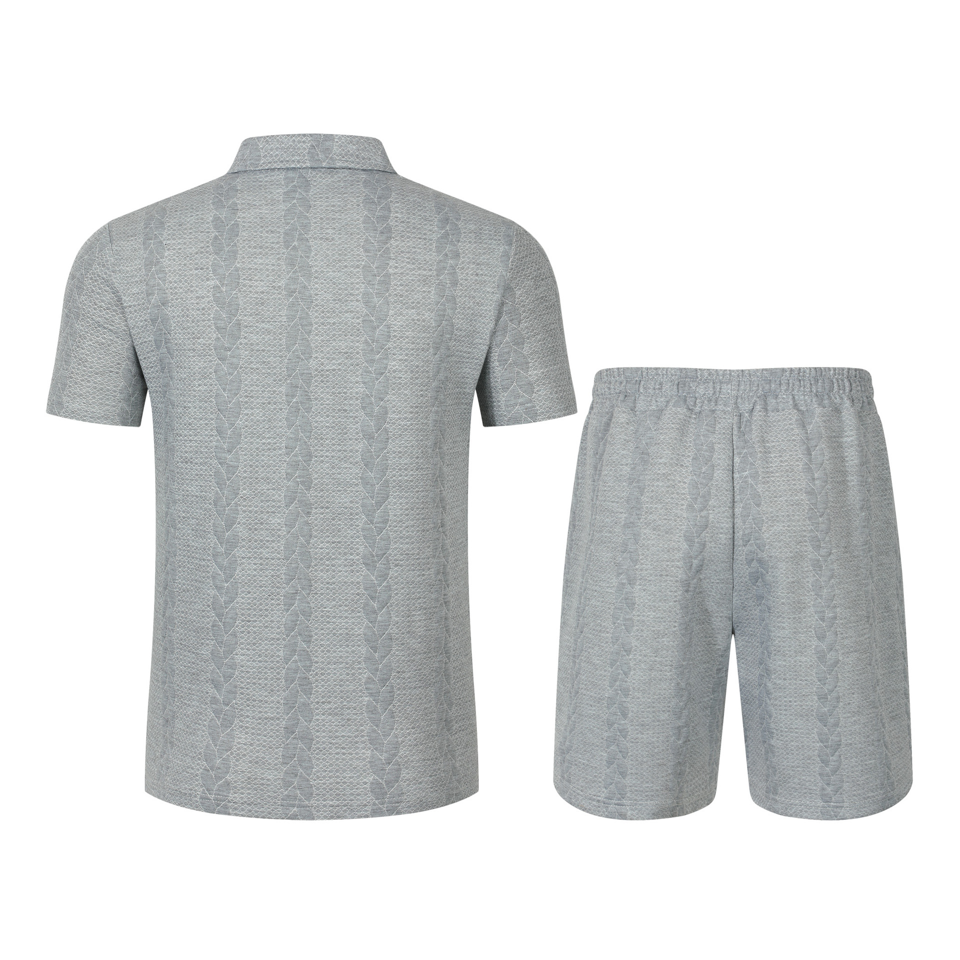 Europa y América Transfronterizo Amazon Color sólido jacquard verano casual solapa botones pantalones cortos de manga corta traje deportivo para hombre