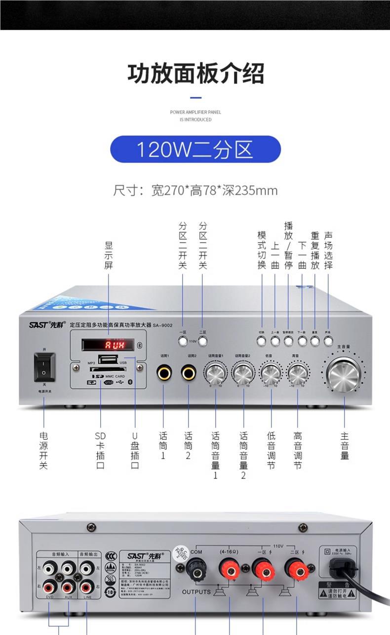 SA9008 amplificador de potencia bluetooth doméstico profesional de altavoz de alta potencia de alta resistencia fija y voltaje fijo amplificador público pequeño