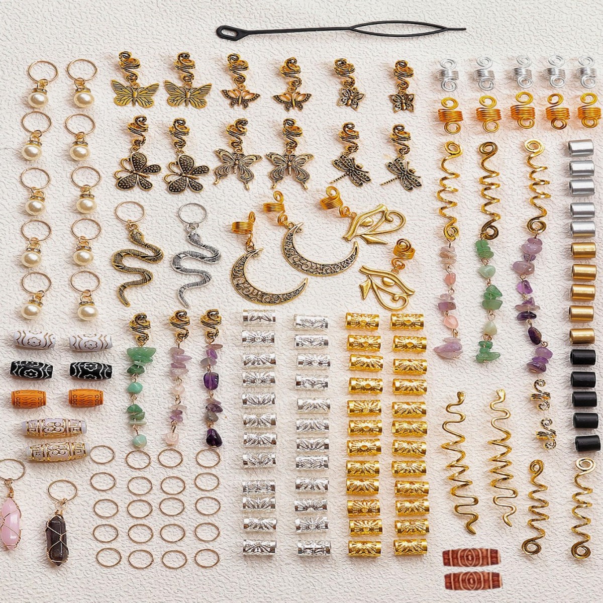 Colgante de piedra natural 146-pieza peluca accesorios sucio trenza anillo de pelo decorativo anillo de pelo aleación espiral clip hoja colgante