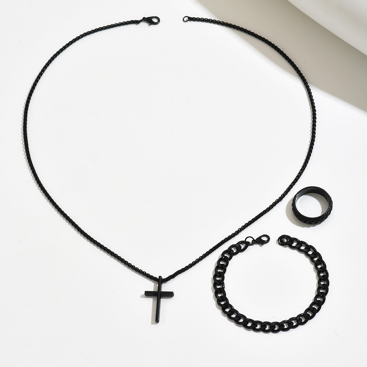 Joyas para hombres europeos y estadounidenses Amazon SHEINtemu crucifijo joyas cadena anillo pulsera collar conjunto de tres piezas