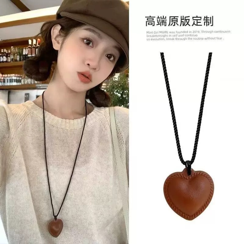 Fiebre con cuero cuerdas de cáñamo corazón fresco viento ajustable hermoso collar de corazón caliente