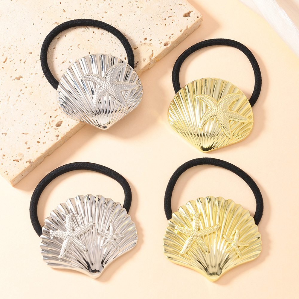 2025 nuevo diseño, personalidad, estrella de mar de metal, anillo para el cabello de concha, todo fósforo, cuerda para el cabello de viento frío, cuerda para el cabello de temperamento retro
