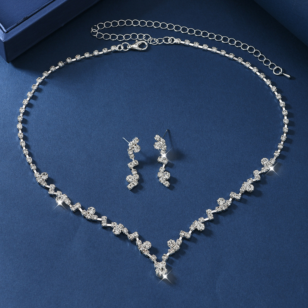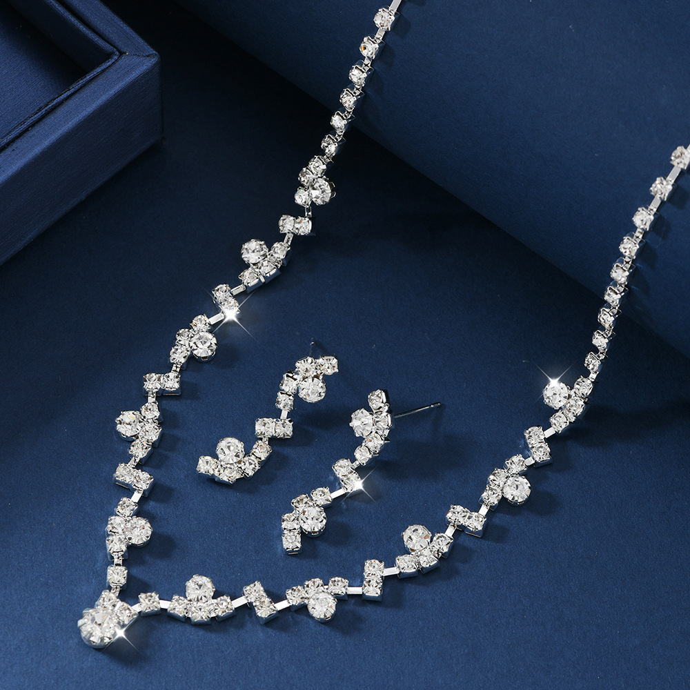 Joyería simple y exquisita venta caliente collar conjunto de pendientes de dos piezas conjunto completo de taladro clavícula vestido de cena accesorios de boda