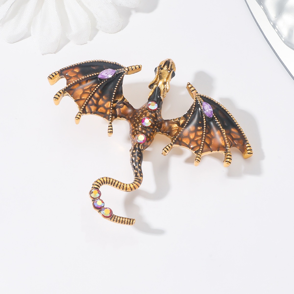 Cross-border nuevo retro goteo aceite de dibujos animados flying dragon broche de los hombres traje personalizado abrigo accesorios pin joyería al por mayor