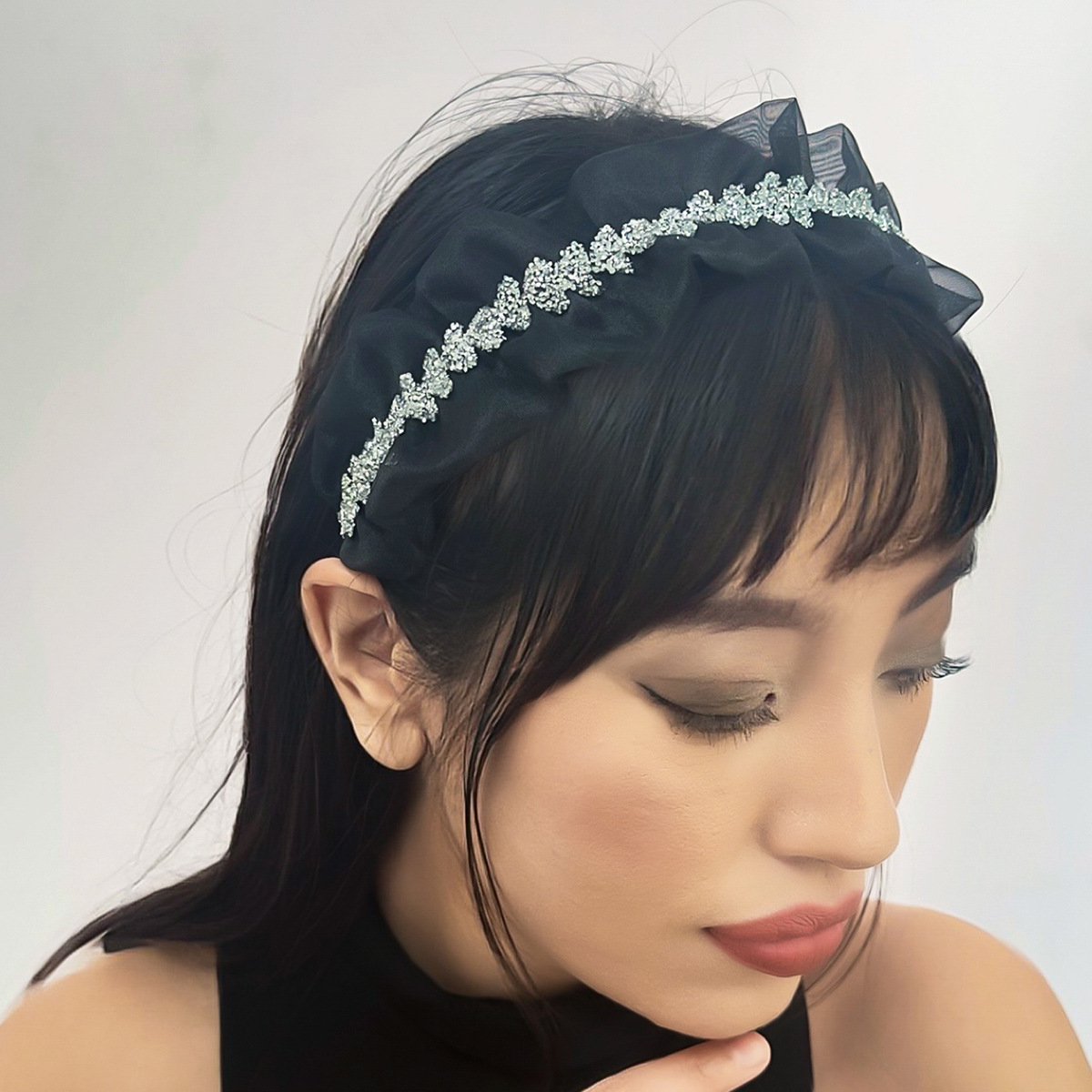 Otoño e invierno nuevo popular en línea popular malla plisada rhinestone luz diadema de lujo borde ancho moda de alto grado alto cráneo superior accesorios para el cabello