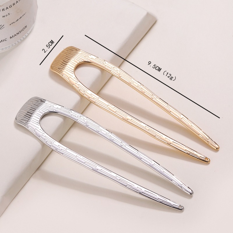 Corea del Sur ins estilo horquilla en forma de U aleación de metal rizador de pelo elegante todo-Match patrón horquilla exquisitos palillos de cabeza de bola