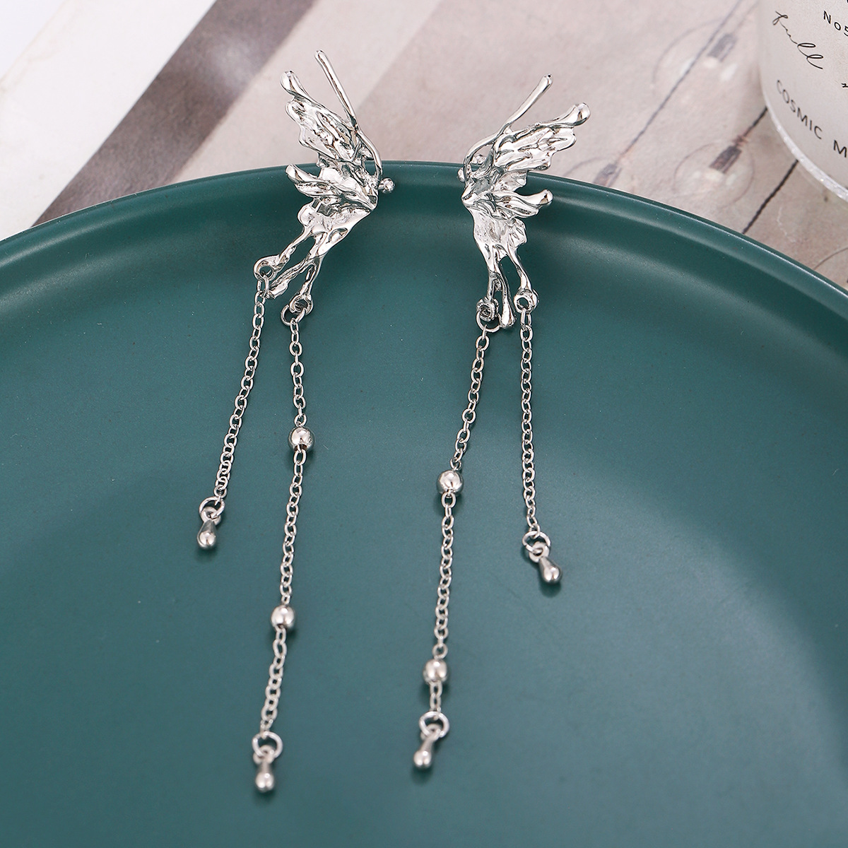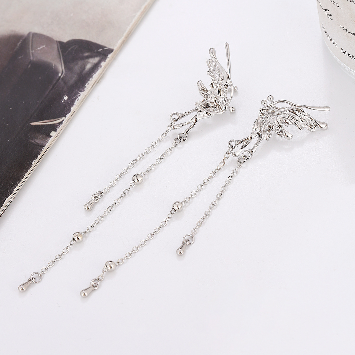 Mariposa europea y americana borla oreja clip de hueso pendientes de una pieza fría de alta gama única cara pequeña oreja clip nicho diseño femenino