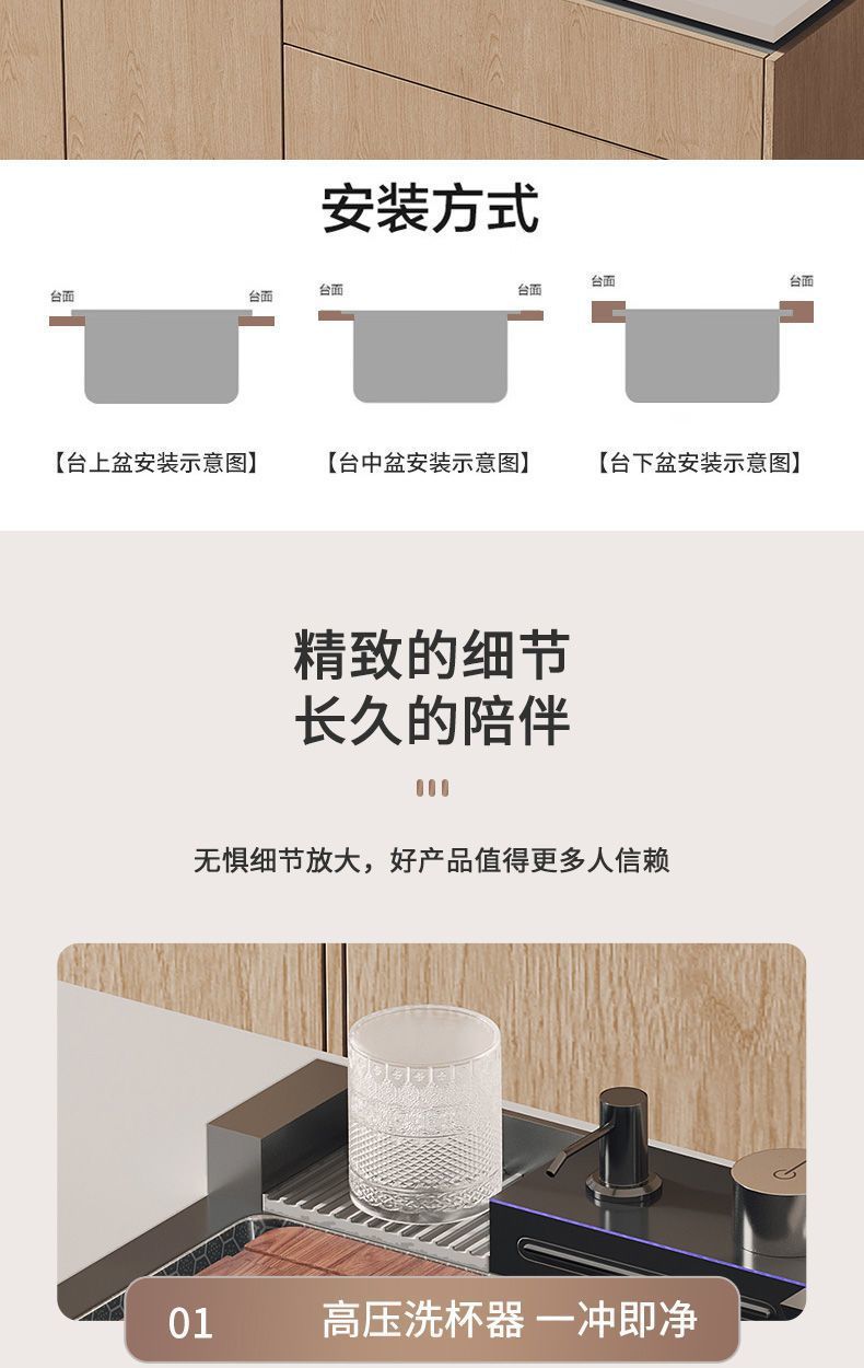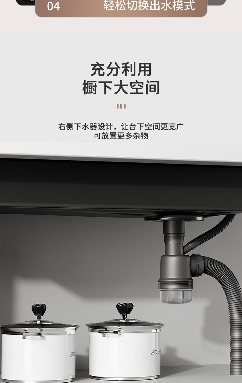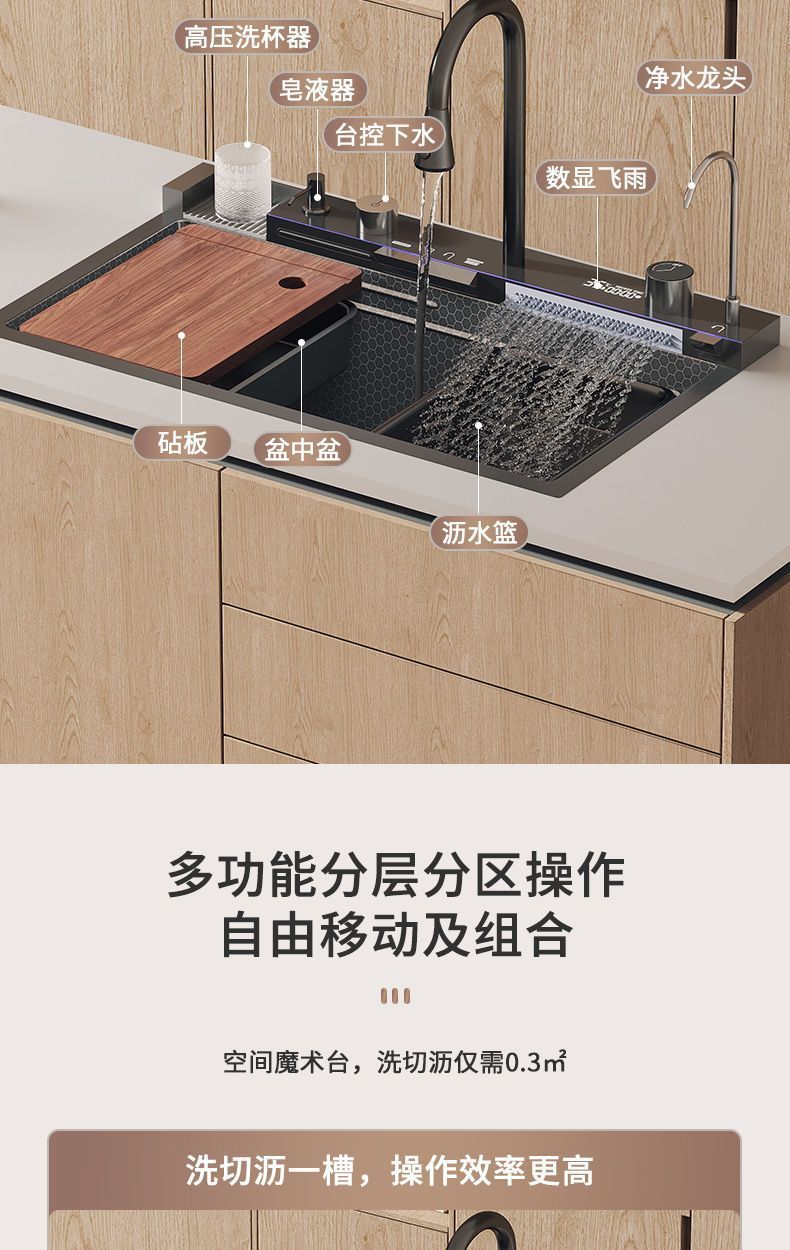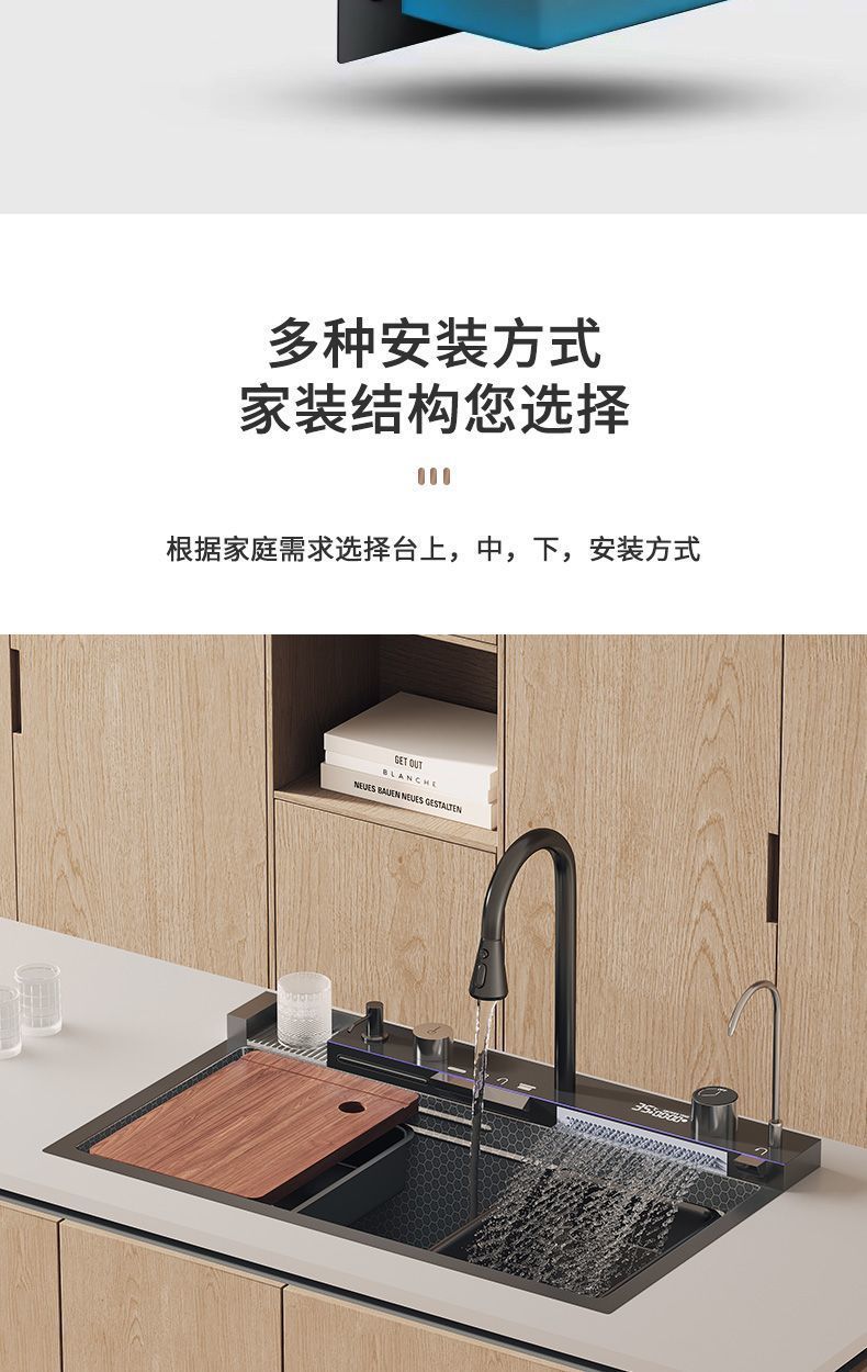 Fregadero de acero inoxidable 304 Raindance con pantalla digital, cascada, fregadero individual, panal nano, fregadero de cocina con relieve de ballena integrado
